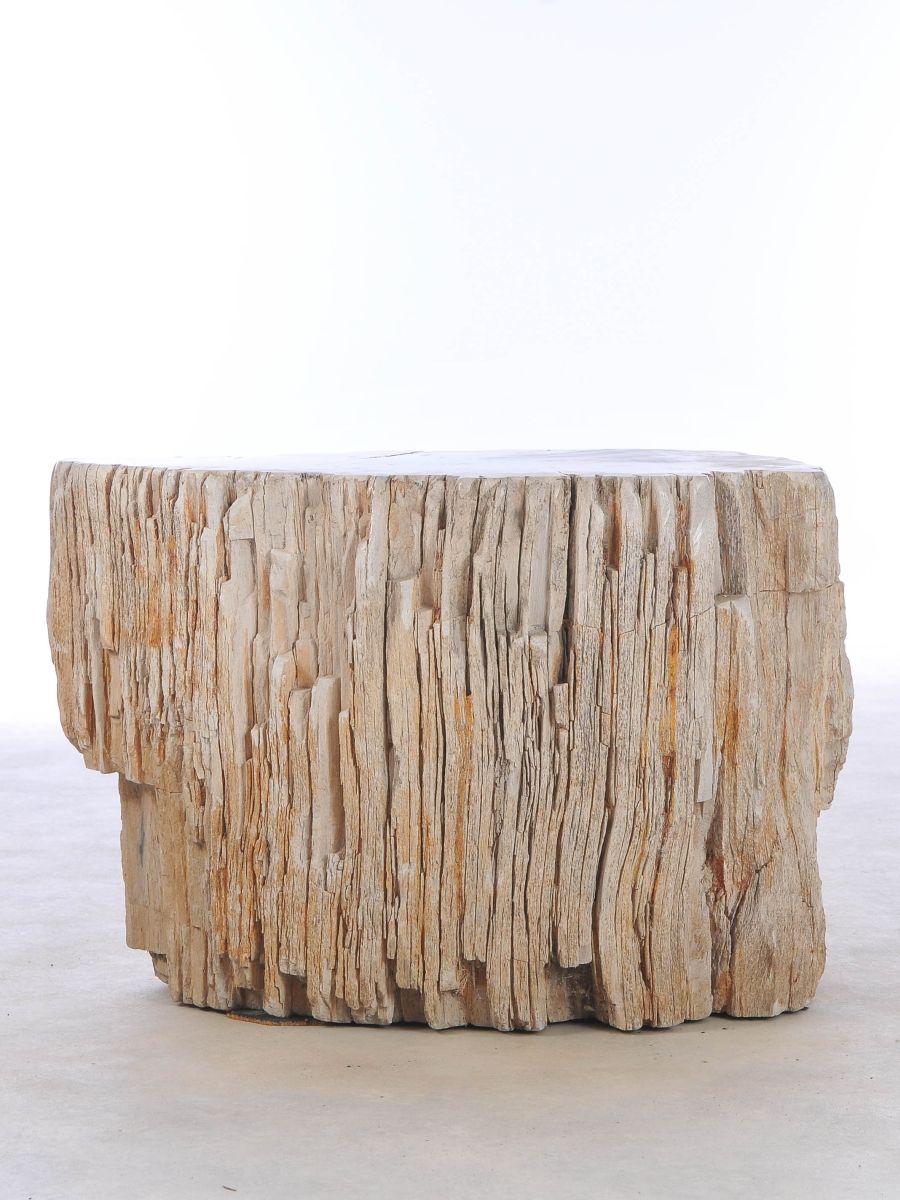 Deze bijzettafel van versteend hout heeft een unieke vorm en kleur. Het duurzaam verkregen versteend hout is gemiddeld 20 miljoen jaar oud. De bijzettafels kunnen op zich staan, maar een groep van twee of drie bijzettafels geeft ook een prachtig effect.