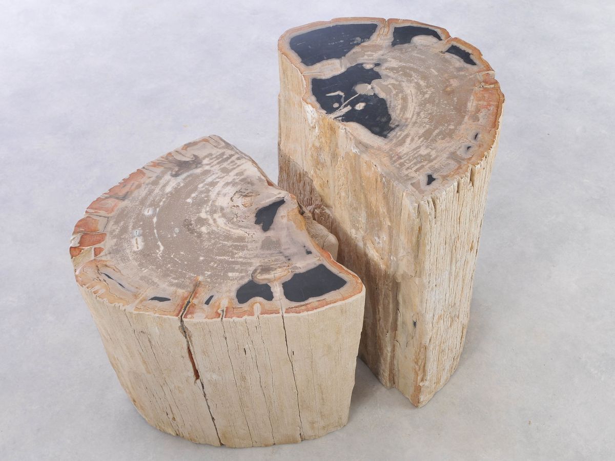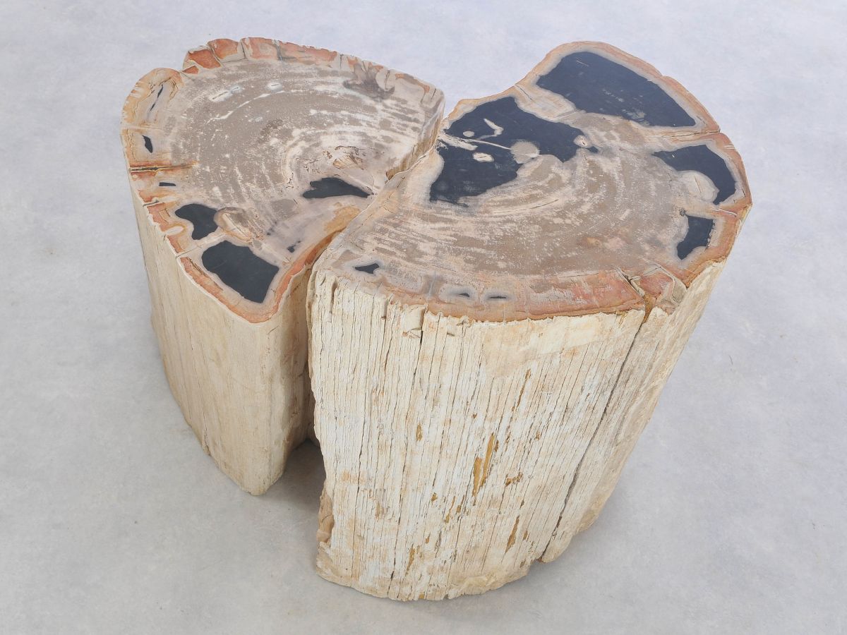 Deze bijzettafel van versteend hout heeft een unieke vorm en kleur. Het duurzaam verkregen versteend hout is gemiddeld 20 miljoen jaar oud. De bijzettafels kunnen op zich staan, maar een groep van twee of drie bijzettafels geeft ook een prachtig effect.