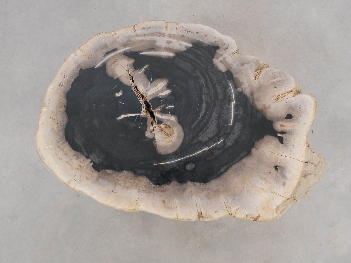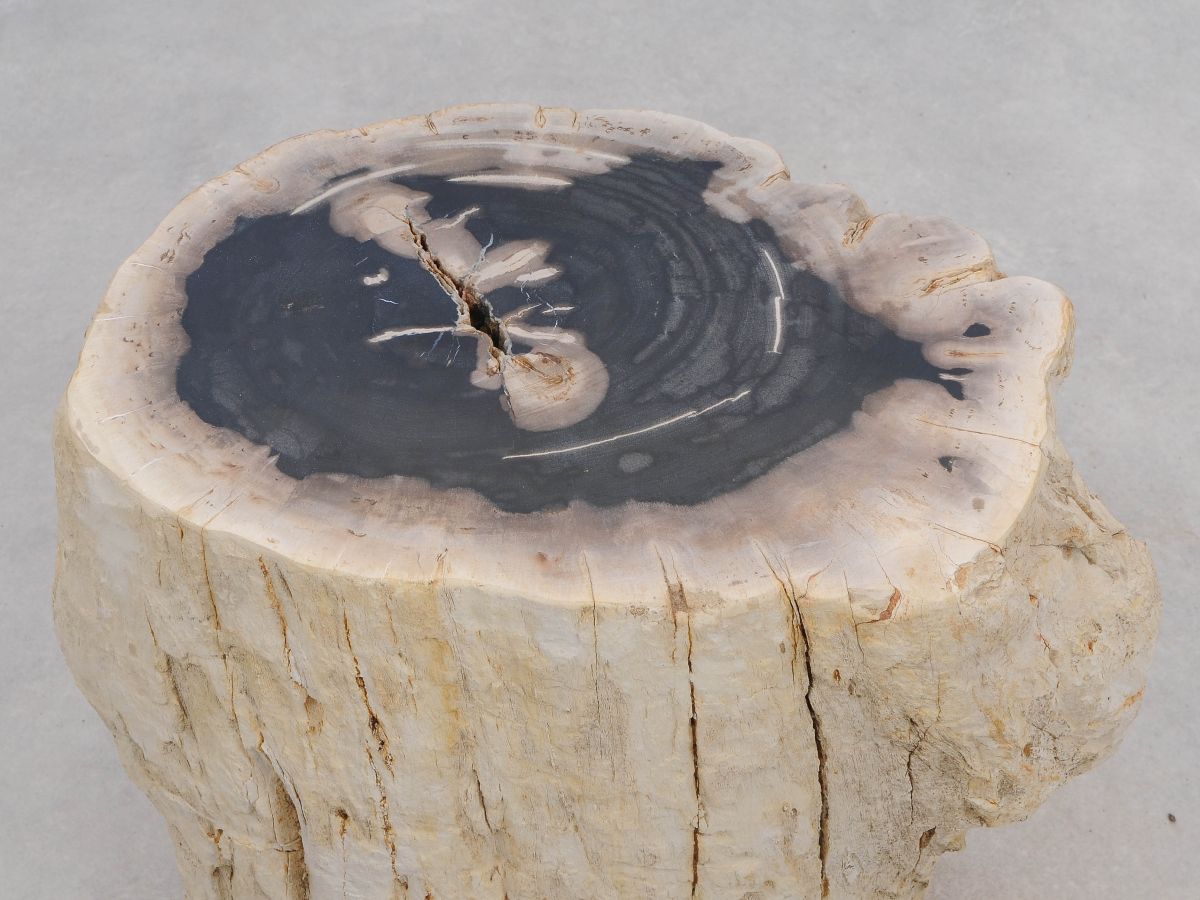 Deze bijzettafel van versteend hout heeft een unieke vorm en kleur. Het duurzaam verkregen versteend hout is gemiddeld 20 miljoen jaar oud. De bijzettafels kunnen op zich staan maar een groep van twee of drie bijzettafels geeft ook een prachtig effect.