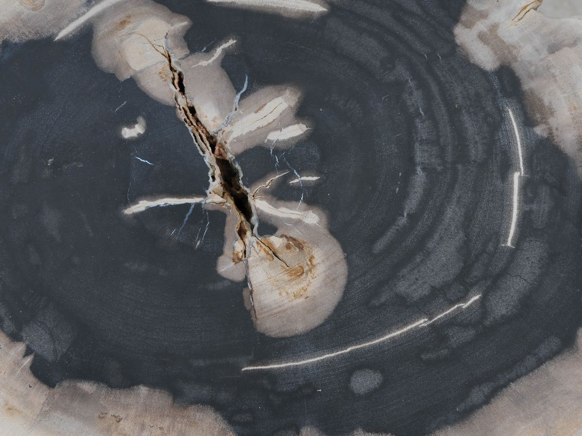 - Kleuren versteend hout: Gemengde kleuren, Voornamelijk zwart