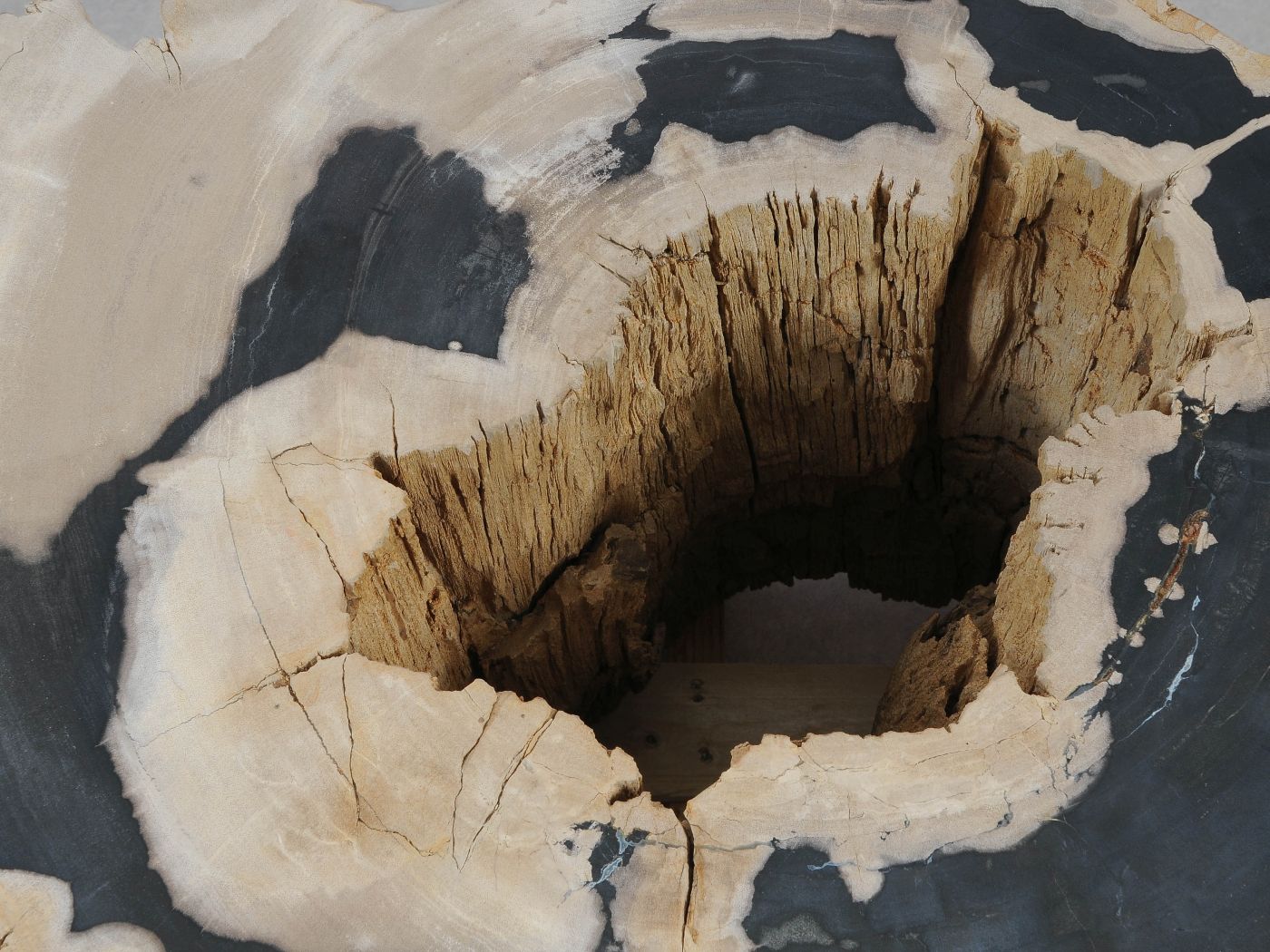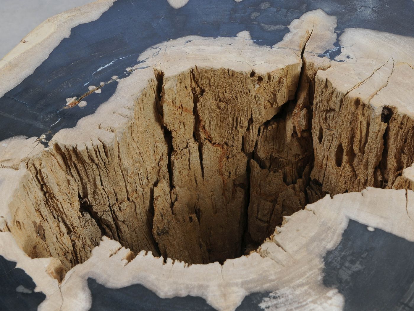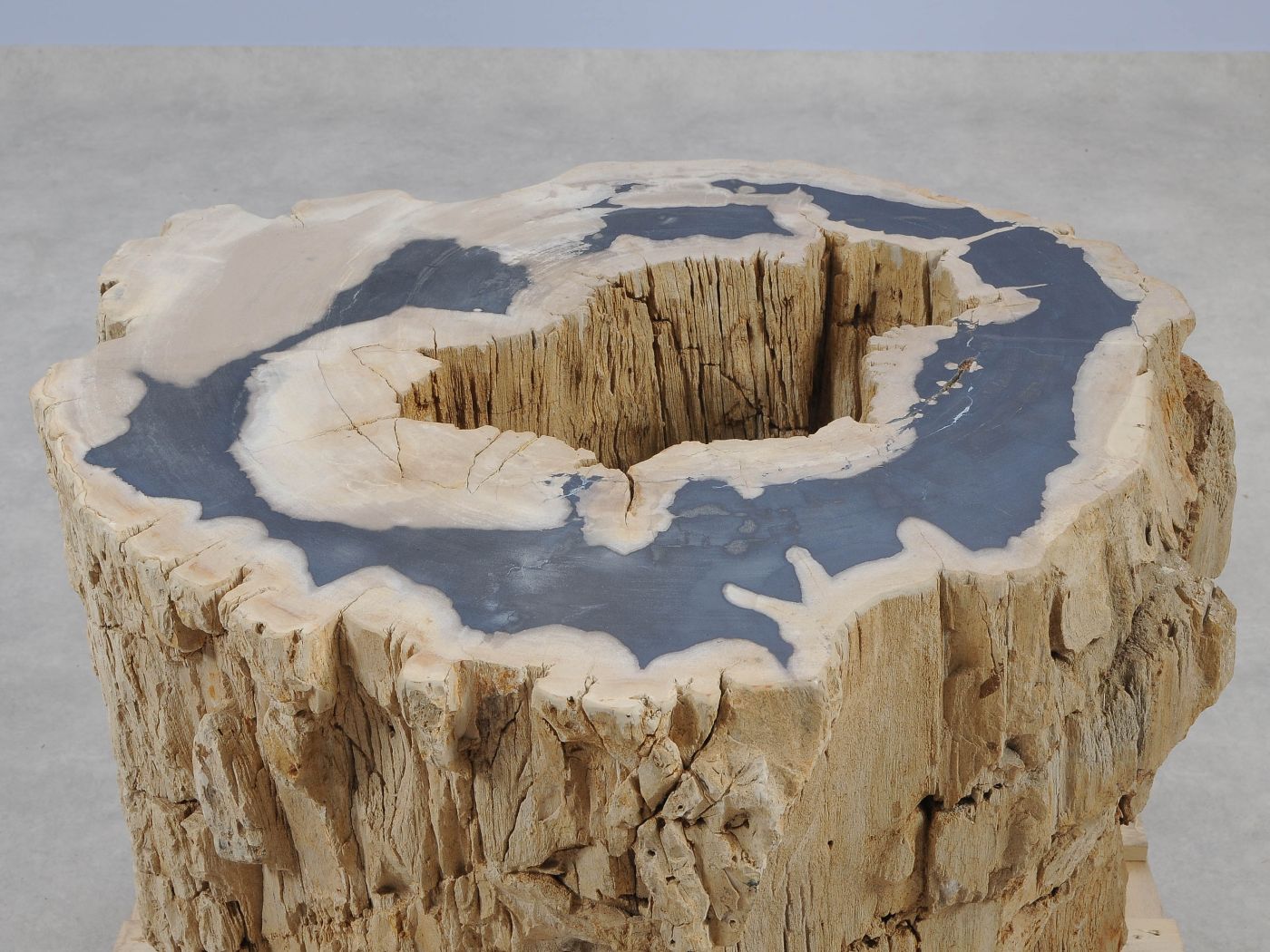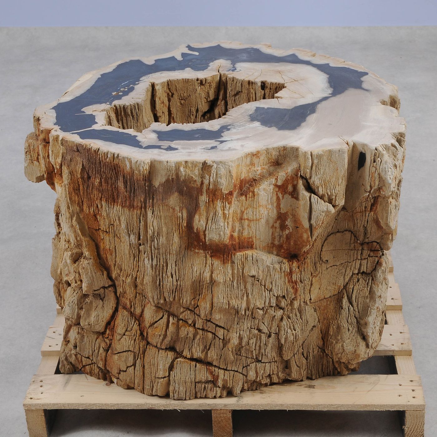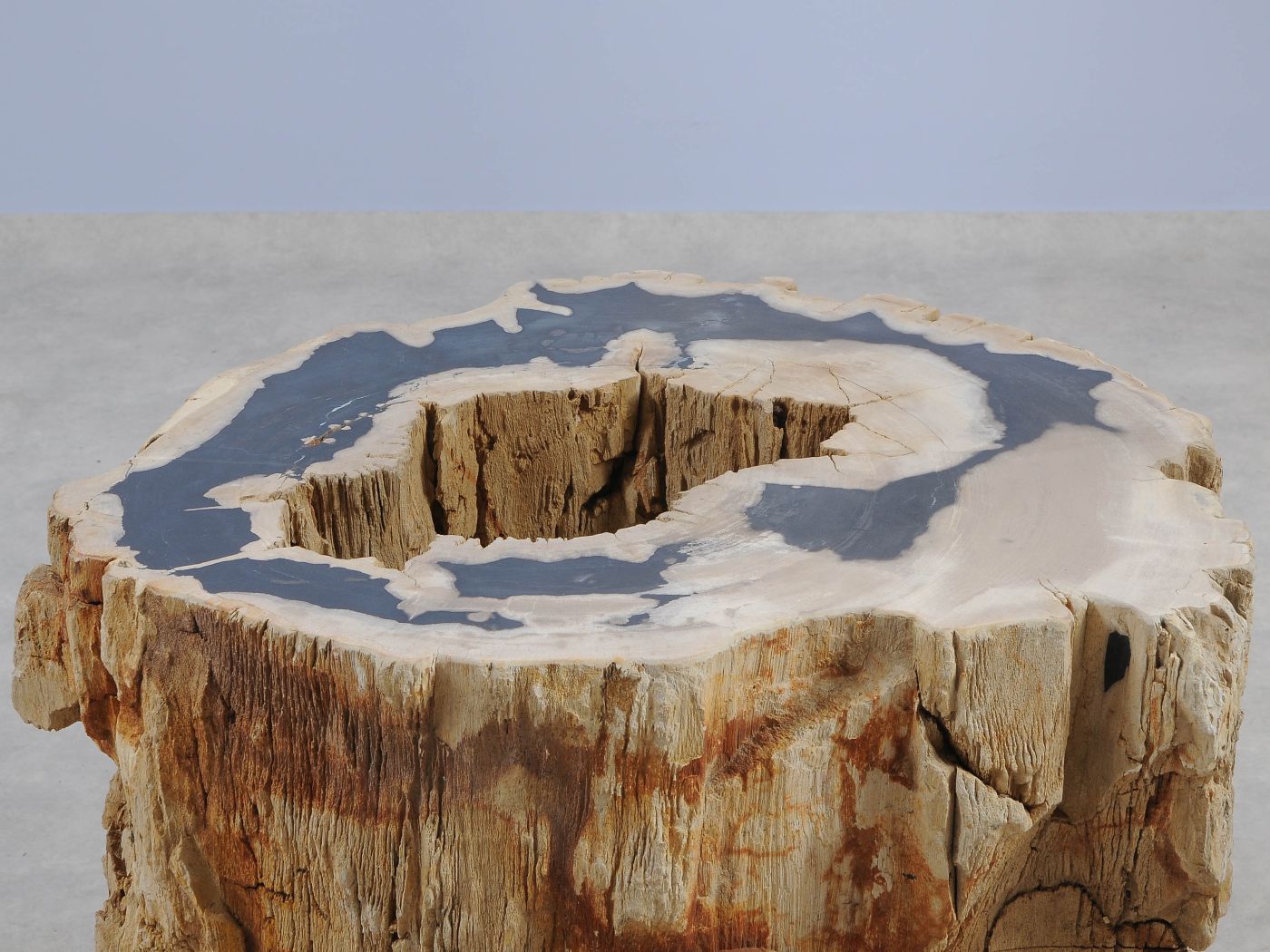 Deze bijzettafel van versteend hout heeft een unieke vorm en kleur. Het duurzaam verkregen versteend hout is gemiddeld 20 miljoen jaar oud. De bijzettafels kunnen op zich staan, maar een groep van twee of drie bijzettafels geeft ook een prachtig effect.