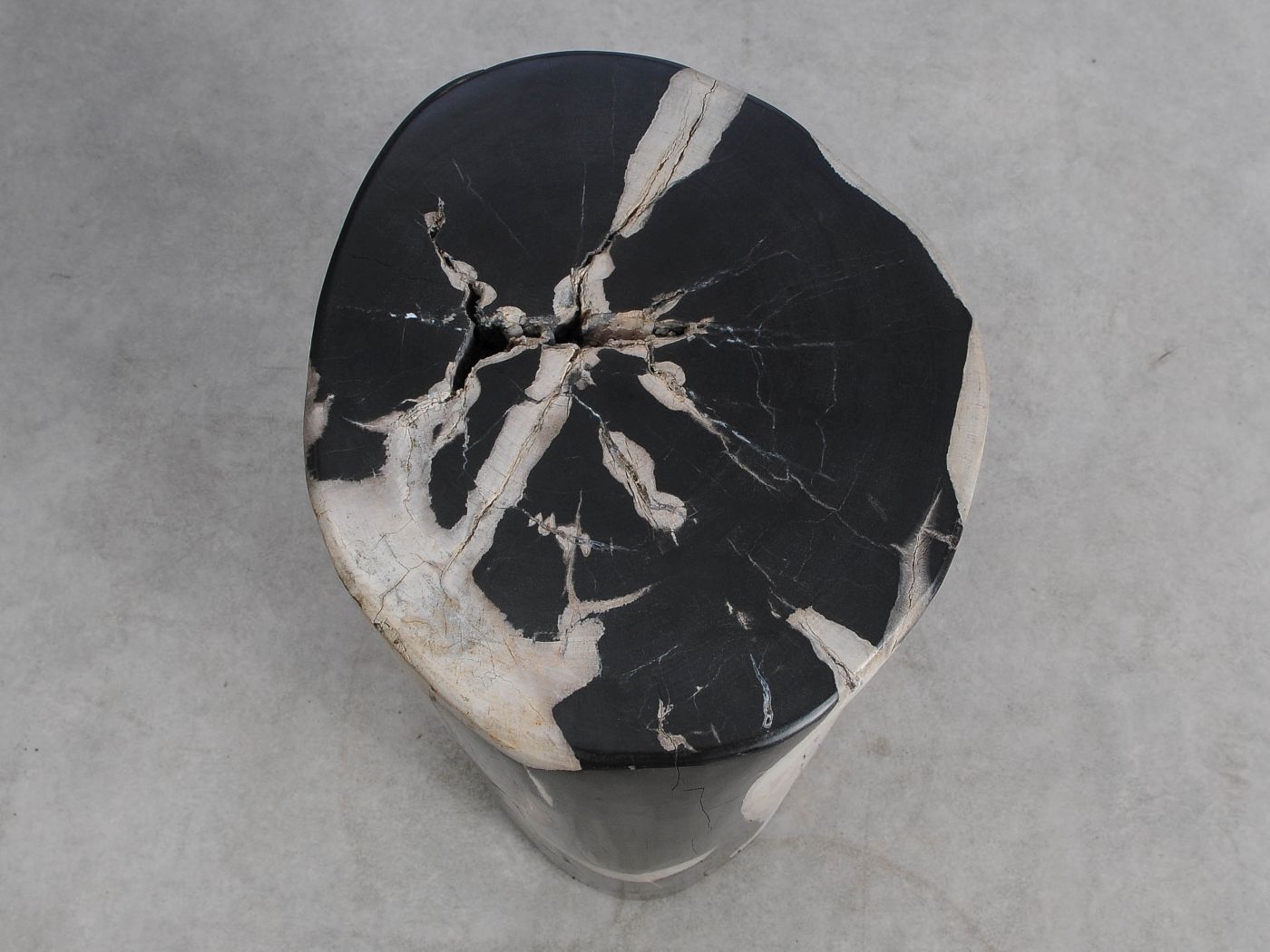 Deze bijzettafel van versteend hout heeft een unieke vorm en kleur. Het duurzaam verkregen versteend hout is gemiddeld 20 miljoen jaar oud. De bijzettafels kunnen op zich staan, maar een groep van twee of drie bijzettafels geeft ook een prachtig effect.