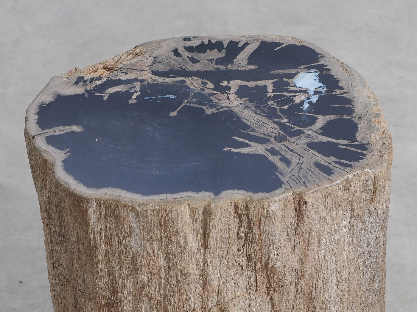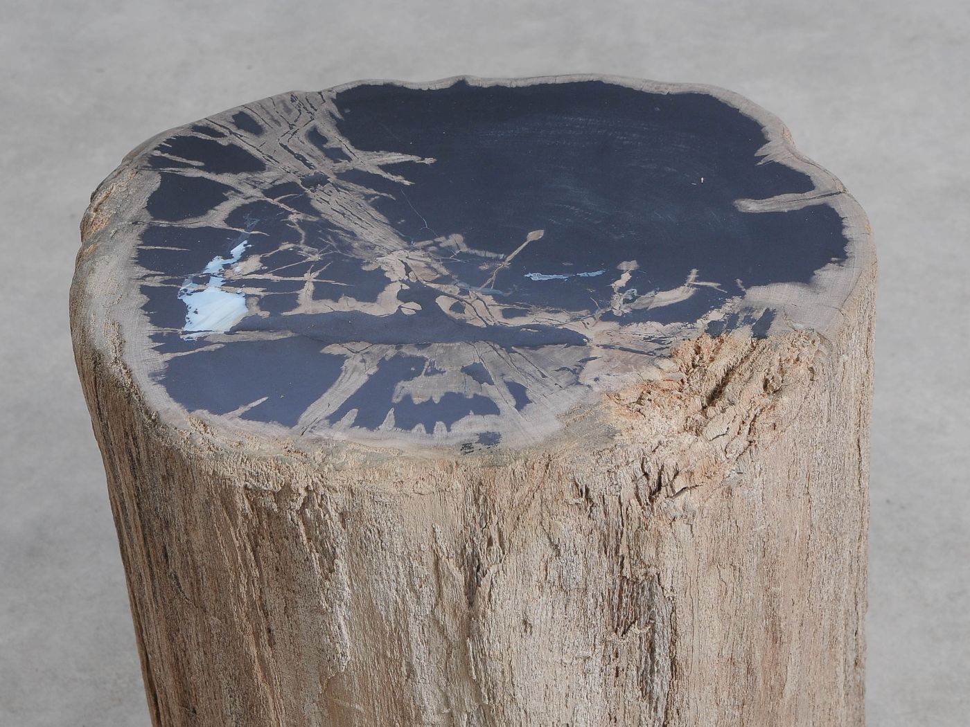 Deze bijzettafel van versteend hout heeft een unieke vorm en kleur. Het duurzaam verkregen versteend hout is gemiddeld 20 miljoen jaar oud. De bijzettafels kunnen op zich staan, maar een groep van twee of drie bijzettafels geeft ook een prachtig effect.