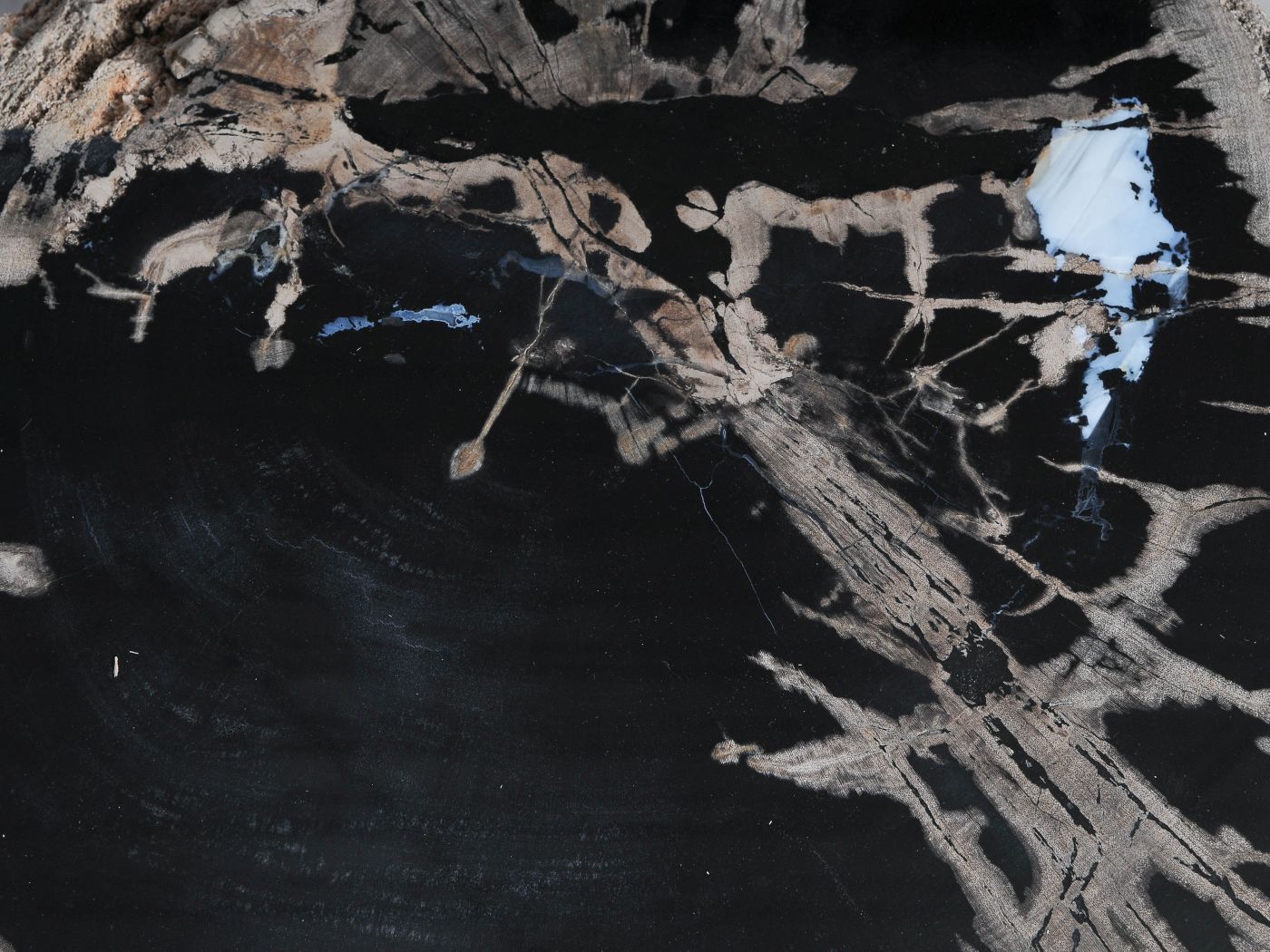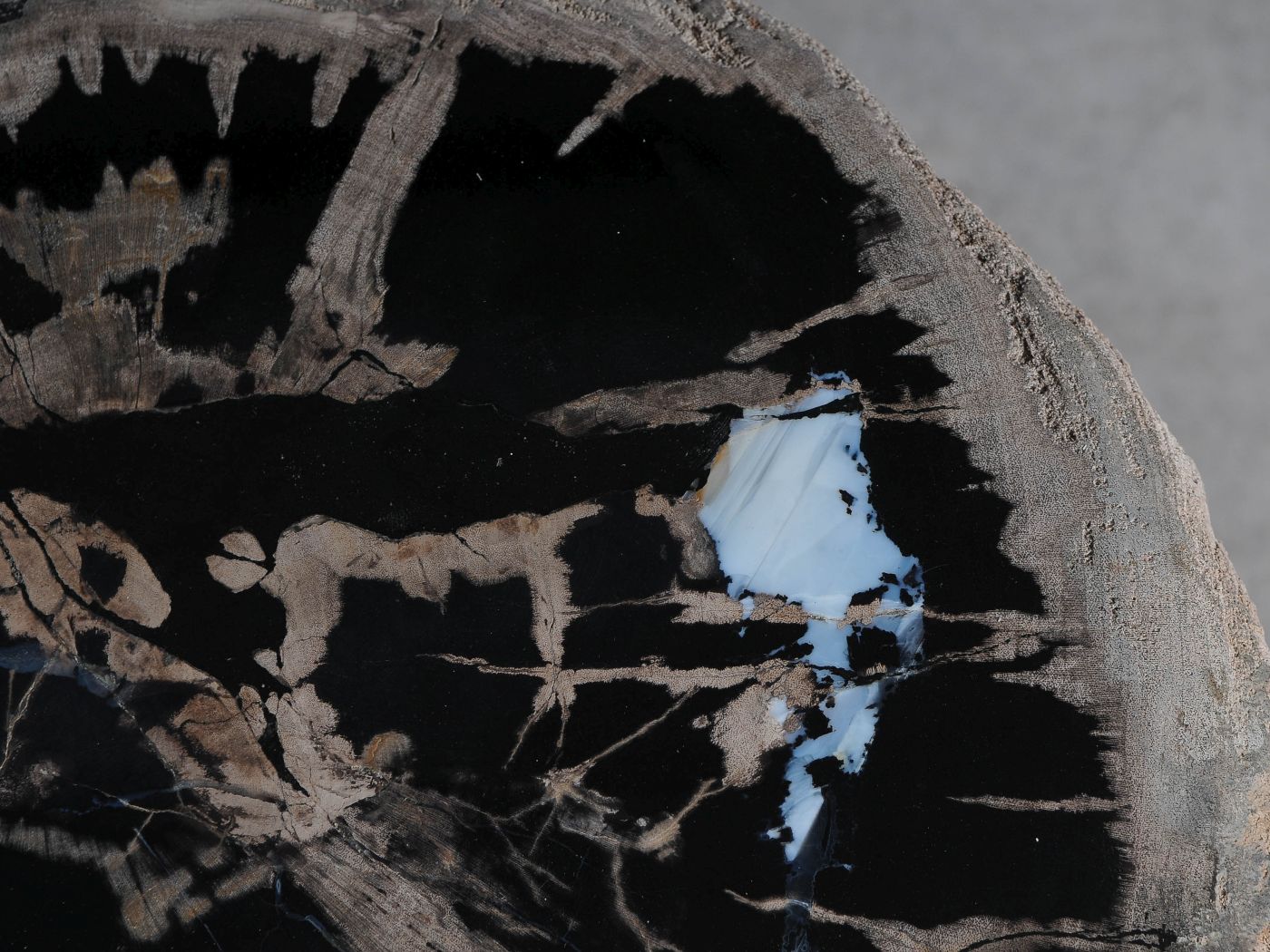 - Kleuren versteend hout: Gemengde kleuren, Voornamelijk zwart