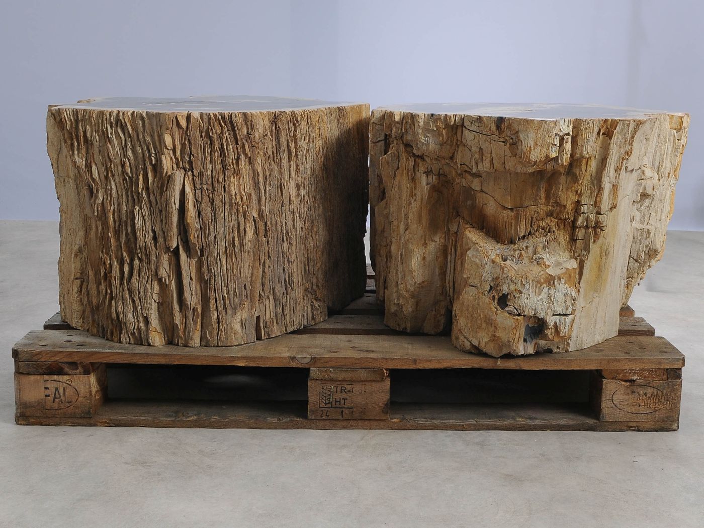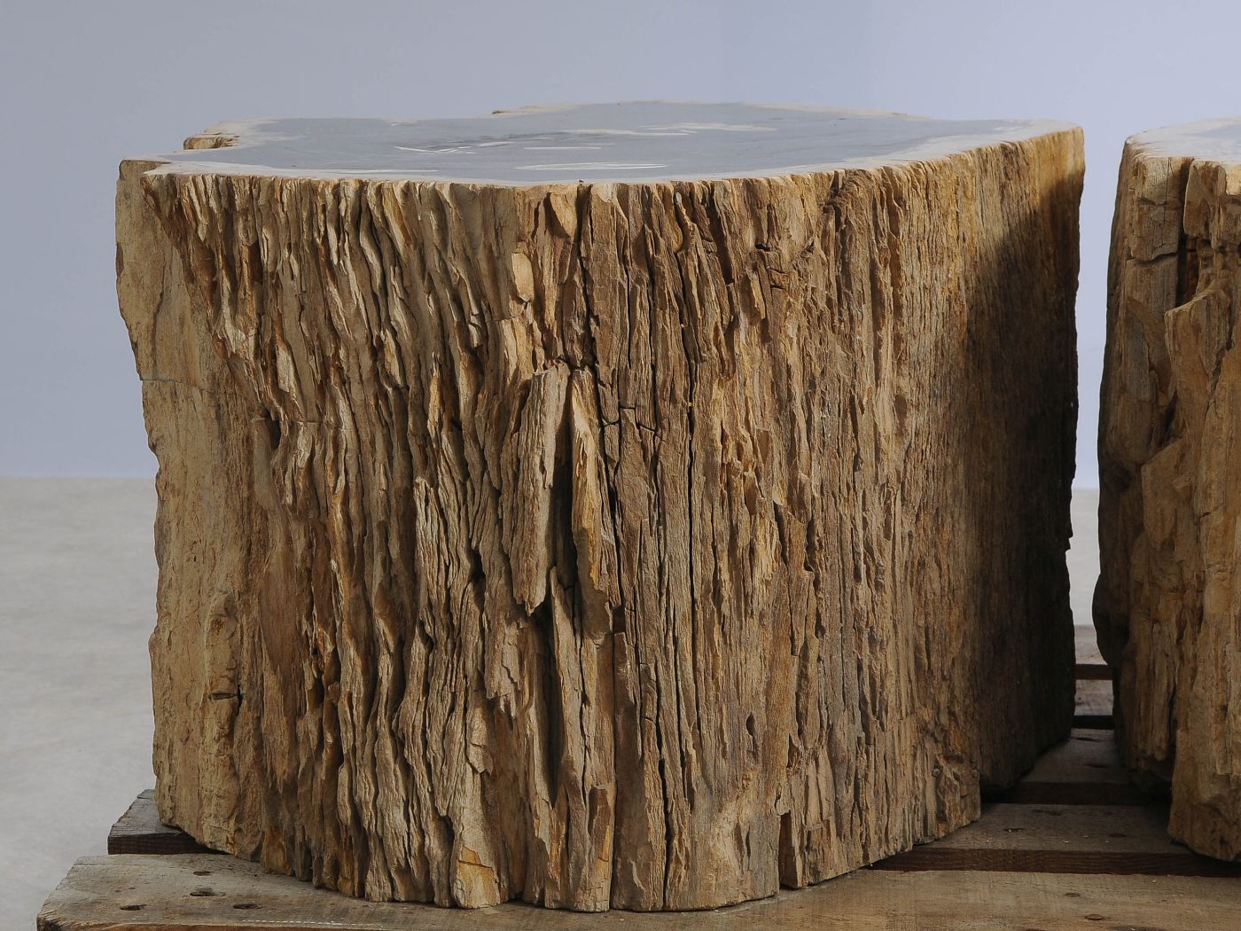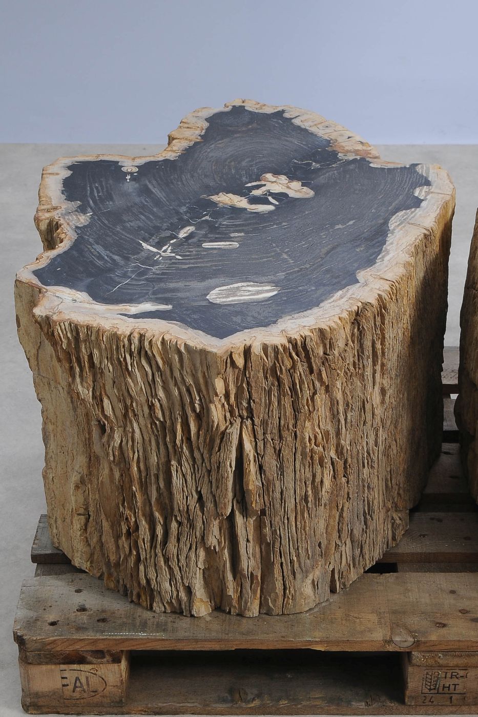 Deze bijzettafel van versteend hout heeft een unieke vorm en kleur. Het duurzaam verkregen versteend hout is gemiddeld 20 miljoen jaar oud. De bijzettafels kunnen op zich staan, maar een groep van twee of drie bijzettafels geeft ook een prachtig effect.