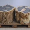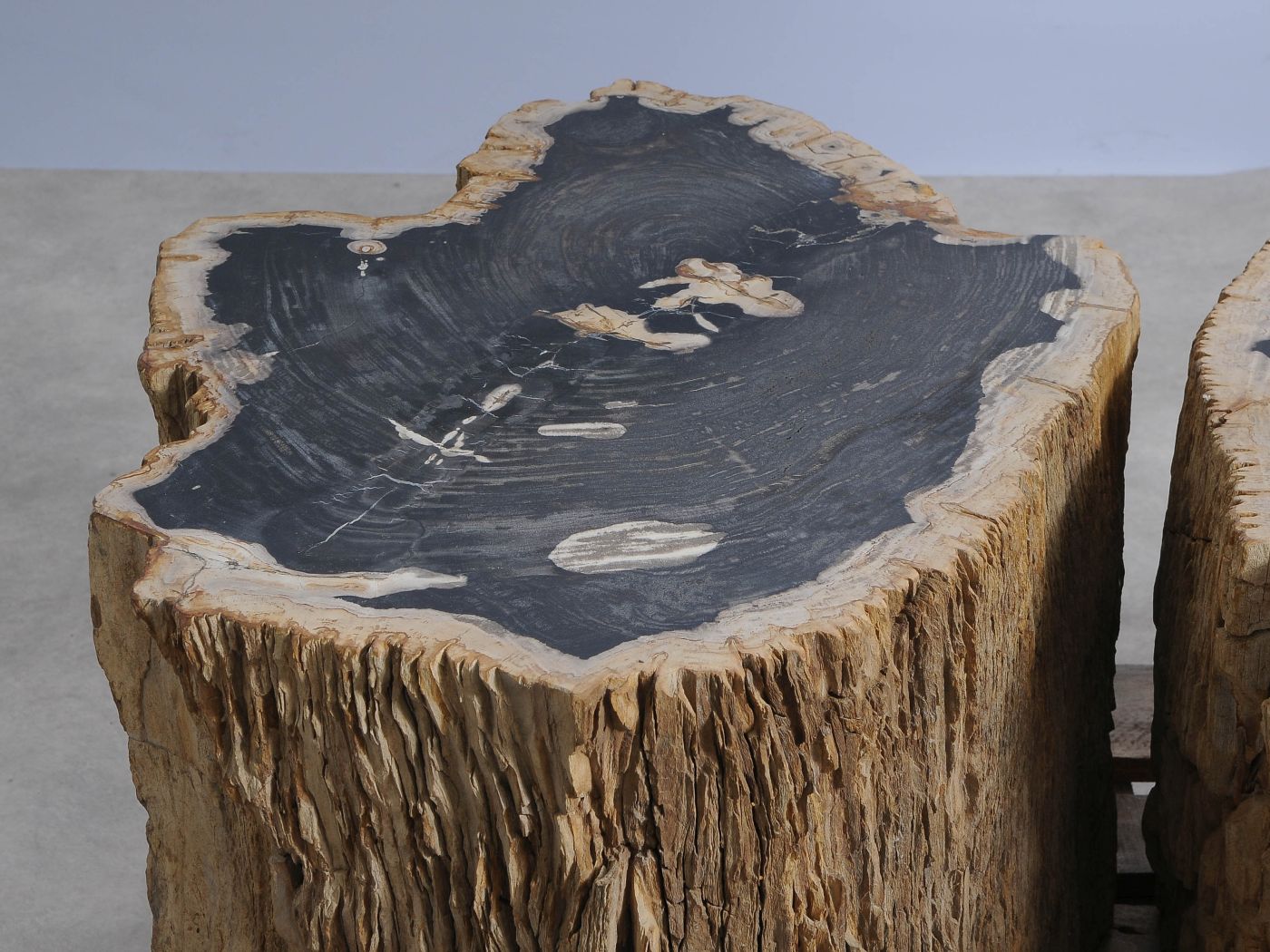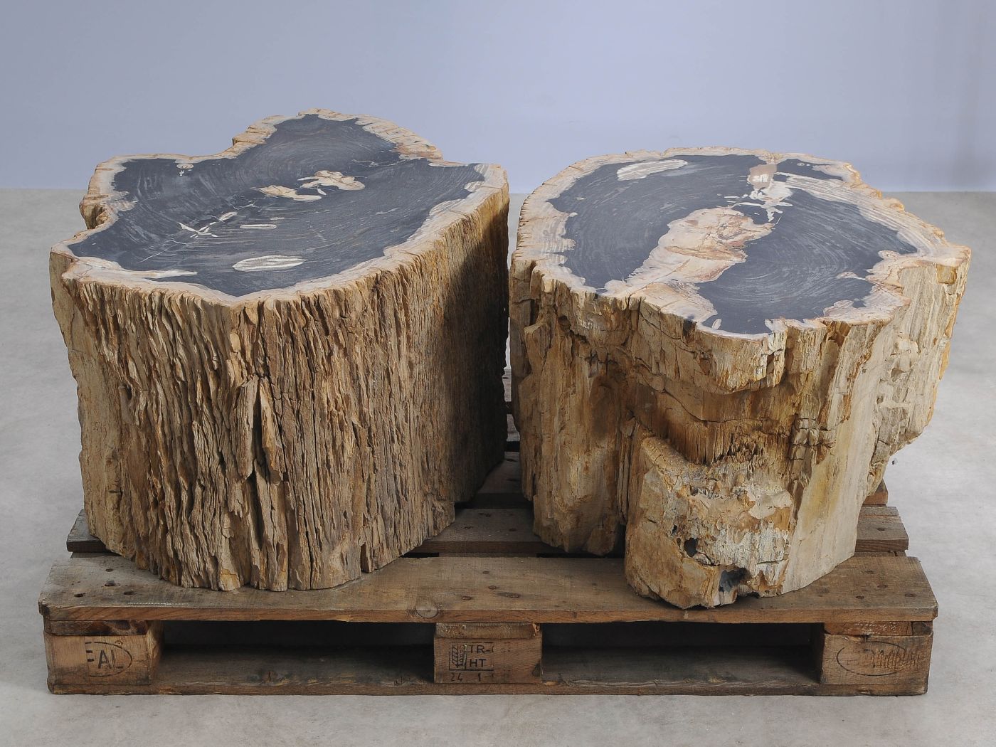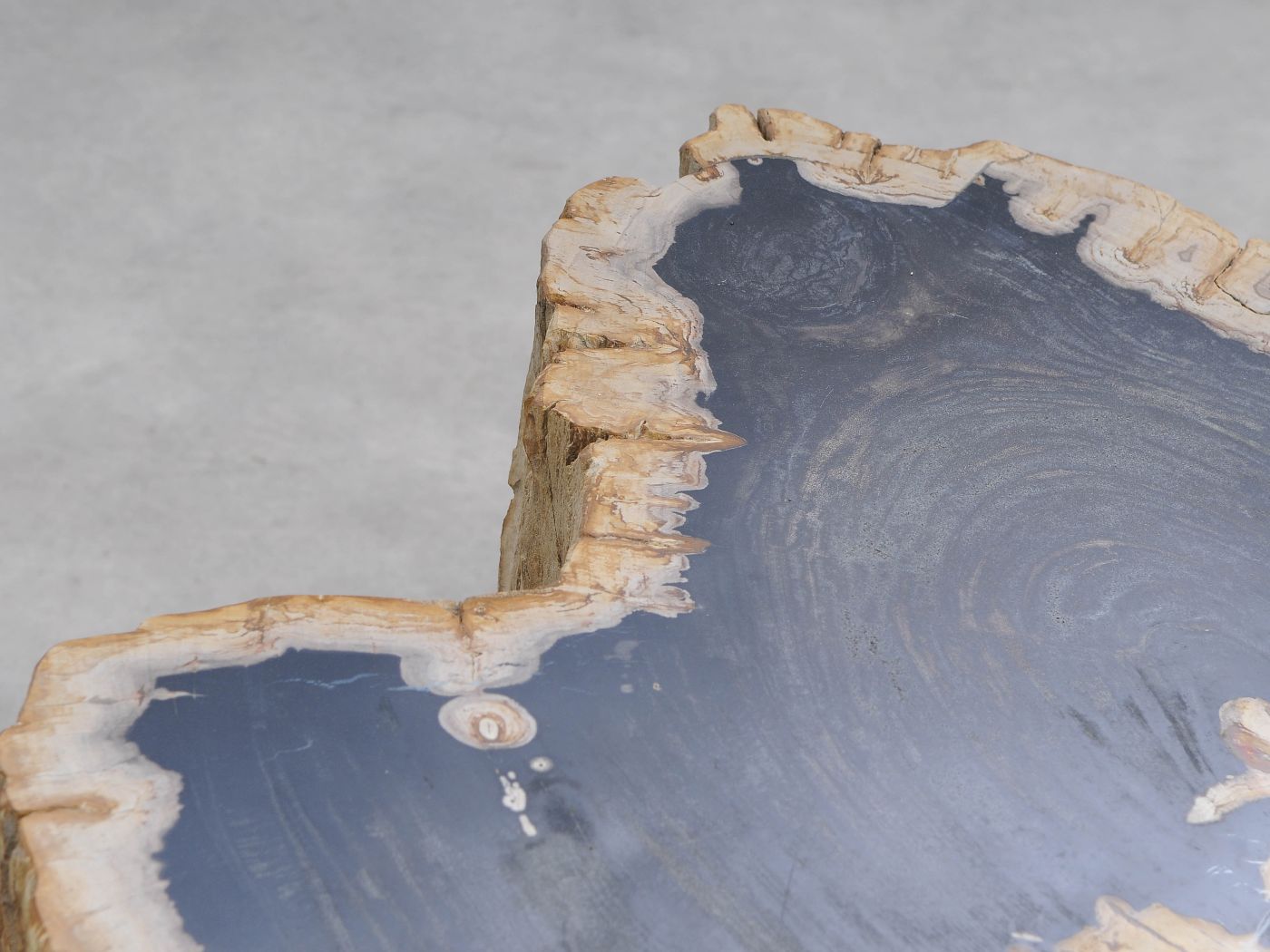 Deze bijzettafel van versteend hout heeft een unieke vorm en kleur. Het duurzaam verkregen versteend hout is gemiddeld 20 miljoen jaar oud. De bijzettafels kunnen op zich staan, maar een groep van twee of drie bijzettafels geeft ook een prachtig effect.