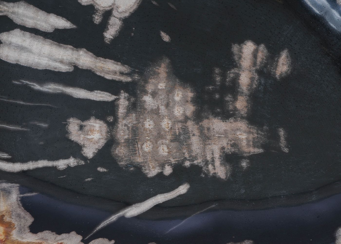 • Kleuren versteend hout: Gemengde kleuren, Voornamelijk zwart