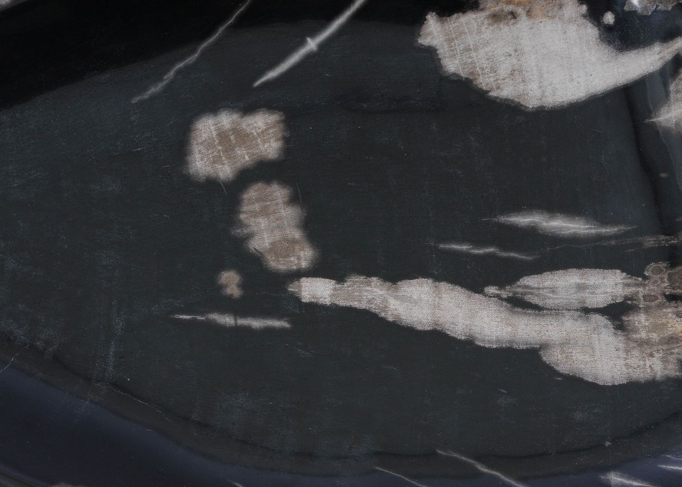 - Kleuren versteend hout: Voornamelijk zwart