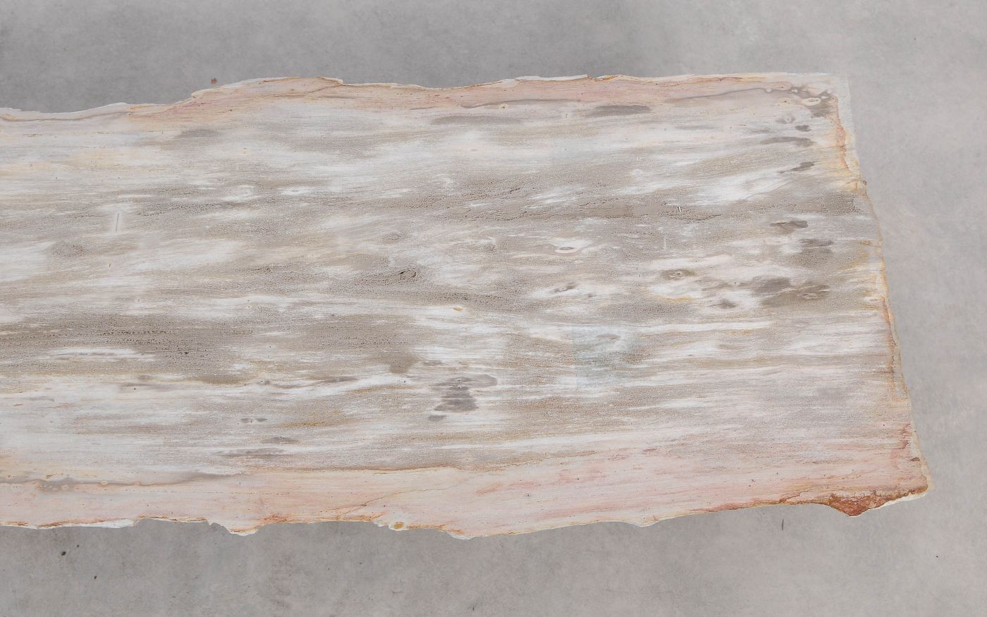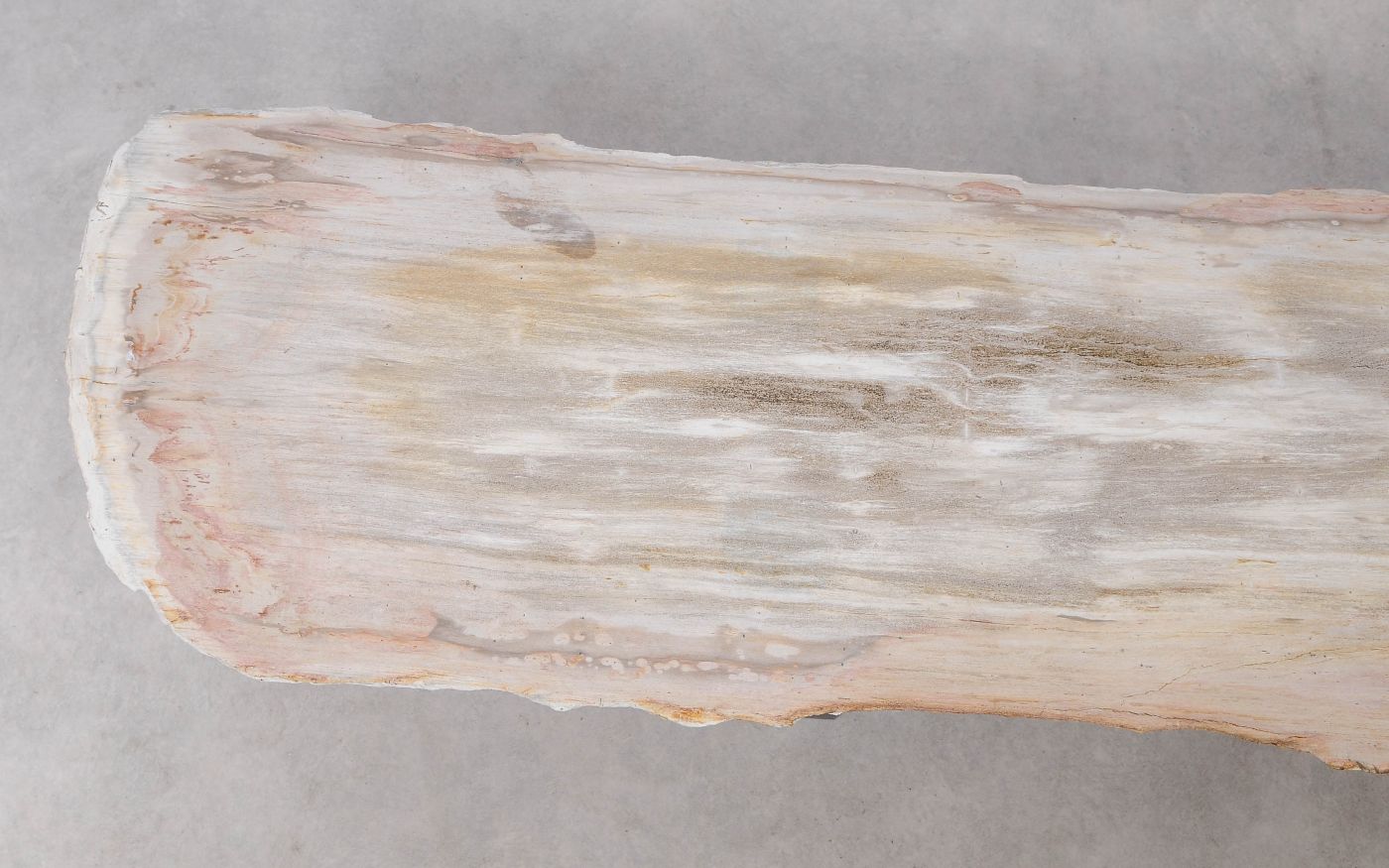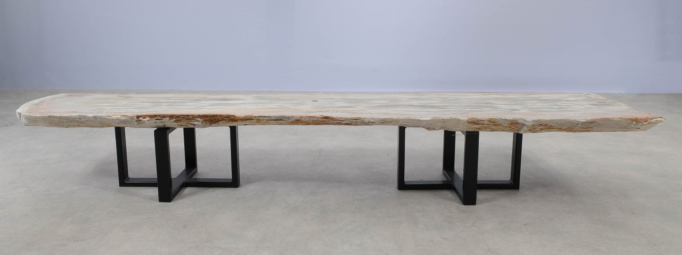 Deze unieke consoletafel van versteend hout past in ieder interieur. Het tafelblad is gezaagd uit een grote versteende boom, die ongeveer 20 miljoen jaar geleden geleefd heeft. De kleuren zijn bepaald door de mineralen die het hout van deze boom vervangen hebben.
