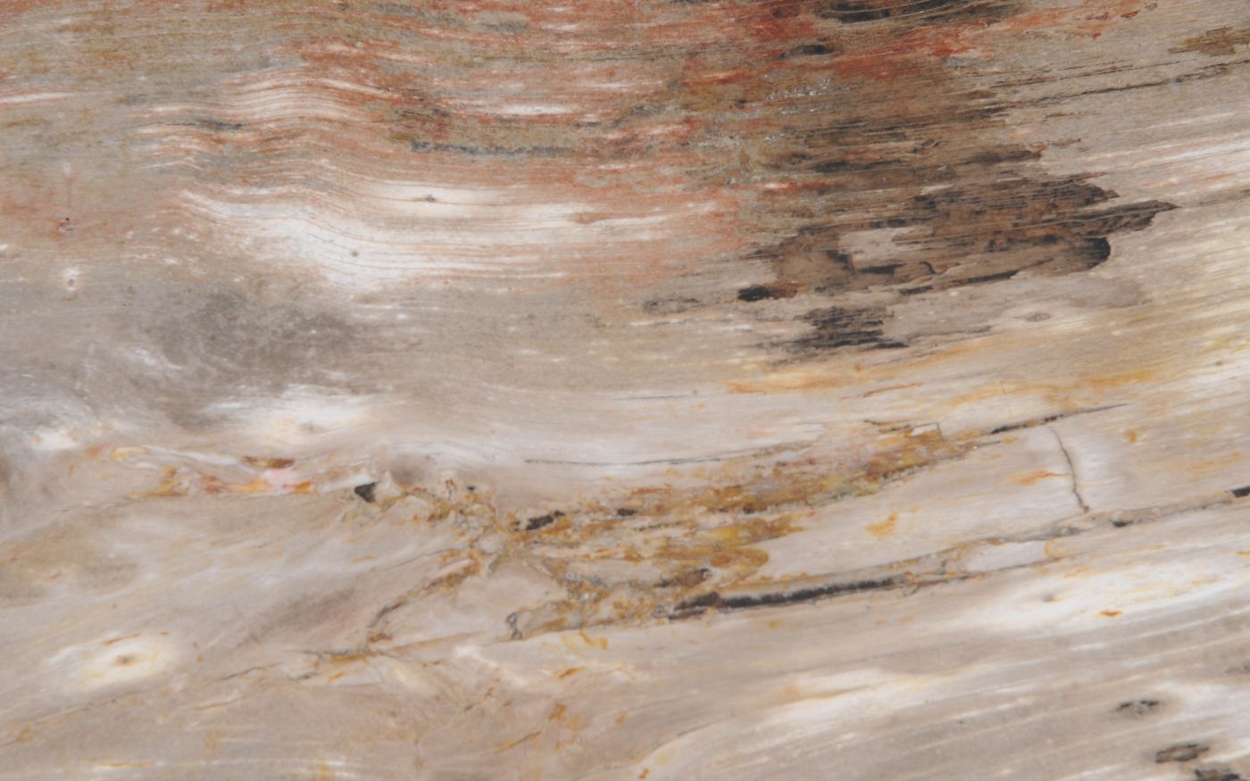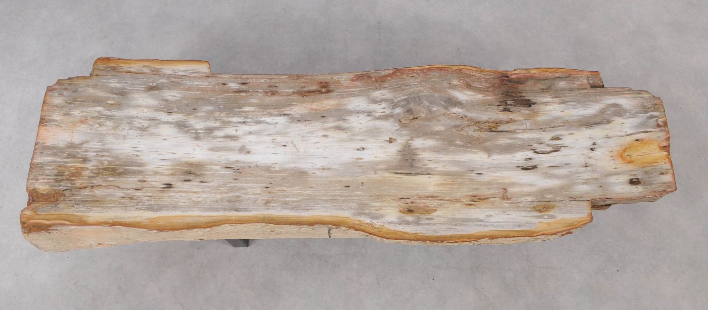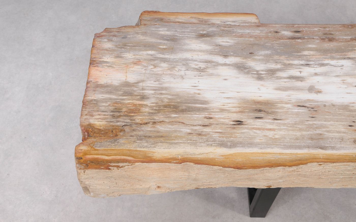Deze unieke consoletafel van versteend hout past in ieder interieur. Het tafelblad is gezaagd uit een grote versteende boom, die ongeveer 20 miljoen jaar geleden geleefd heeft. De kleuren zijn bepaald door de mineralen die het hout van deze boom vervangen hebben.