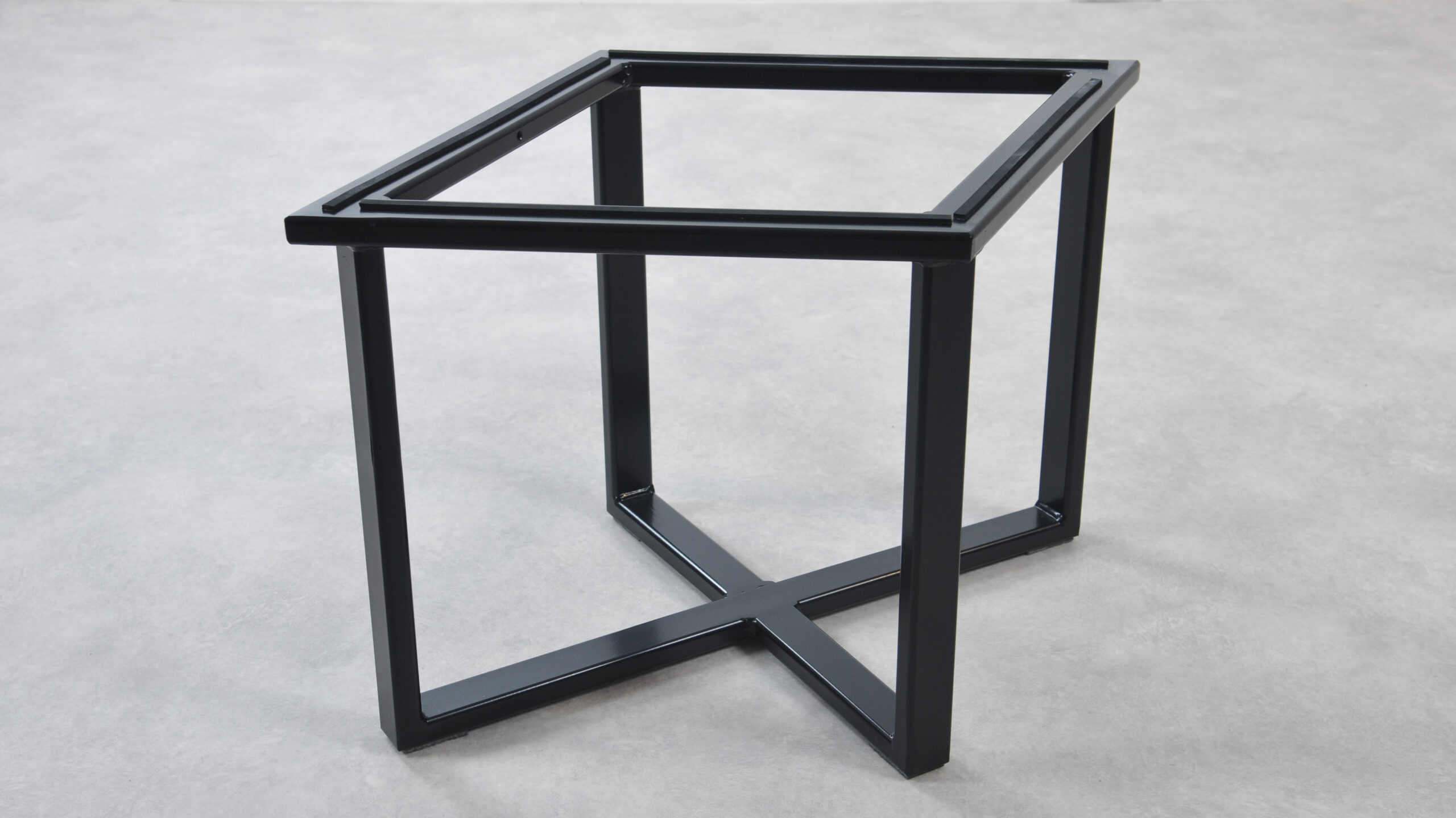 Dit is een kruisframe waarbij de bovenkant een ruitvorm heeft. Vooral geschikt voor plakken met een gat in het midden. Je kijkt met dit frame niet op de stalen poot door het gat.