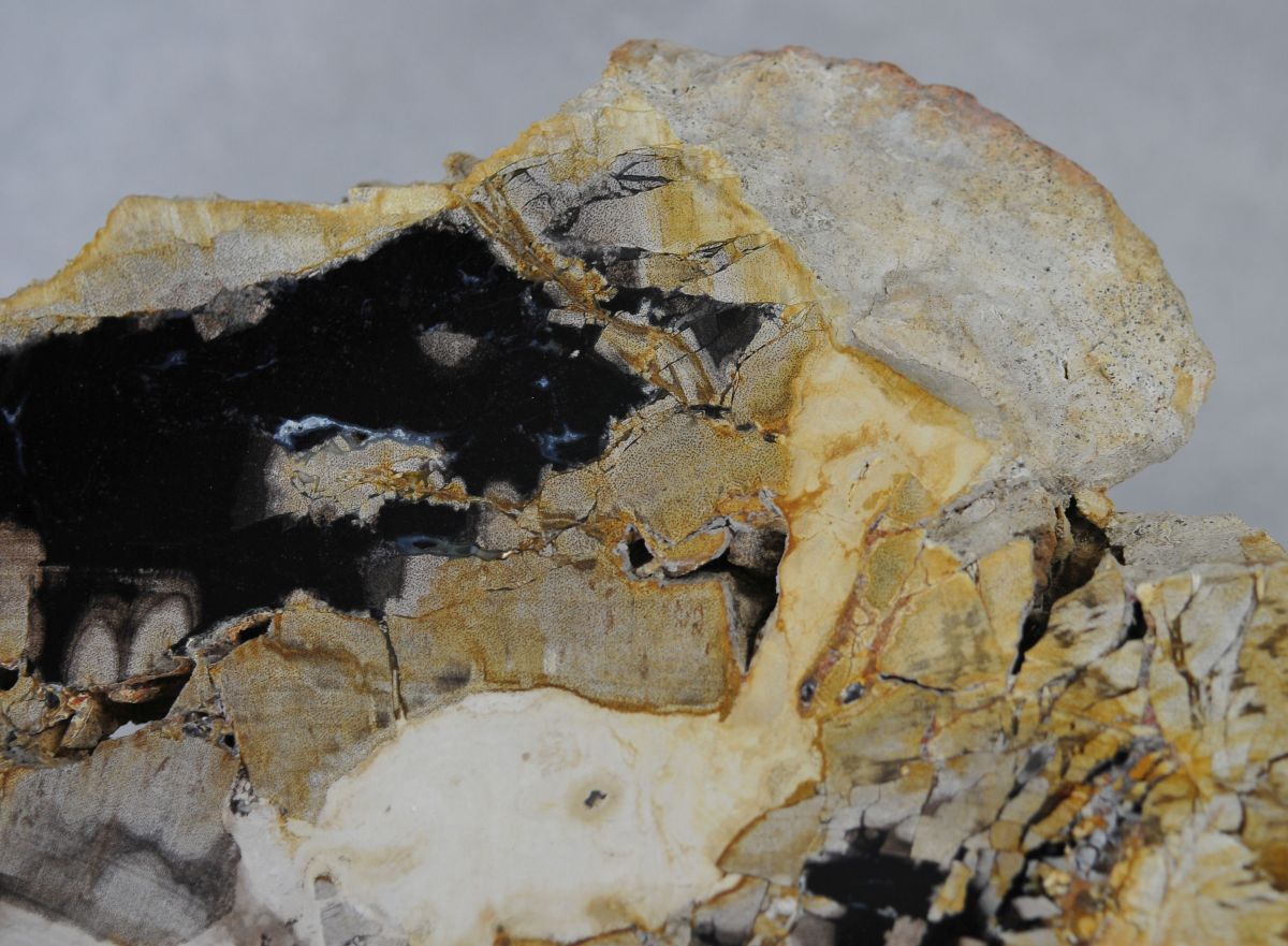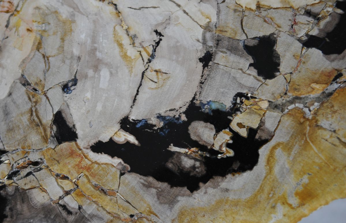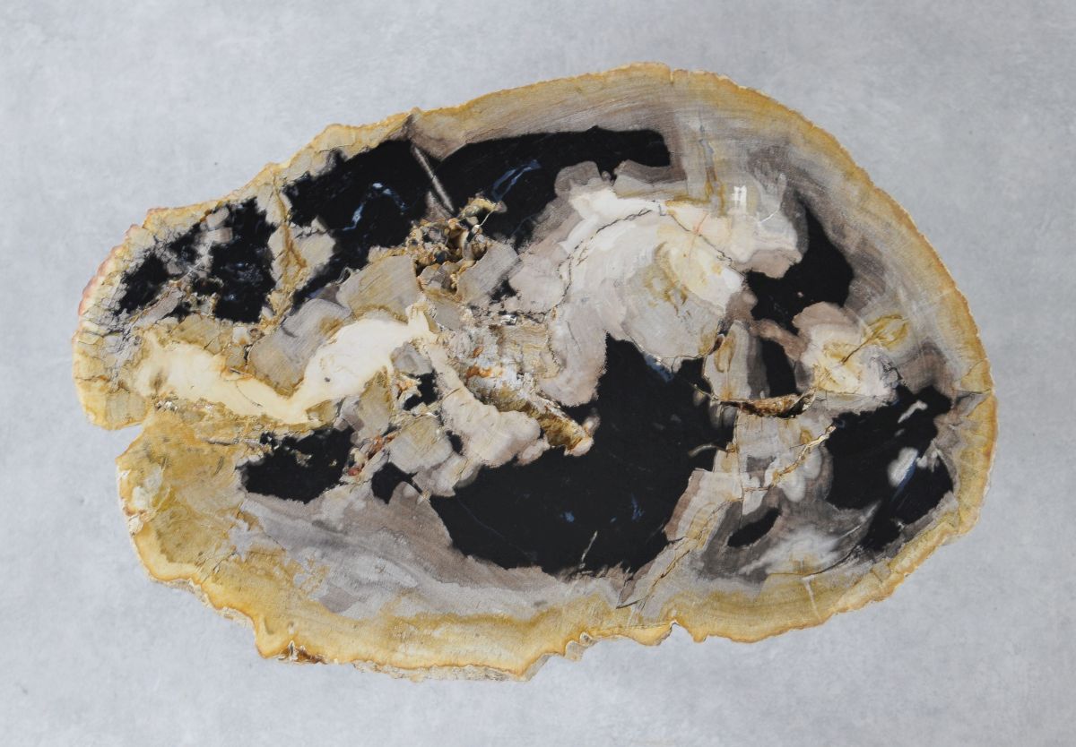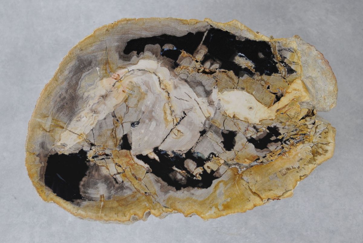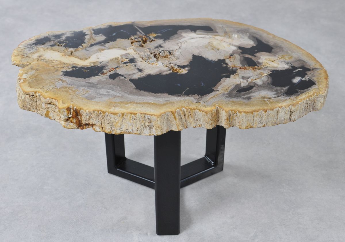 Deze unieke salontafel van versteend hout past in ieder interieur. Het tafelblad is gezaagd uit een grote versteende boom, die ongeveer 20 miljoen jaar geleden geleefd heeft. De kleuren zijn bepaald door de mineralen die het hout van deze boom vervangen hebben.