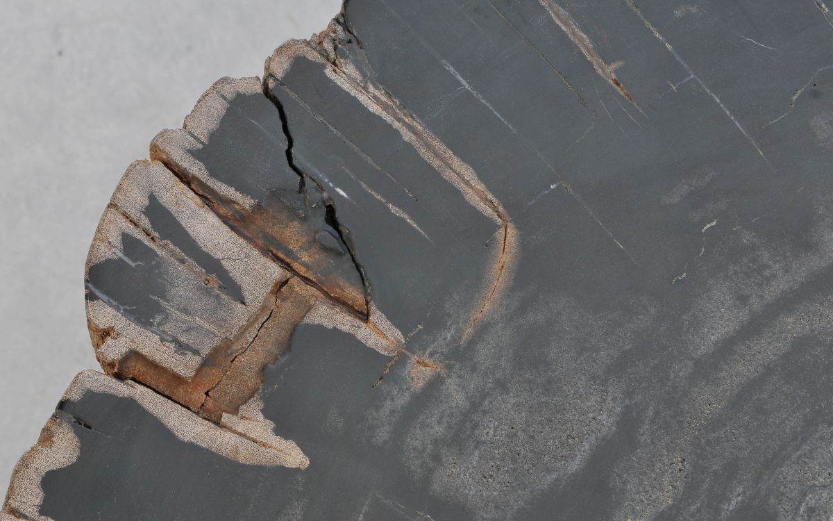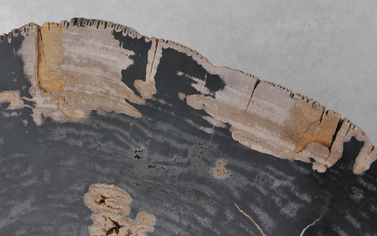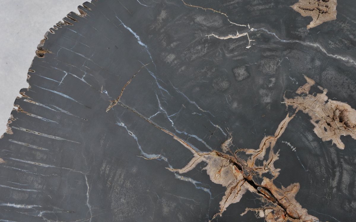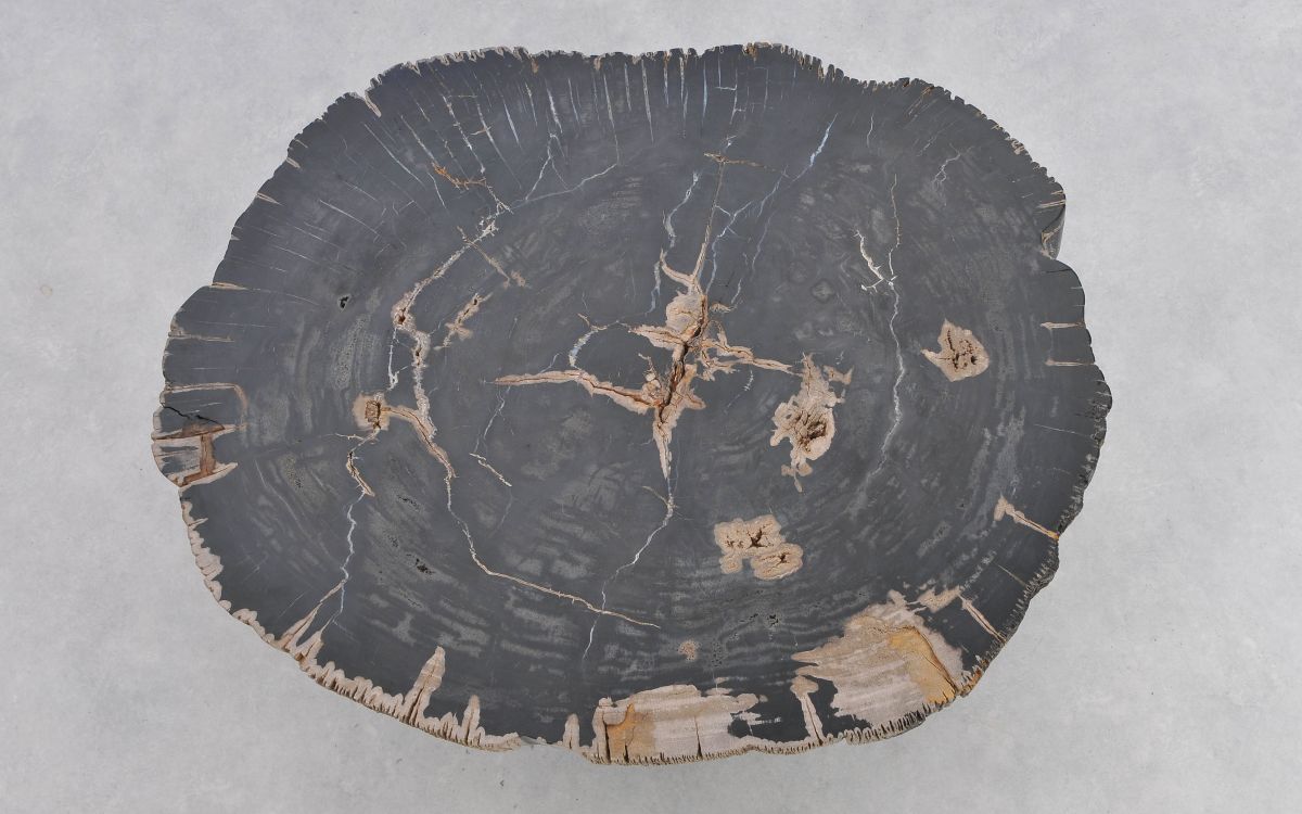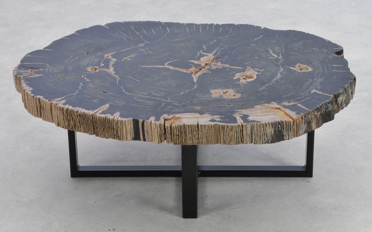 Deze unieke salontafel van versteend hout past in ieder interieur. Het tafelblad is gezaagd uit een grote versteende boom, die ongeveer 20 miljoen jaar geleden geleefd heeft. De kleuren zijn bepaald door de mineralen die het hout van deze boom vervangen hebben.