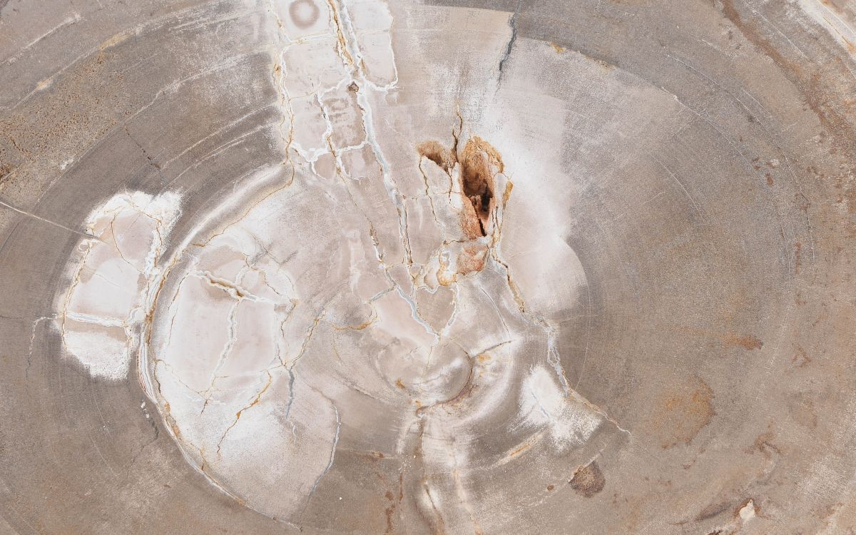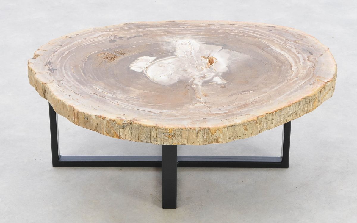 Deze unieke salontafel van versteend hout past in ieder interieur. Het tafelblad is gezaagd uit een grote versteende boom, die ongeveer 20 miljoen jaar geleden geleefd heeft. De kleuren zijn bepaald door de mineralen die het hout van deze boom vervangen hebben.