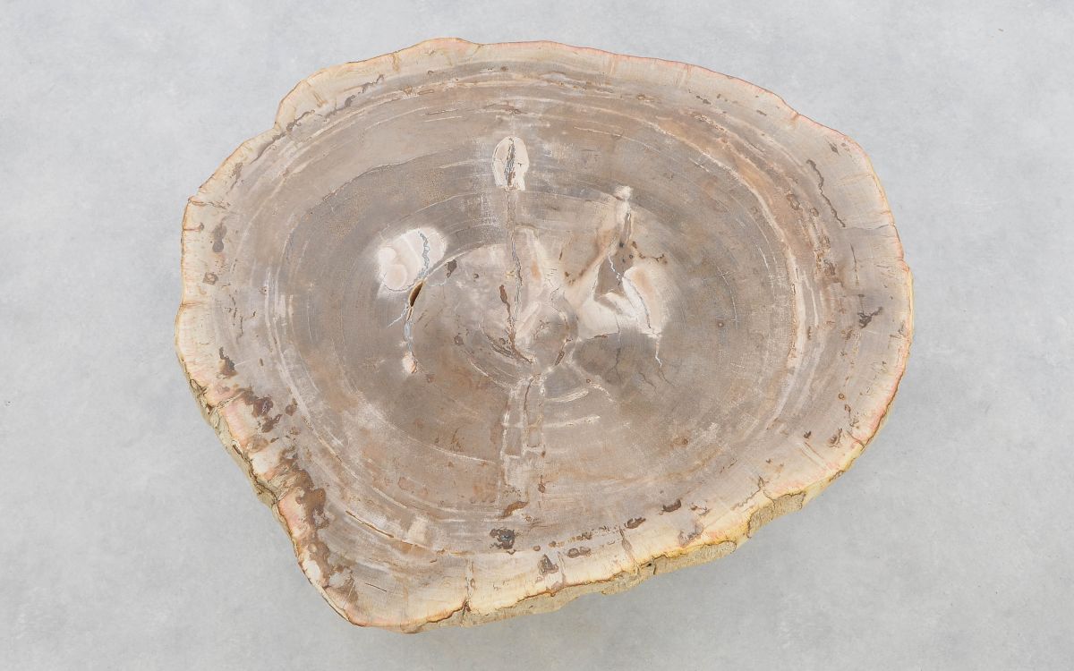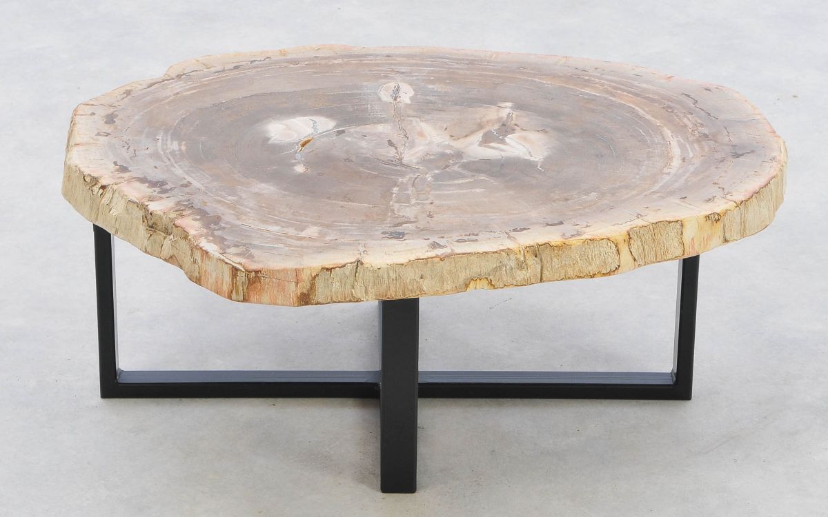 Deze unieke salontafel van versteend hout past in ieder interieur. Het tafelblad is gezaagd uit een grote versteende boom, die ongeveer 20 miljoen jaar geleden geleefd heeft. De kleuren zijn bepaald door de mineralen die het hout van deze boom vervangen hebben.