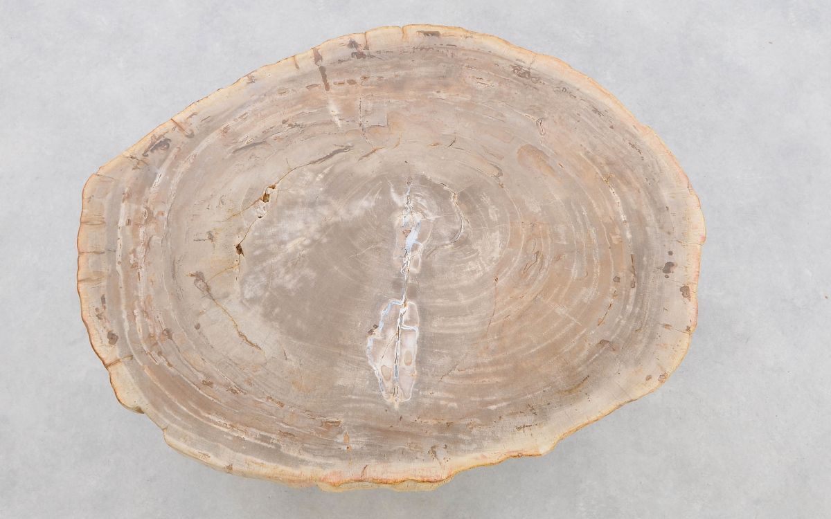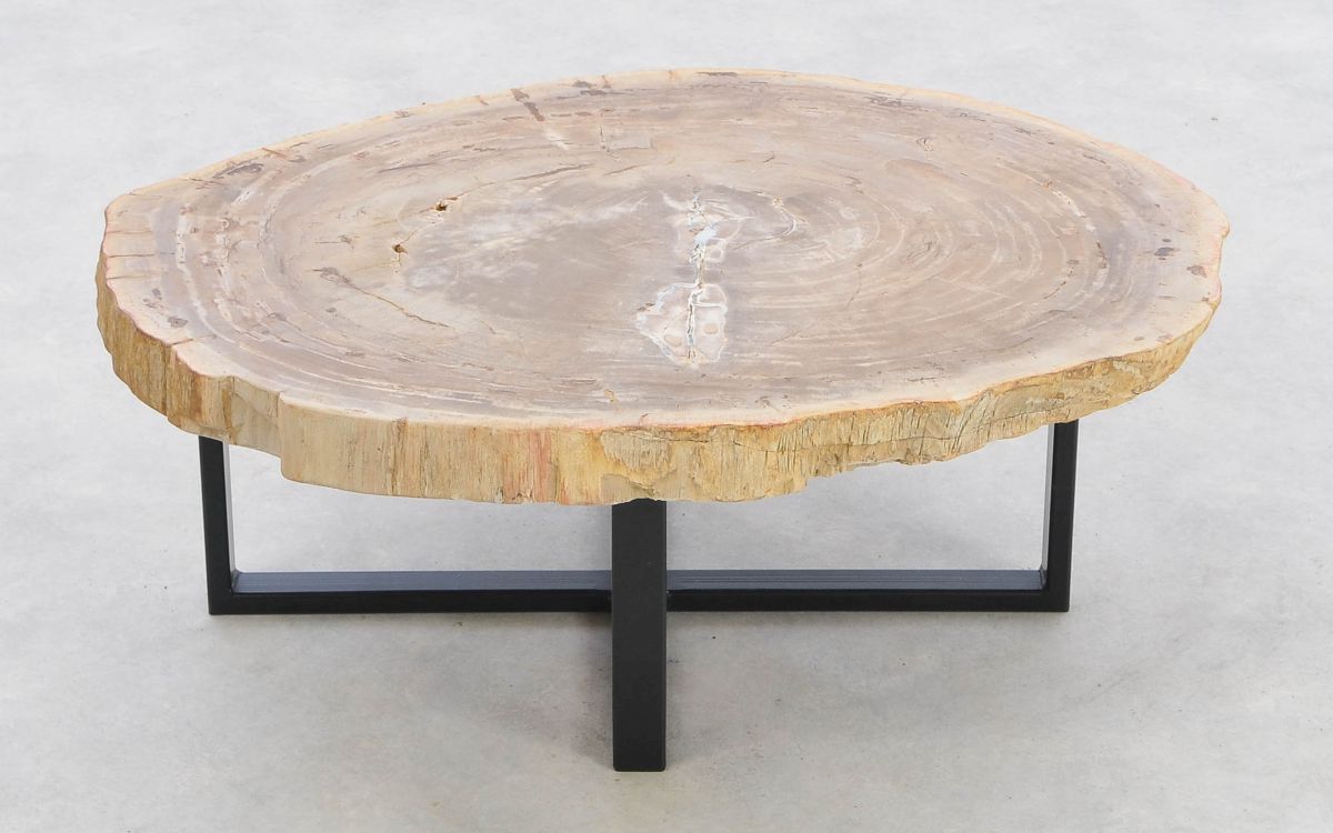 Deze unieke salontafel van versteend hout past in ieder interieur. Het tafelblad is gezaagd uit een grote versteende boom, die ongeveer 20 miljoen jaar geleden geleefd heeft. De kleuren zijn bepaald door de mineralen die het hout van deze boom vervangen hebben.