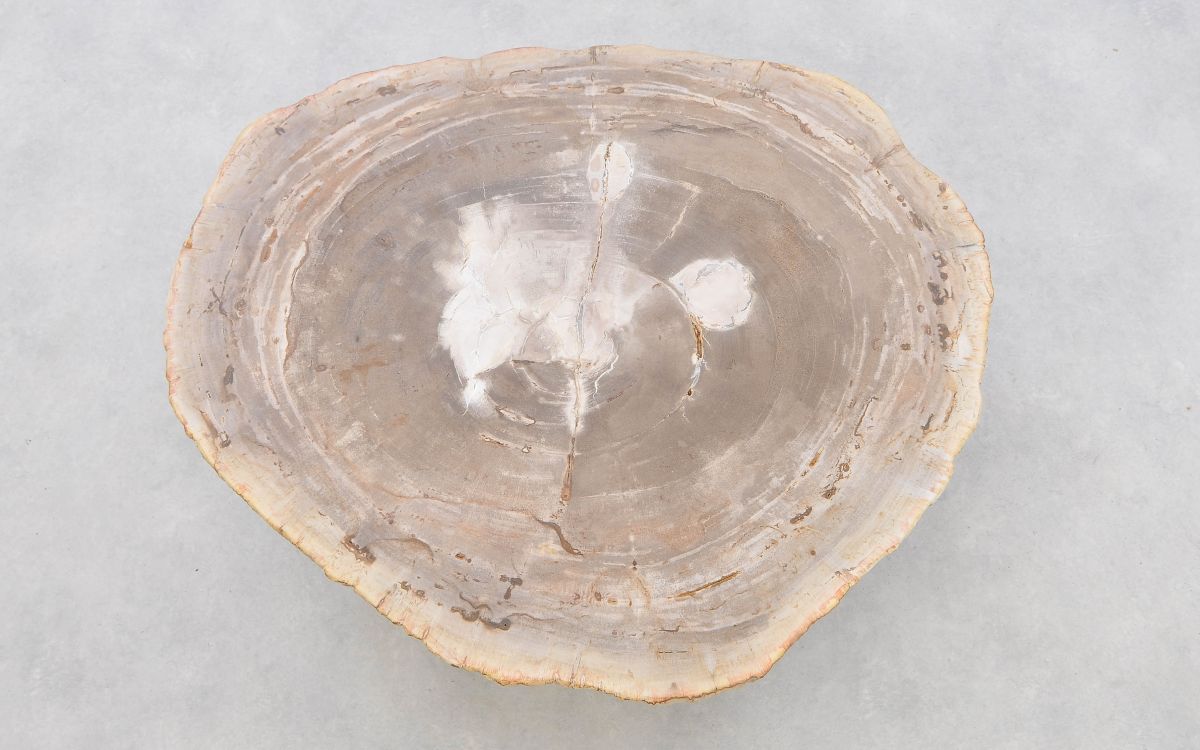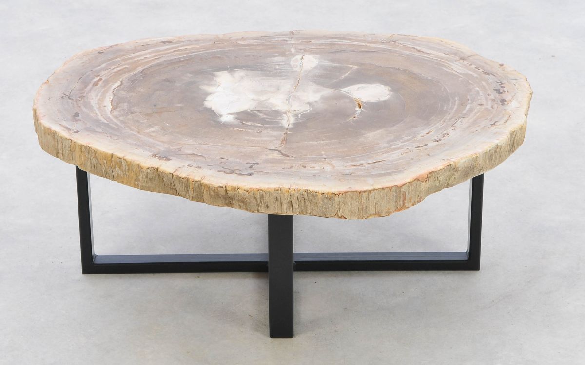 Deze unieke salontafel van versteend hout past in ieder interieur. Het tafelblad is gezaagd uit een grote versteende boom, die ongeveer 20 miljoen jaar geleden geleefd heeft. De kleuren zijn bepaald door de mineralen die het hout van deze boom vervangen hebben.
