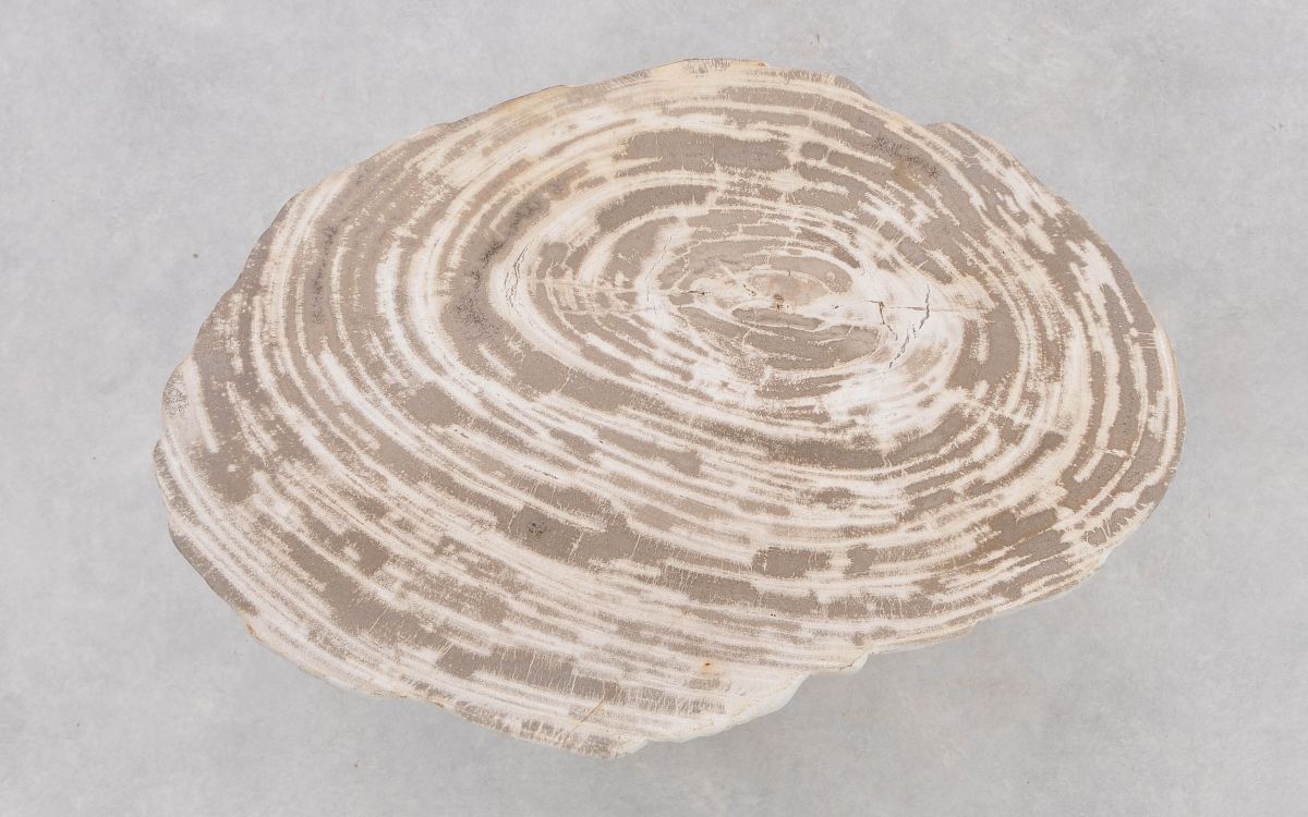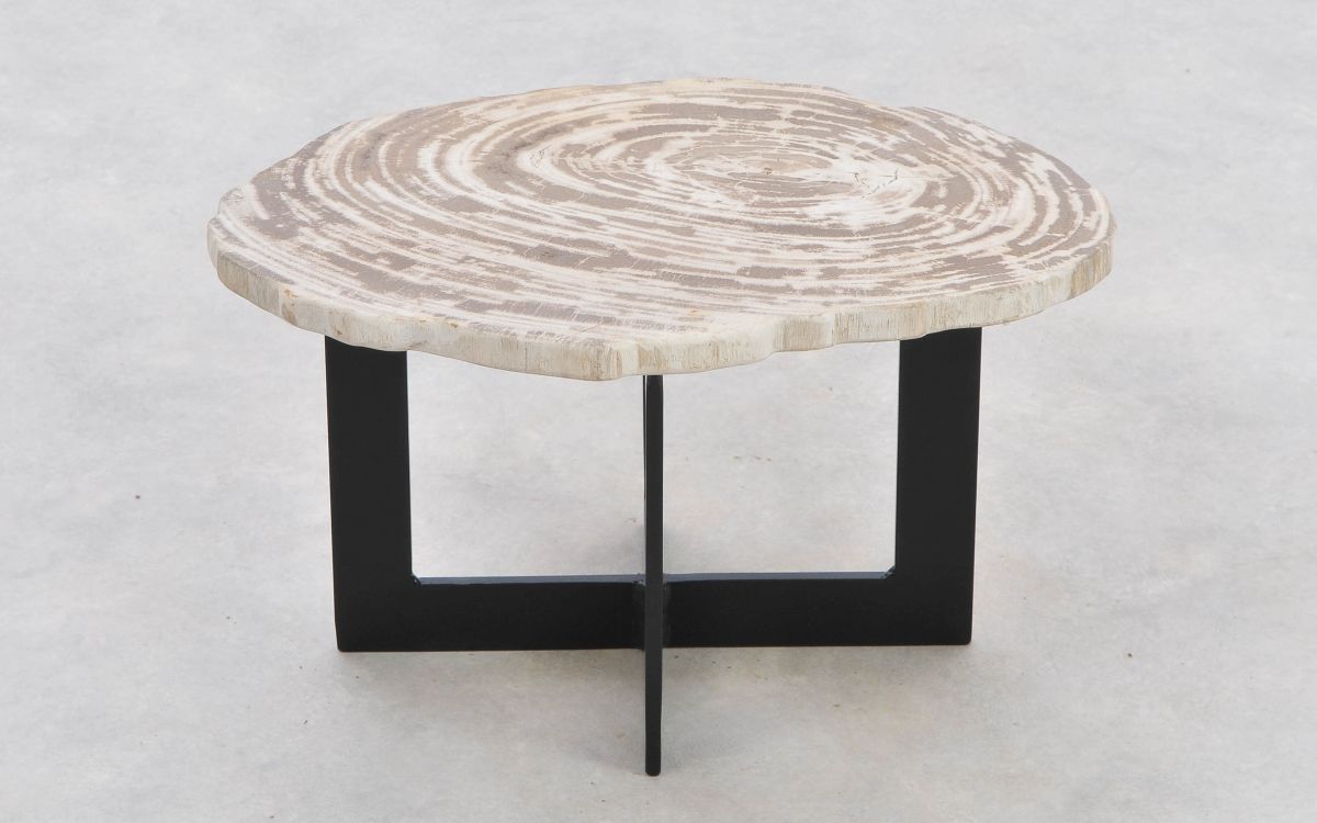 Deze unieke salontafel van versteend hout past in ieder interieur. Het tafelblad is gezaagd uit een grote versteende boom, die ongeveer 20 miljoen jaar geleden geleefd heeft. De kleuren zijn bepaald door de mineralen die het hout van deze boom vervangen hebben.
