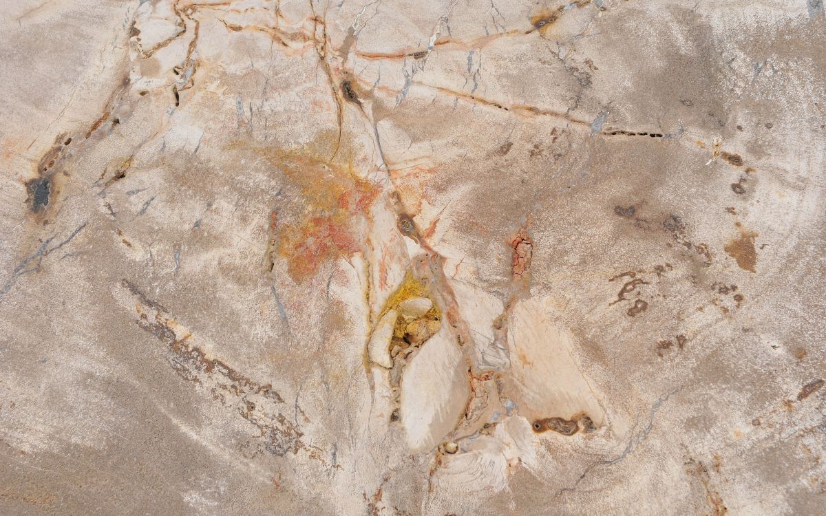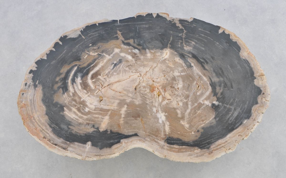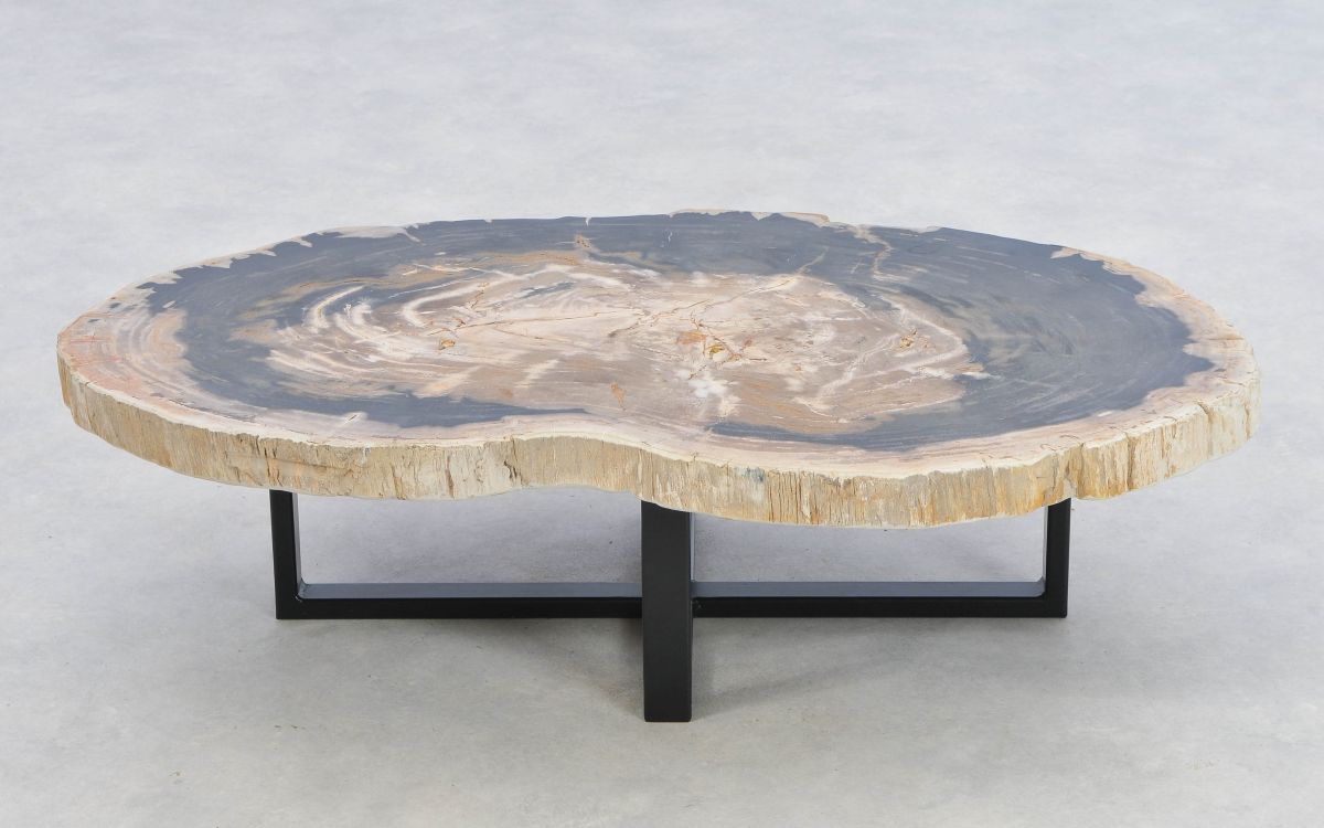 Deze unieke salontafel van versteend hout past in ieder interieur. Het tafelblad is gezaagd uit een grote versteende boom, die ongeveer 20 miljoen jaar geleden geleefd heeft. De kleuren zijn bepaald door de mineralen die het hout van deze boom vervangen hebben.
