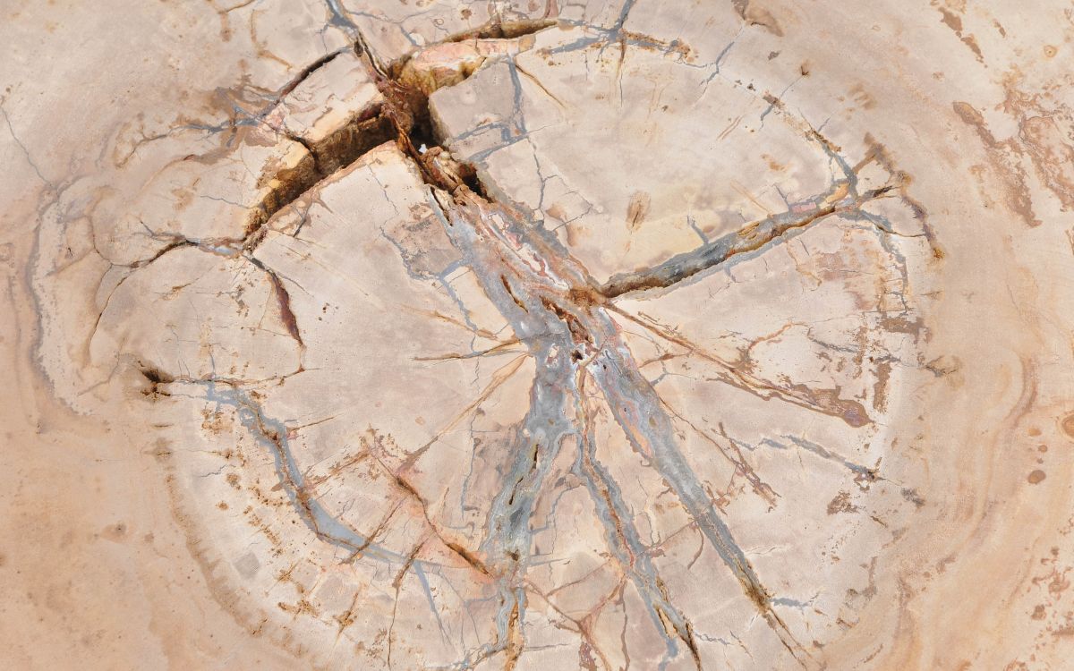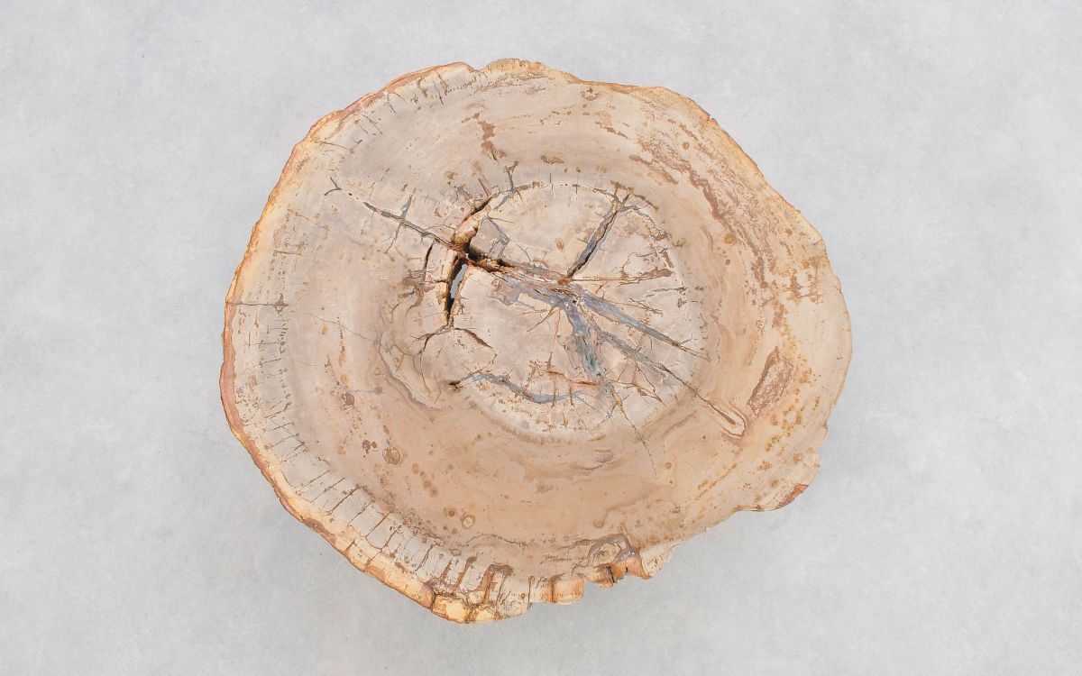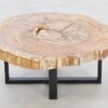 Deze unieke salontafel van versteend hout past in ieder interieur. Het tafelblad is gezaagd uit een grote versteende boom, die ongeveer 20 miljoen jaar geleden geleefd heeft. De kleuren zijn bepaald door de mineralen die het hout van deze boom vervangen hebben.