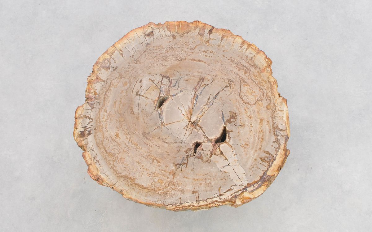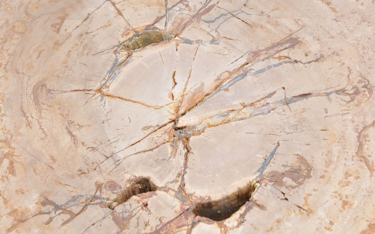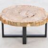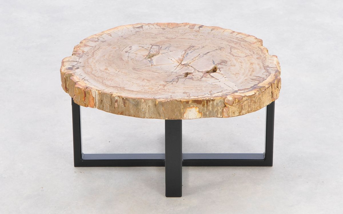 Deze unieke salontafel van versteend hout past in ieder interieur. Het tafelblad is gezaagd uit een grote versteende boom, die ongeveer 20 miljoen jaar geleden geleefd heeft. De kleuren zijn bepaald door de mineralen die het hout van deze boom vervangen hebben.