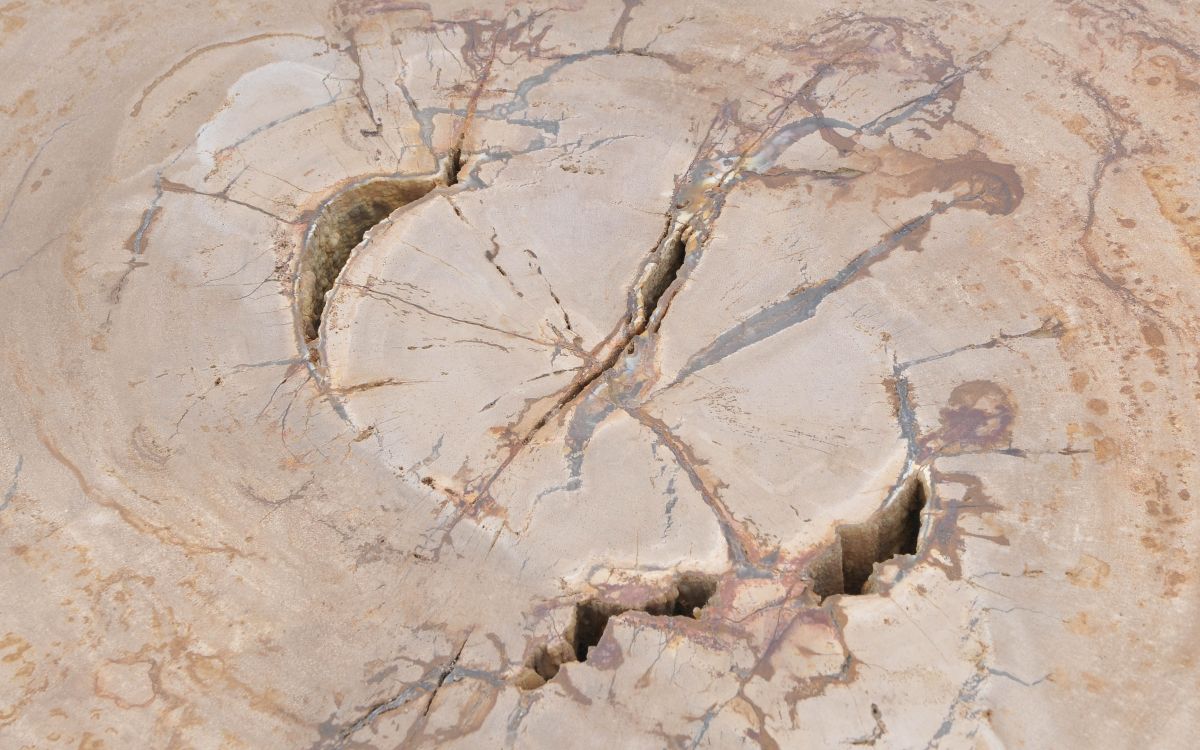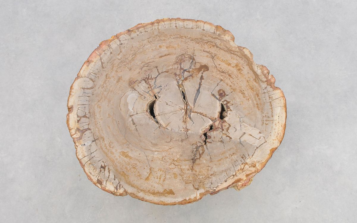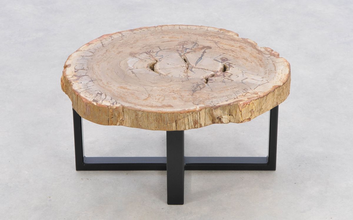 Deze unieke salontafel van versteend hout past in ieder interieur. Het tafelblad is gezaagd uit een grote versteende boom, die ongeveer 20 miljoen jaar geleden geleefd heeft. De kleuren zijn bepaald door de mineralen die het hout van deze boom vervangen hebben.