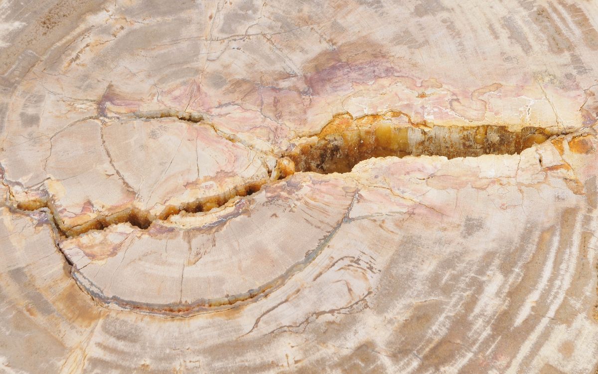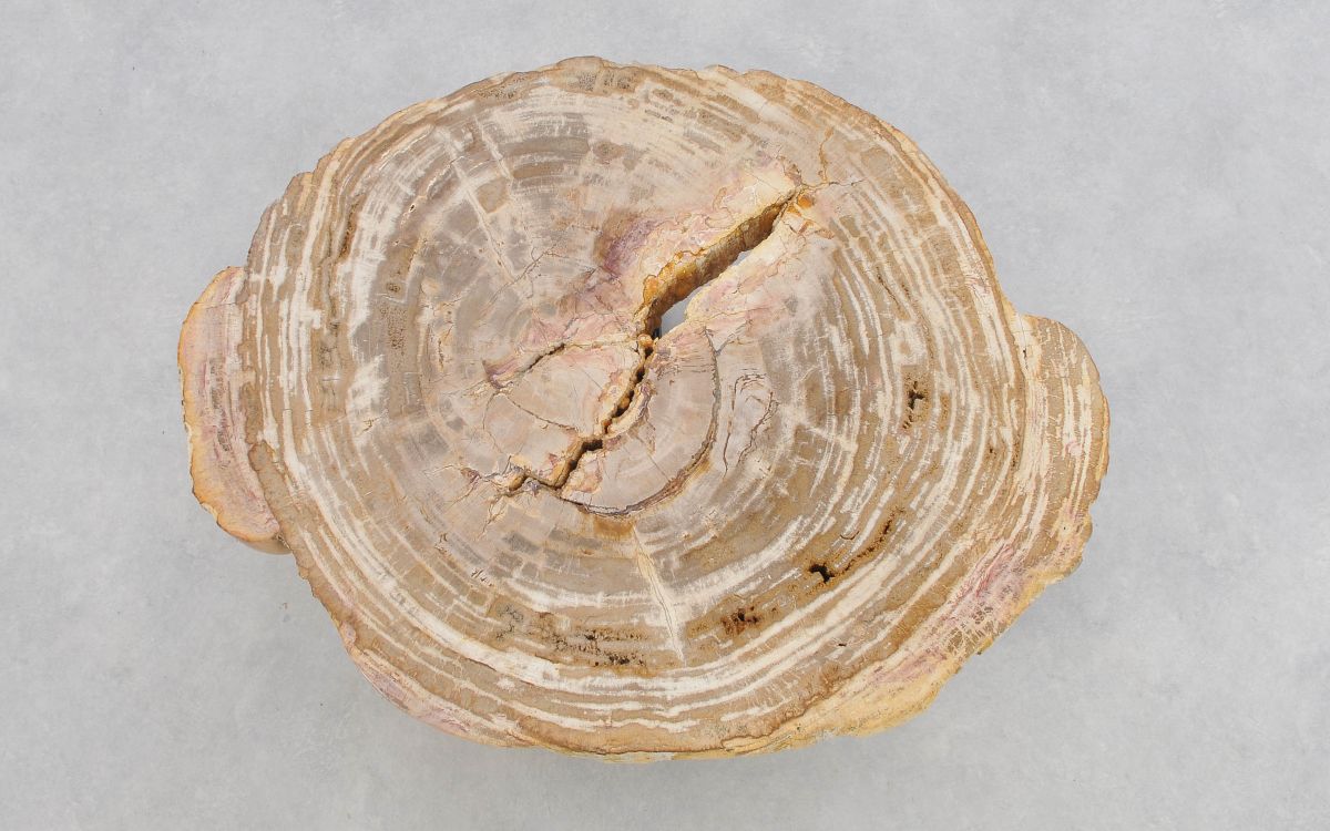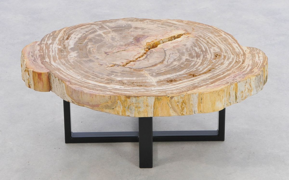 Deze unieke salontafel van versteend hout past in ieder interieur. Het tafelblad is gezaagd uit een grote versteende boom, die ongeveer 20 miljoen jaar geleden geleefd heeft. De kleuren zijn bepaald door de mineralen die het hout van deze boom vervangen hebben.