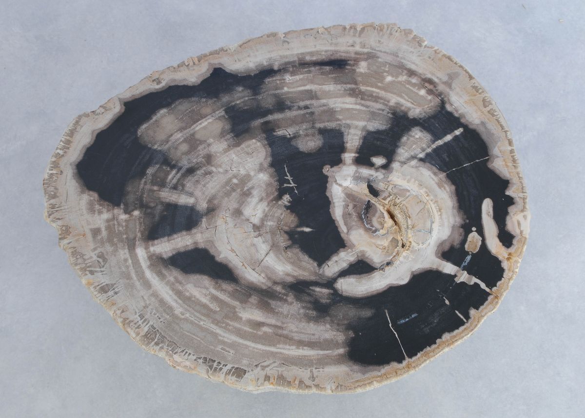 Deze unieke salontafel van versteend hout past in ieder interieur. Het tafelblad is gezaagd uit een grote versteende boom, die ongeveer 20 miljoen jaar geleden geleefd heeft. De kleuren zijn bepaald door de mineralen die het hout van deze boom vervangen hebben.