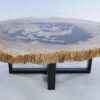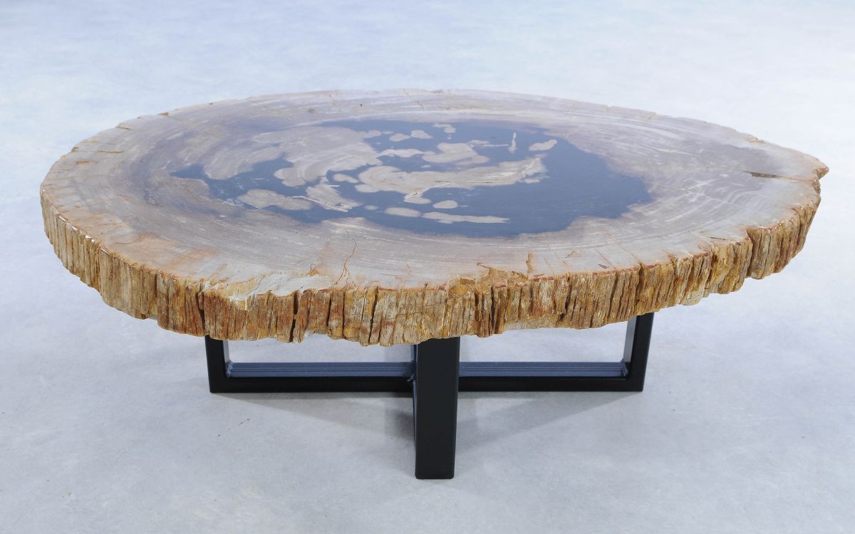 Deze unieke salontafel van versteend hout past in ieder interieur. Het tafelblad is gezaagd uit een grote versteende boom, die ongeveer 20 miljoen jaar geleden geleefd heeft. De kleuren zijn bepaald door de mineralen die het hout van deze boom vervangen hebben.