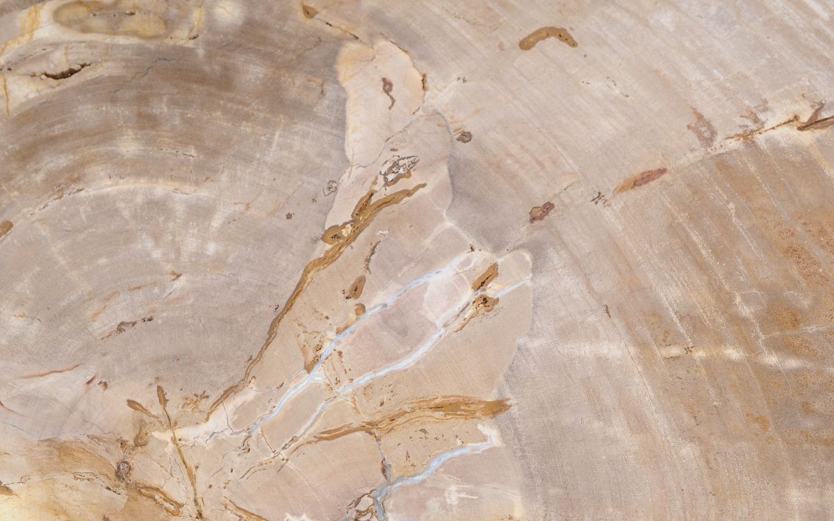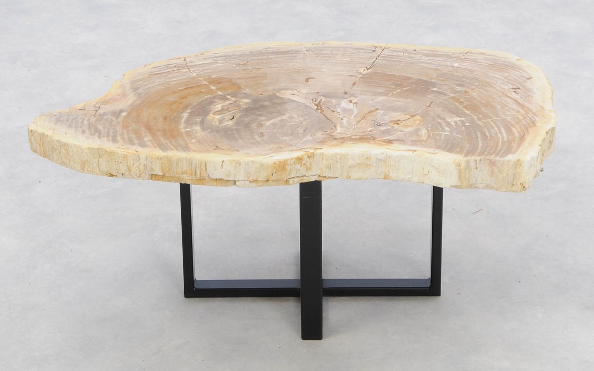 Deze unieke salontafel van versteend hout past in ieder interieur. Het tafelblad is gezaagd uit een grote versteende boom, die ongeveer 20 miljoen jaar geleden geleefd heeft. De kleuren zijn bepaald door de mineralen die het hout van deze boom vervangen hebben.