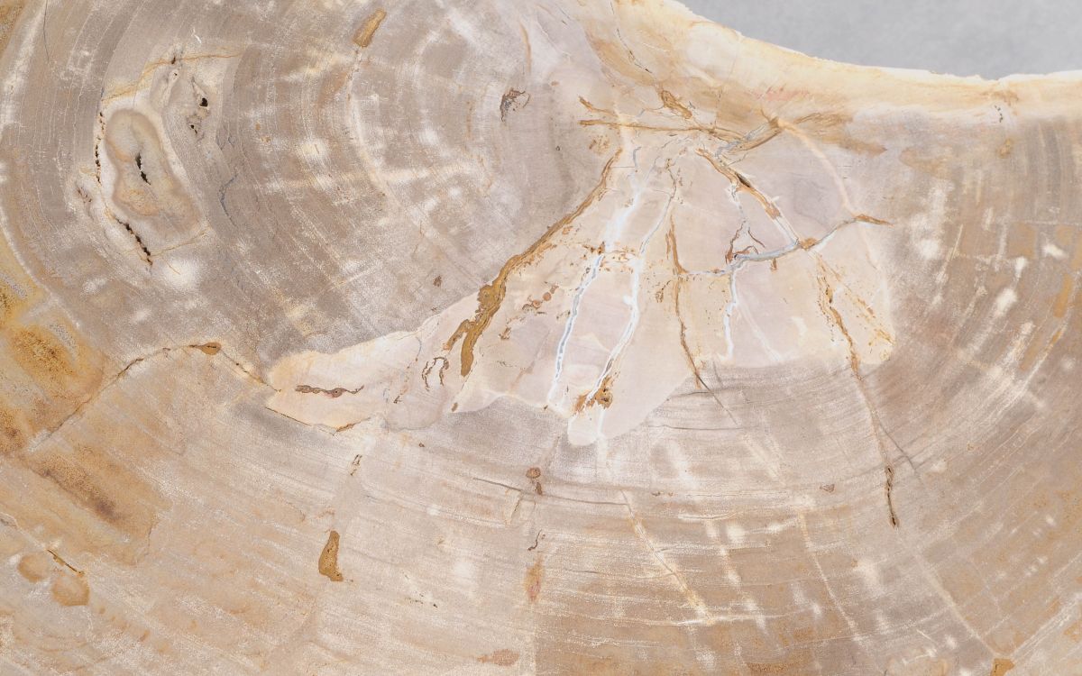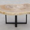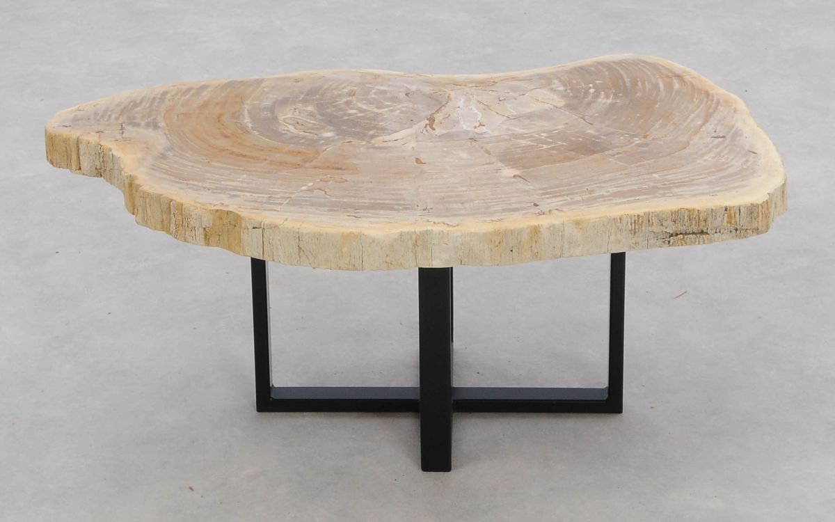 Deze unieke salontafel van versteend hout past in ieder interieur. Het tafelblad is gezaagd uit een grote versteende boom, die ongeveer 20 miljoen jaar geleden geleefd heeft. De kleuren zijn bepaald door de mineralen die het hout van deze boom vervangen hebben.