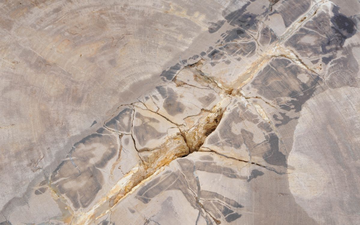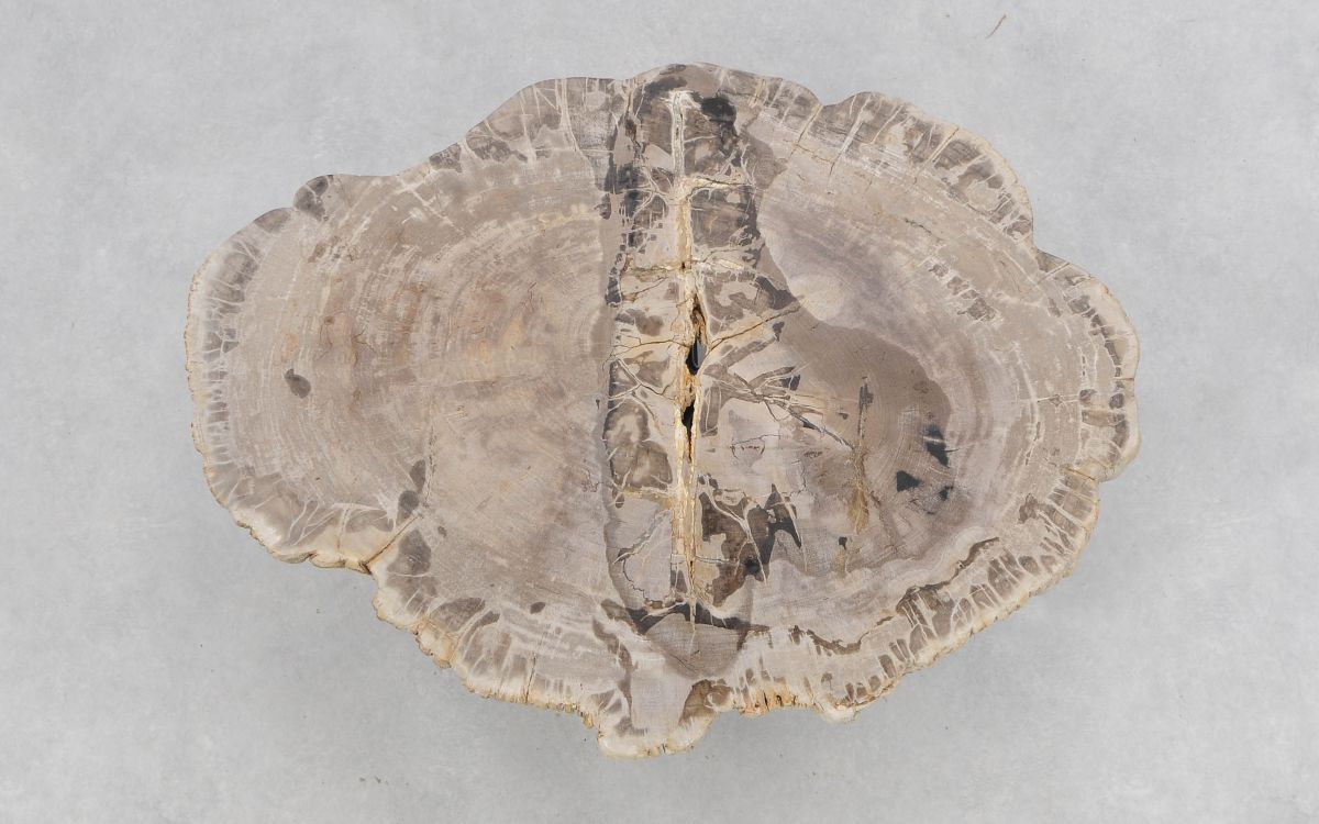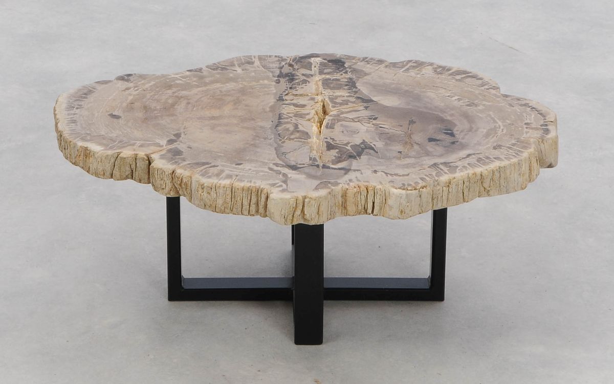 Deze unieke salontafel van versteend hout past in ieder interieur. Het tafelblad is gezaagd uit een grote versteende boom, die ongeveer 20 miljoen jaar geleden geleefd heeft. De kleuren zijn bepaald door de mineralen die het hout van deze boom vervangen hebben.