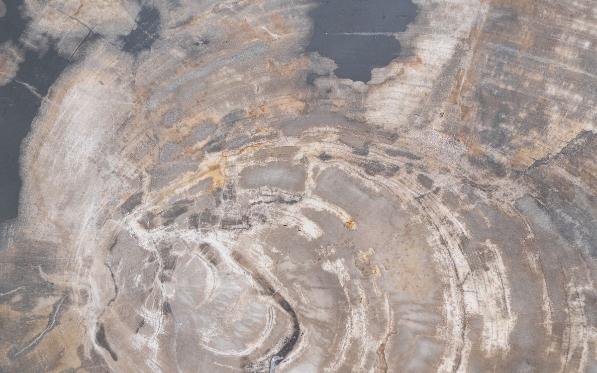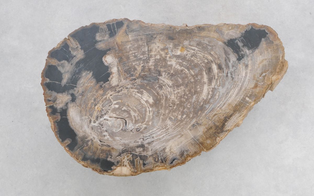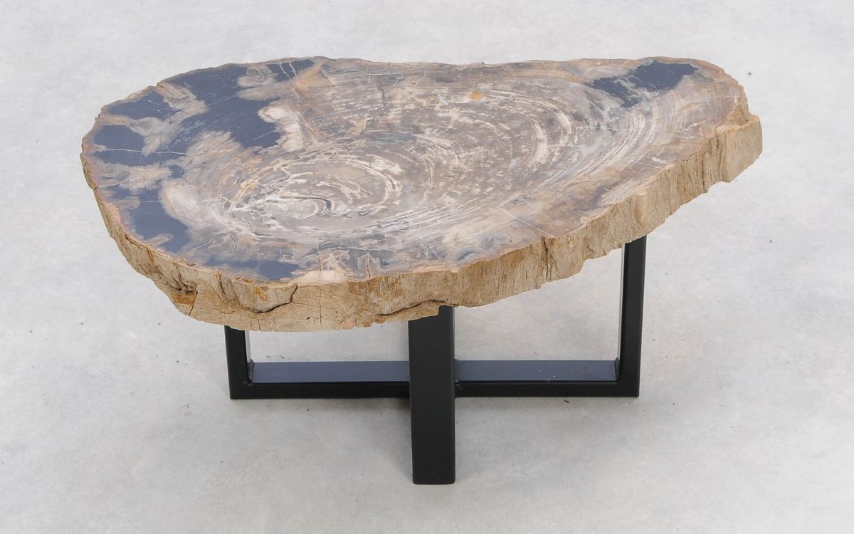 Deze unieke salontafel van versteend hout past in ieder interieur. Het tafelblad is gezaagd uit een grote versteende boom, die ongeveer 20 miljoen jaar geleden geleefd heeft. De kleuren zijn bepaald door de mineralen die het hout van deze boom vervangen hebben.