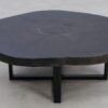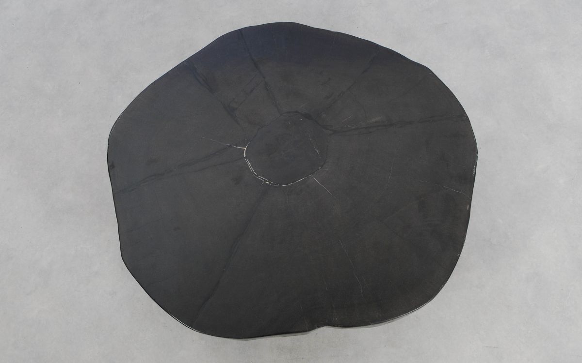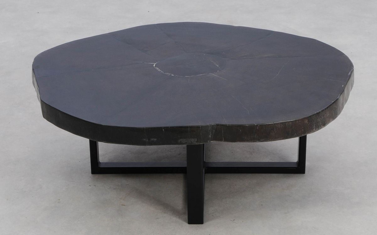 Deze unieke salontafel van versteend hout past in ieder interieur. Het tafelblad is gezaagd uit een grote versteende boom, die ongeveer 20 miljoen jaar geleden geleefd heeft. De kleuren zijn bepaald door de mineralen die het hout van deze boom vervangen hebben.