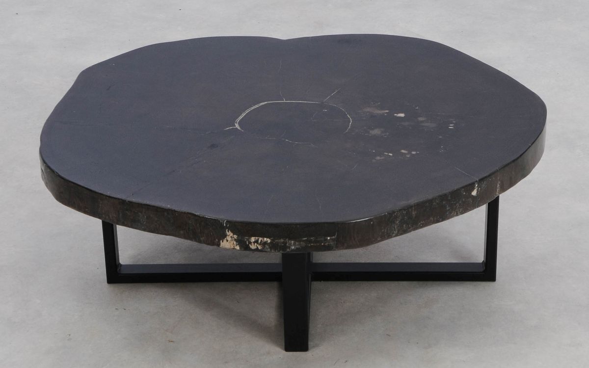 Deze unieke salontafel van versteend hout past in ieder interieur. Het tafelblad is gezaagd uit een grote versteende boom, die ongeveer 20 miljoen jaar geleden geleefd heeft. De kleuren zijn bepaald door de mineralen die het hout van deze boom vervangen hebben.