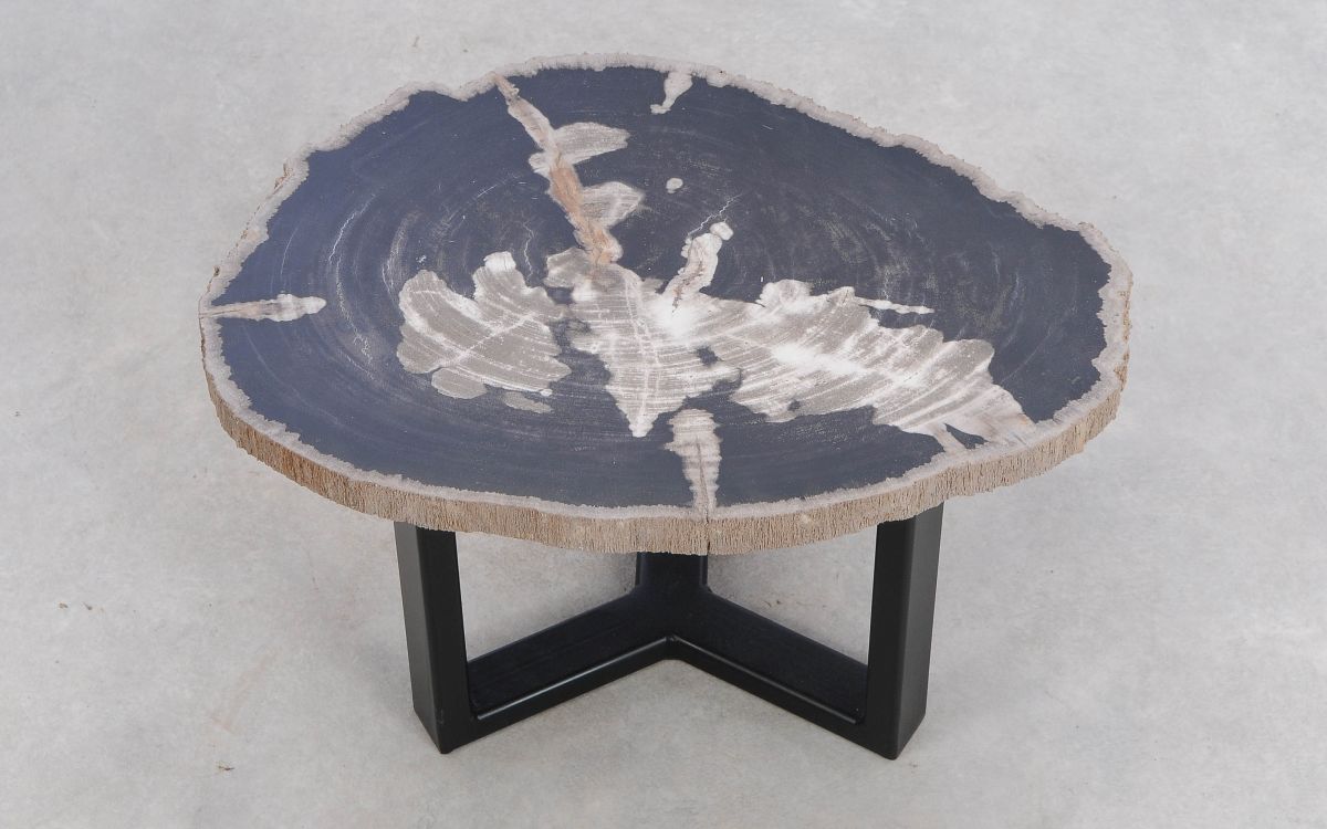 Deze unieke salontafel van versteend hout past in ieder interieur. Het tafelblad is gezaagd uit een grote versteende boom, die ongeveer 20 miljoen jaar geleden geleefd heeft. De kleuren zijn bepaald door de mineralen die het hout van deze boom vervangen hebben.