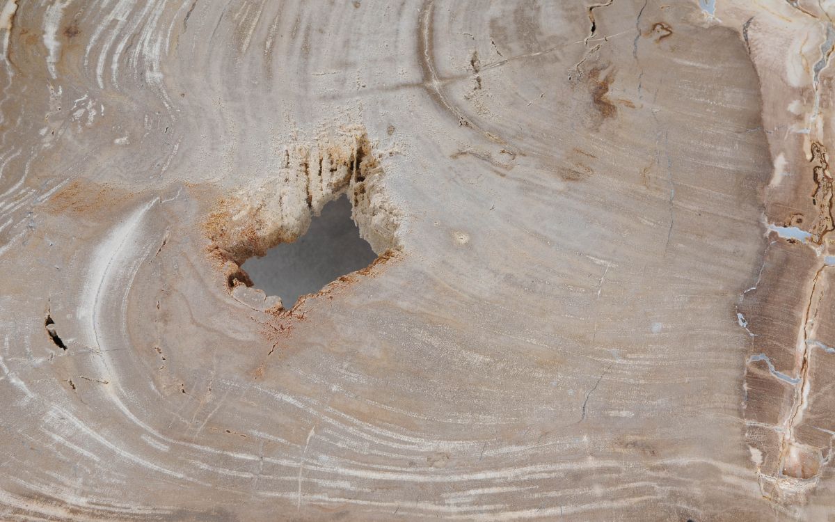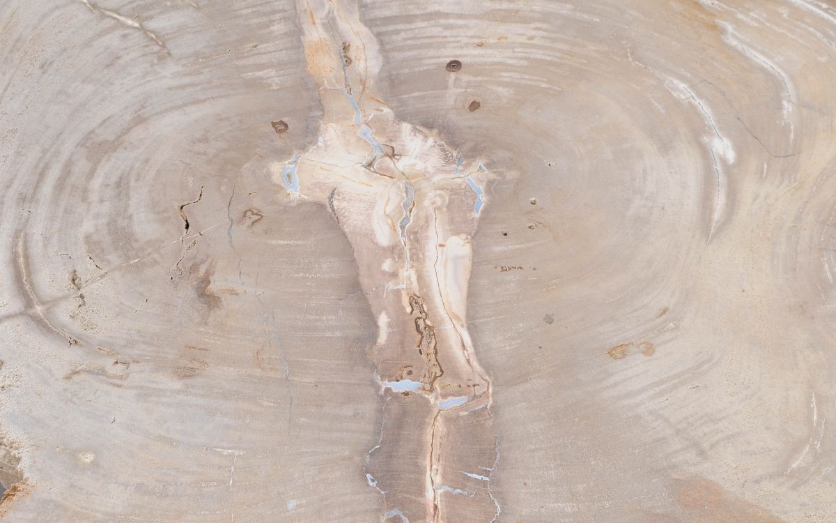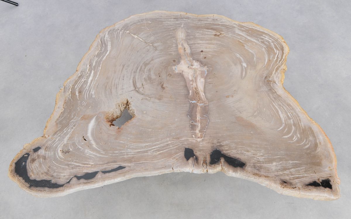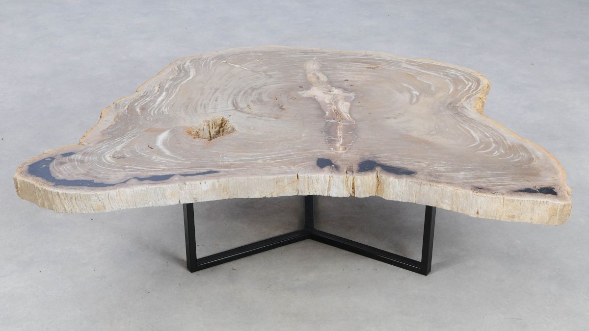 Deze unieke salontafel van versteend hout past in ieder interieur. Het tafelblad is gezaagd uit een grote versteende boom, die ongeveer 20 miljoen jaar geleden geleefd heeft. De kleuren zijn bepaald door de mineralen die het hout van deze boom vervangen hebben.