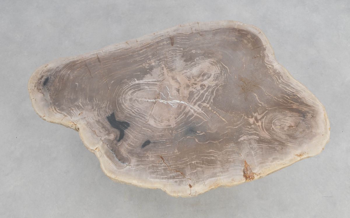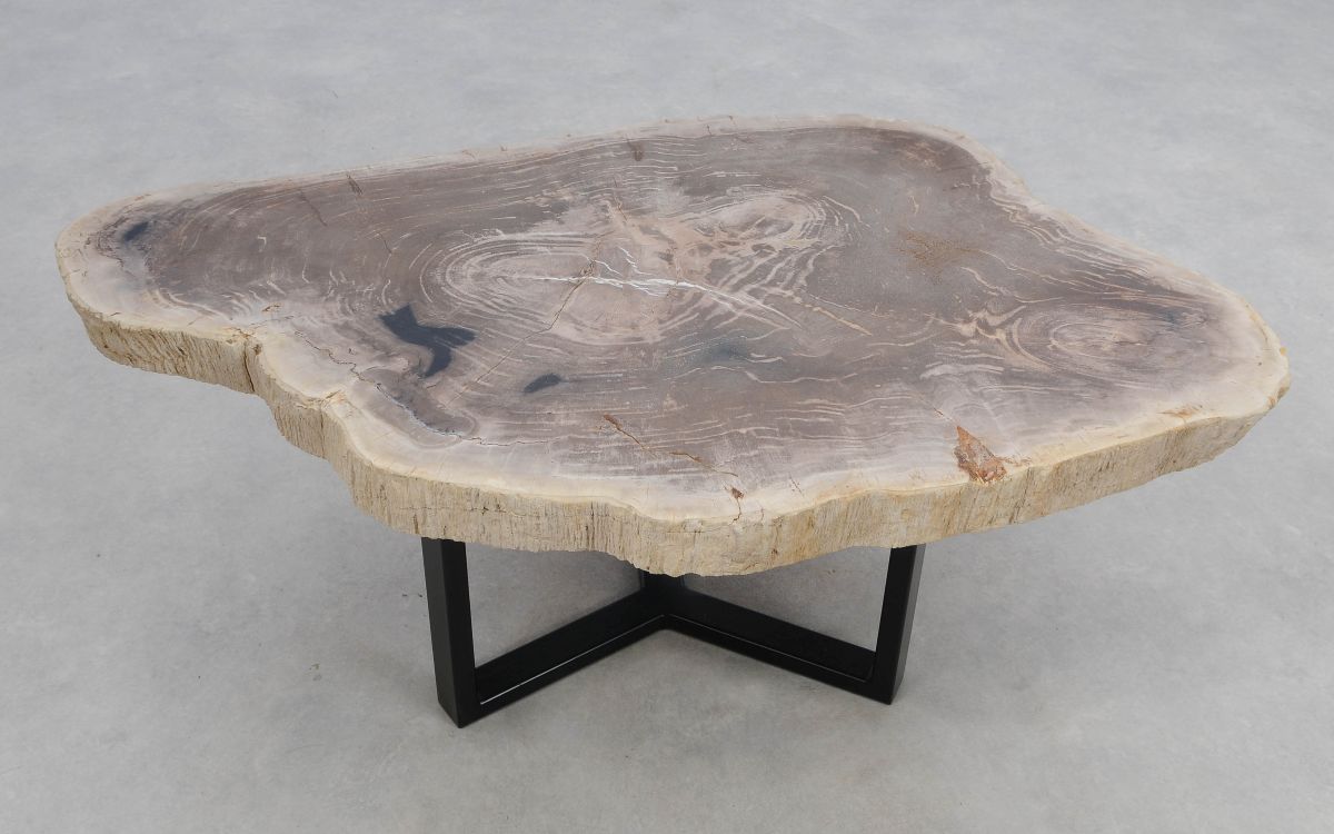 Deze unieke salontafel van versteend hout past in ieder interieur. Het tafelblad is gezaagd uit een grote versteende boom, die ongeveer 20 miljoen jaar geleden geleefd heeft. De kleuren zijn bepaald door de mineralen die het hout van deze boom vervangen hebben.