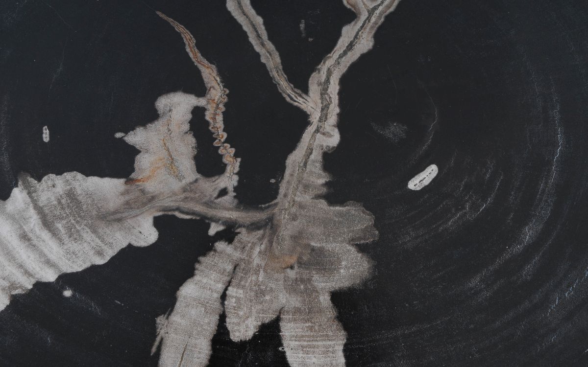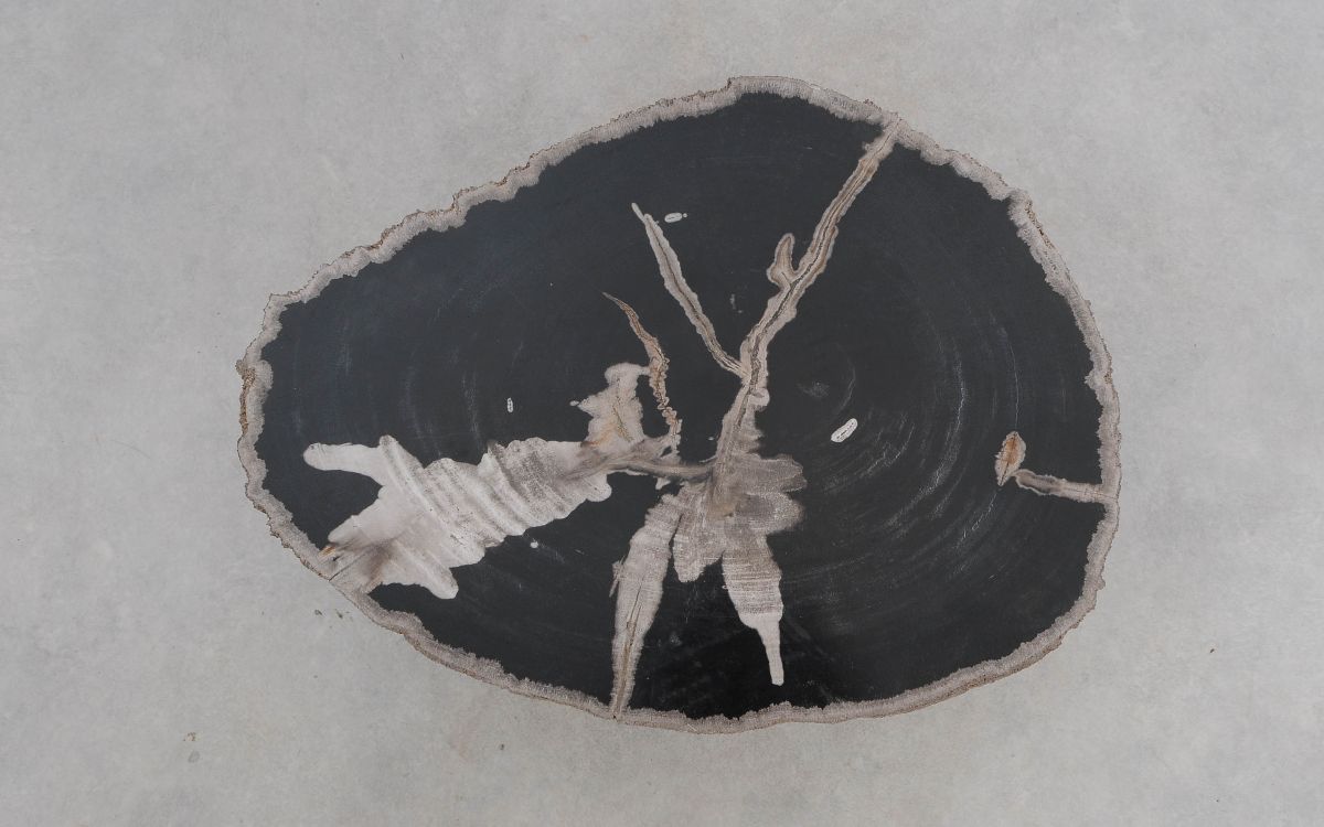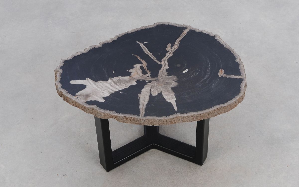 Deze unieke salontafel van versteend hout past in ieder interieur. Het tafelblad is gezaagd uit een grote versteende boom, die ongeveer 20 miljoen jaar geleden geleefd heeft. De kleuren zijn bepaald door de mineralen die het hout van deze boom vervangen hebben.