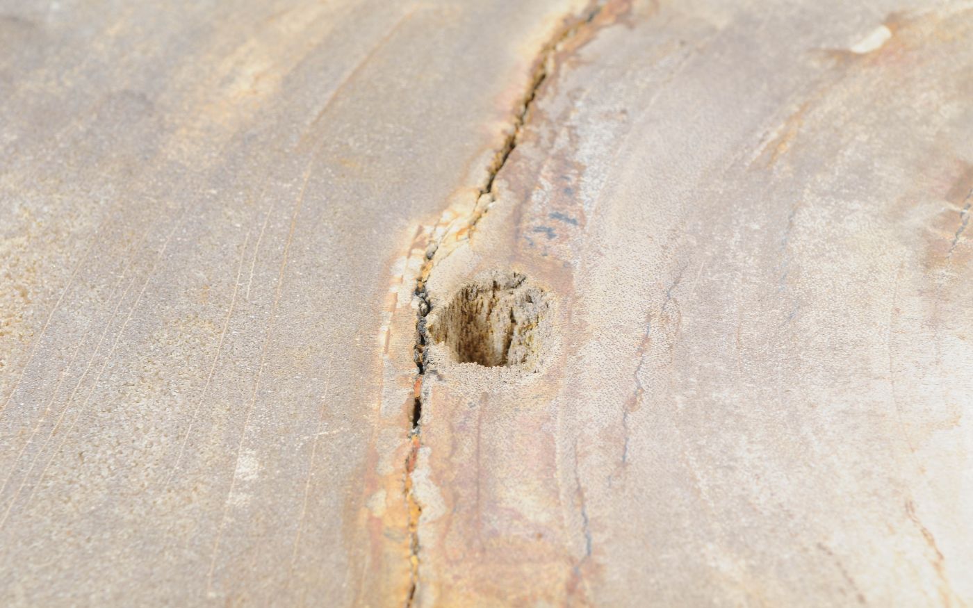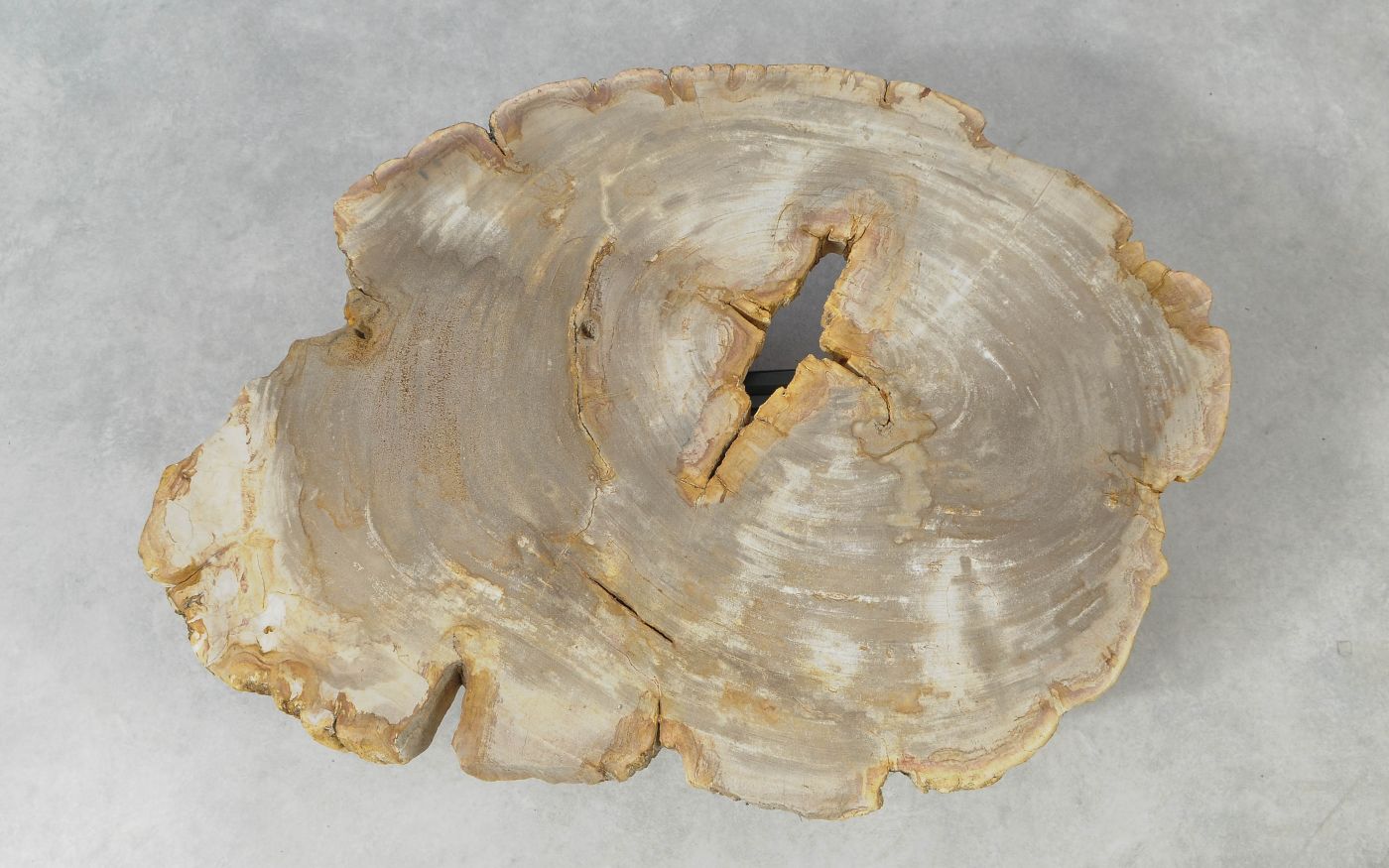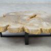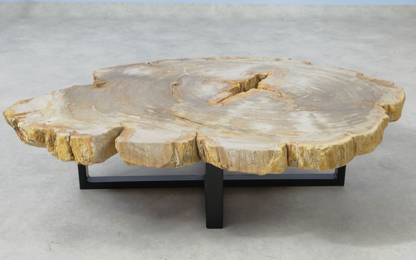 Deze unieke salontafel van versteend hout past in ieder interieur. Het tafelblad is gezaagd uit een grote versteende boom, die ongeveer 20 miljoen jaar geleden geleefd heeft. De kleuren zijn bepaald door de mineralen die het hout van deze boom vervangen hebben.