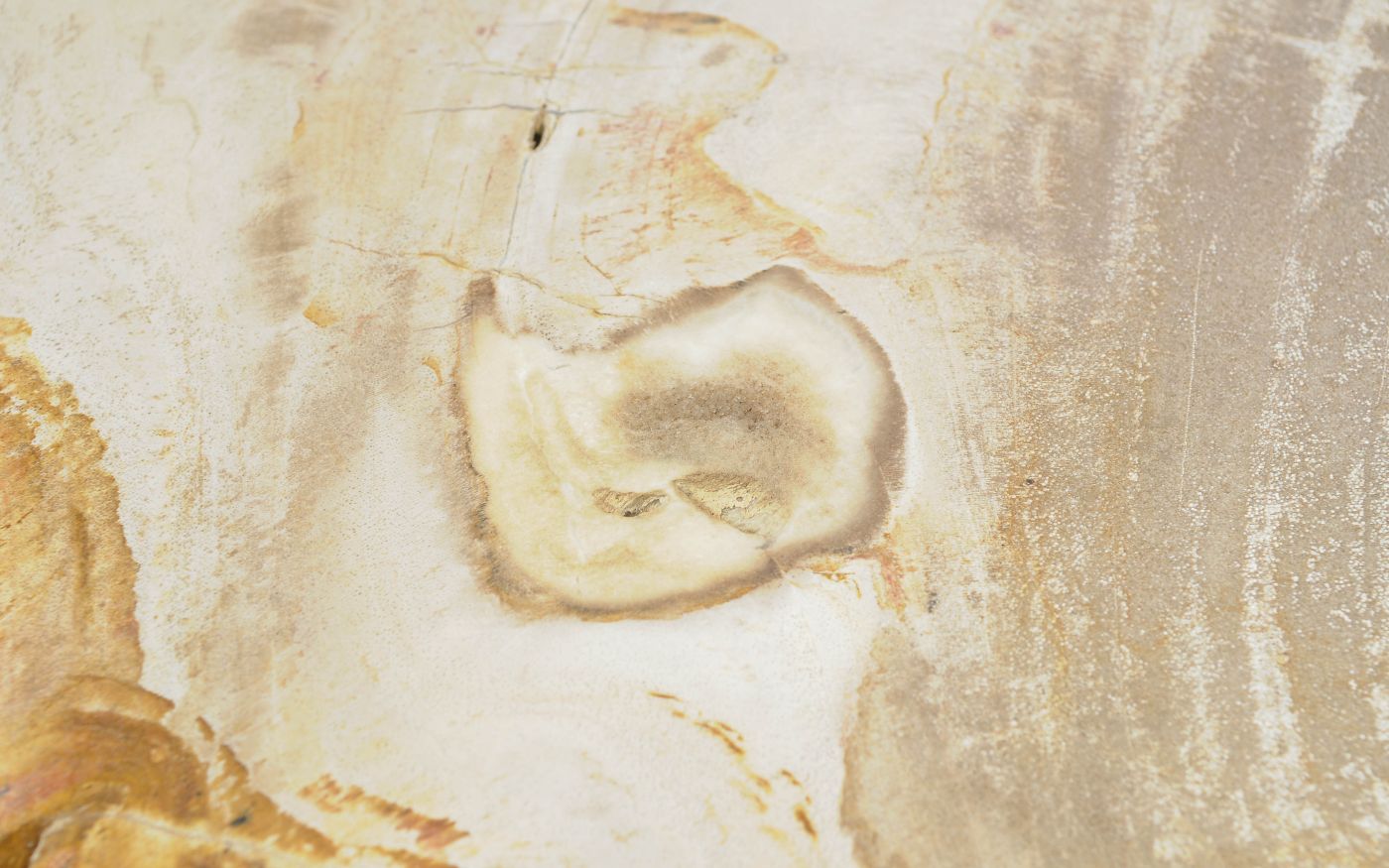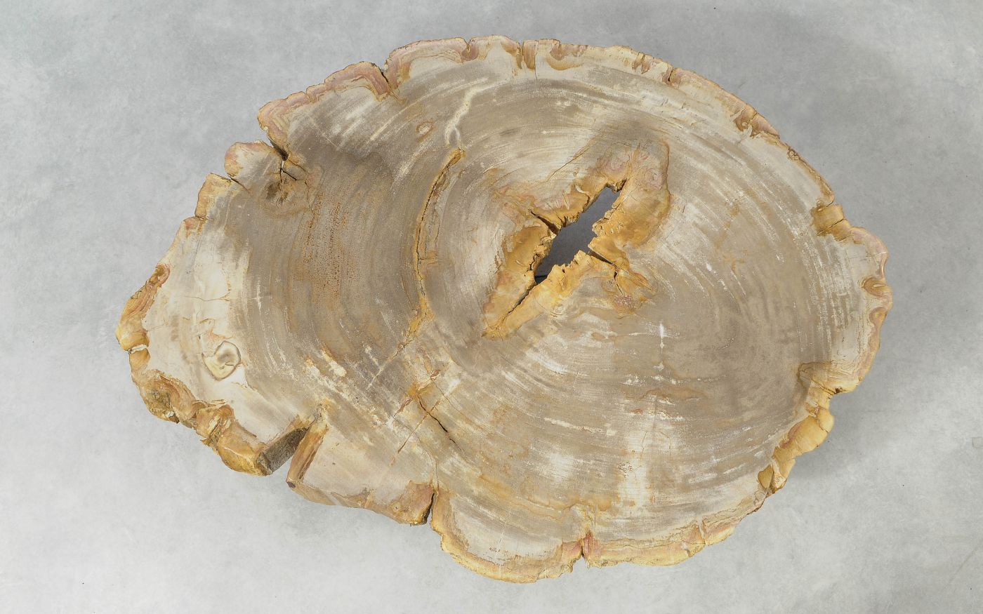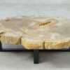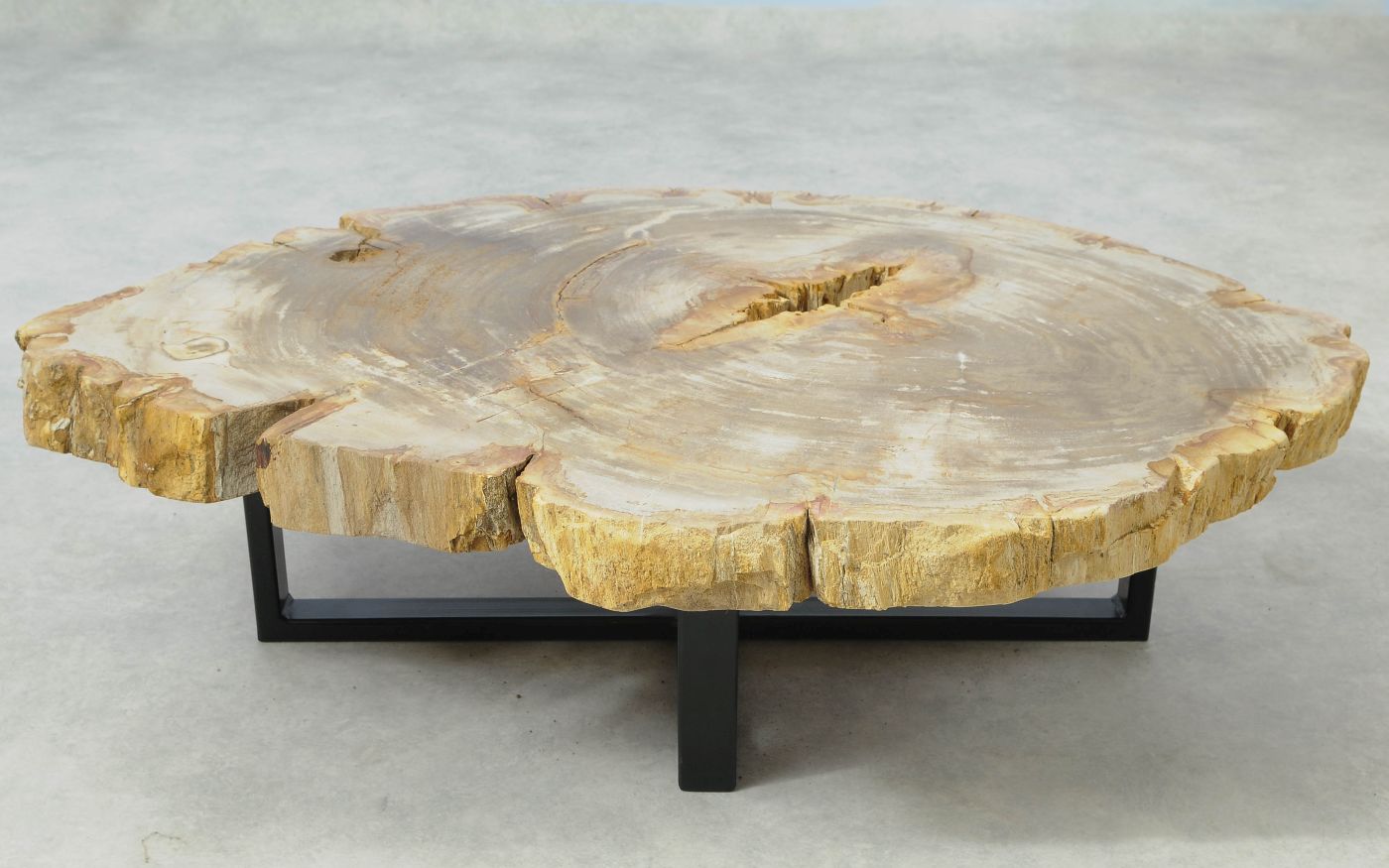 Deze unieke salontafel van versteend hout past in ieder interieur. Het tafelblad is gezaagd uit een grote versteende boom, die ongeveer 20 miljoen jaar geleden geleefd heeft. De kleuren zijn bepaald door de mineralen die het hout van deze boom vervangen hebben.