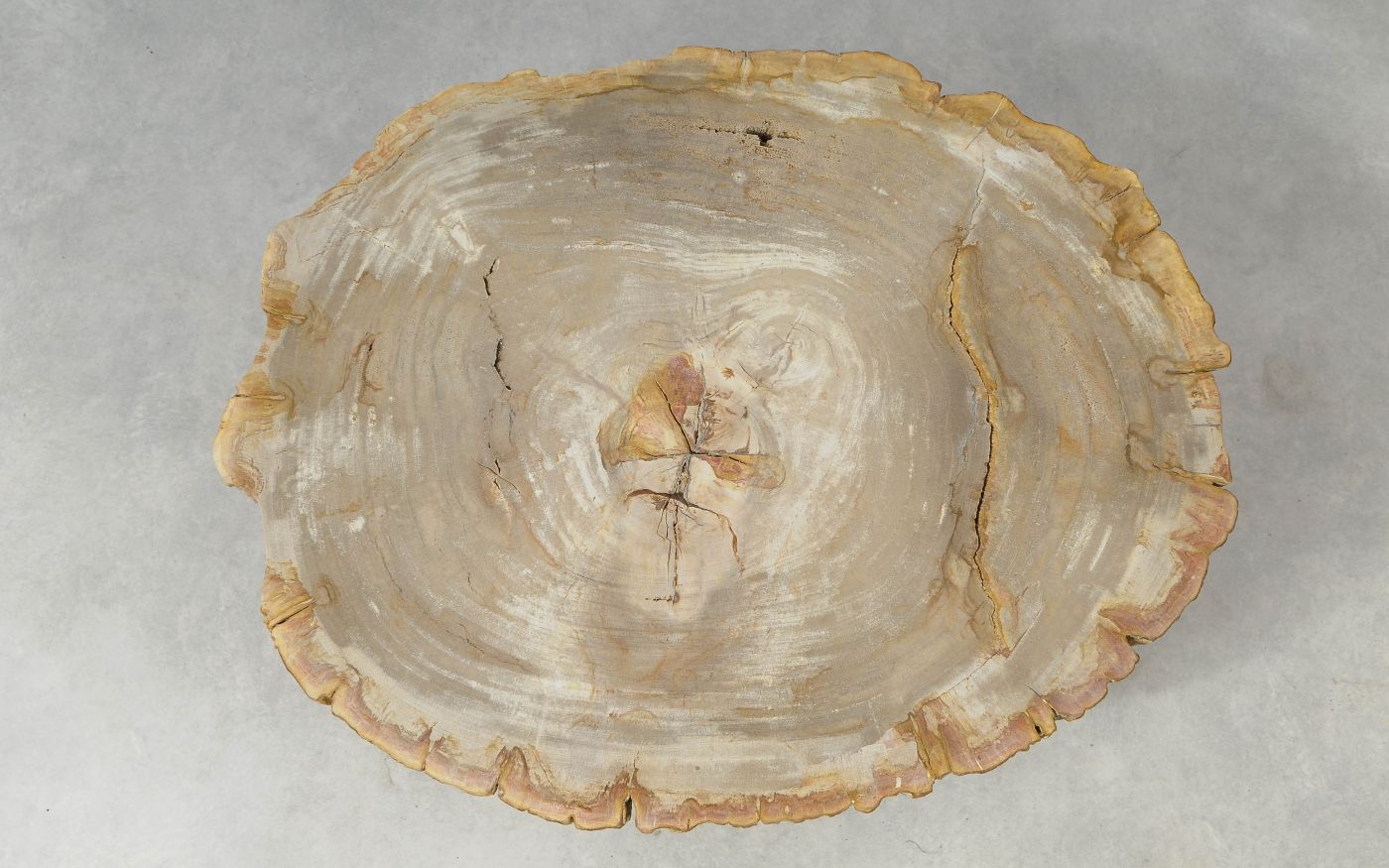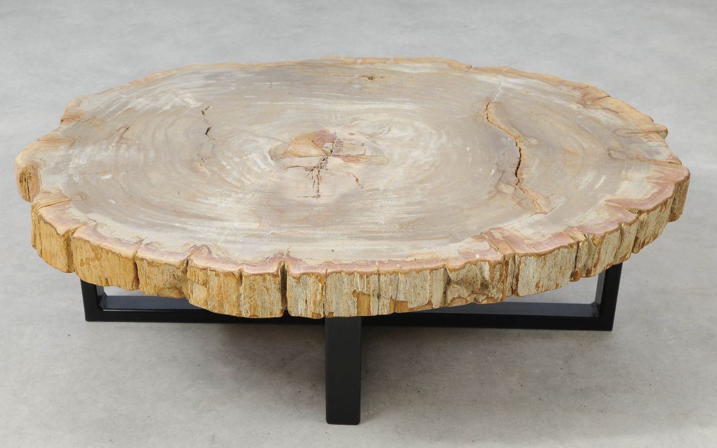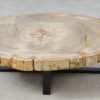 Deze unieke salontafel van versteend hout past in ieder interieur. Het tafelblad is gezaagd uit een grote versteende boom, die ongeveer 20 miljoen jaar geleden geleefd heeft. De kleuren zijn bepaald door de mineralen die het hout van deze boom vervangen hebben.