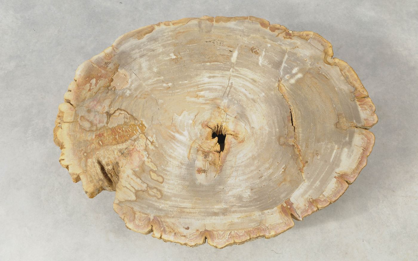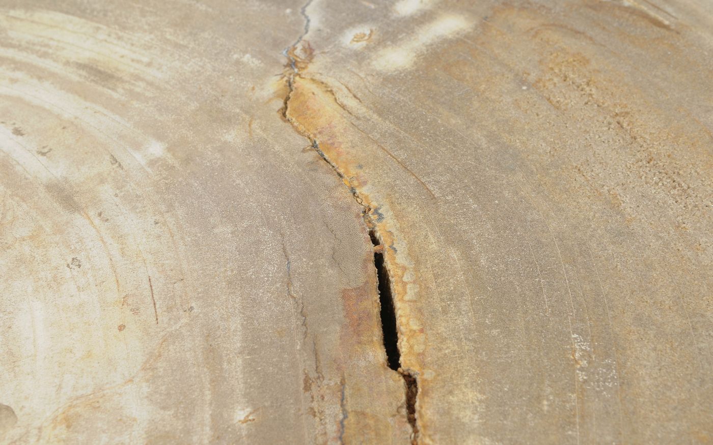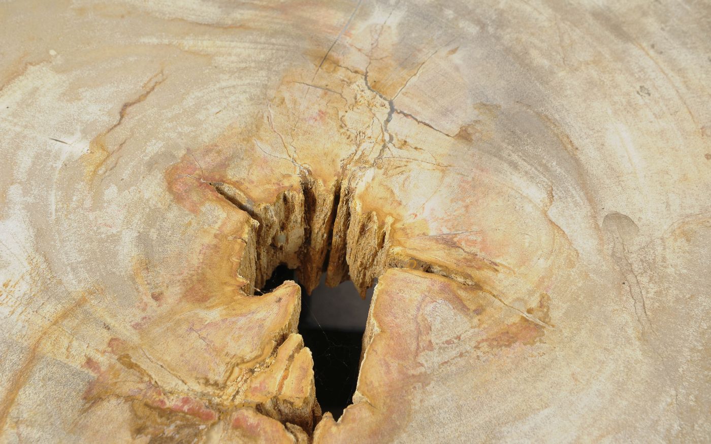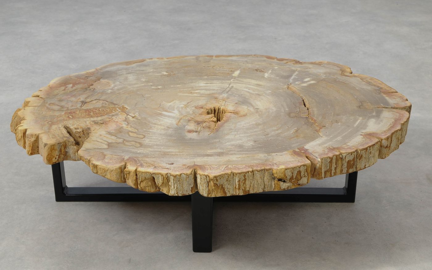 Deze unieke salontafel van versteend hout past in ieder interieur. Het tafelblad is gezaagd uit een grote versteende boom, die ongeveer 20 miljoen jaar geleden geleefd heeft. De kleuren zijn bepaald door de mineralen die het hout van deze boom vervangen hebben.