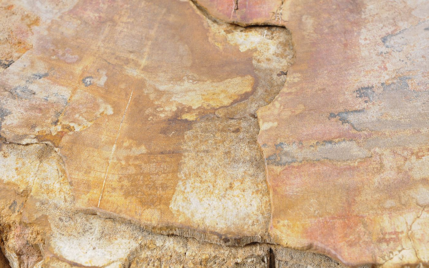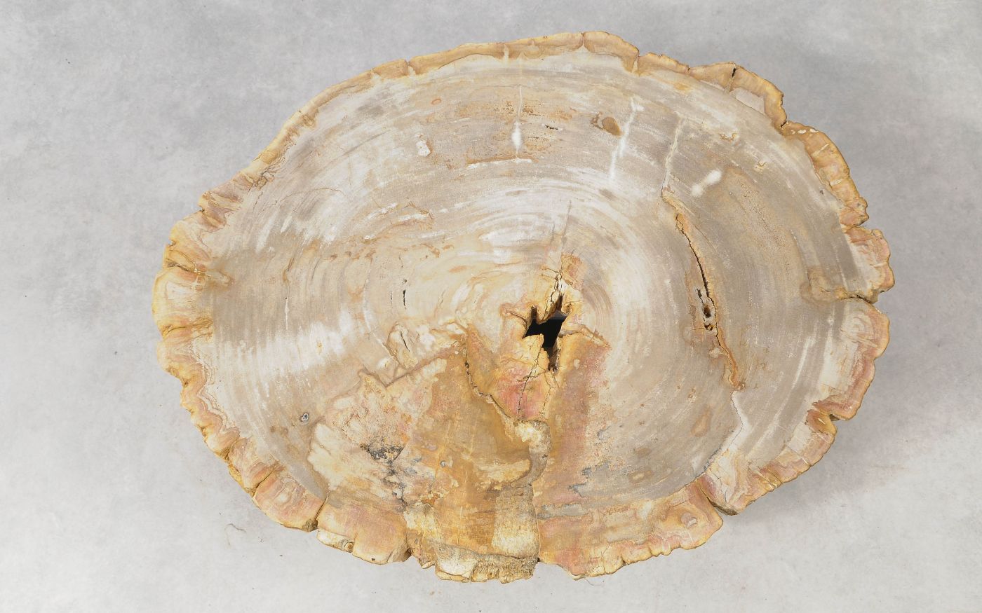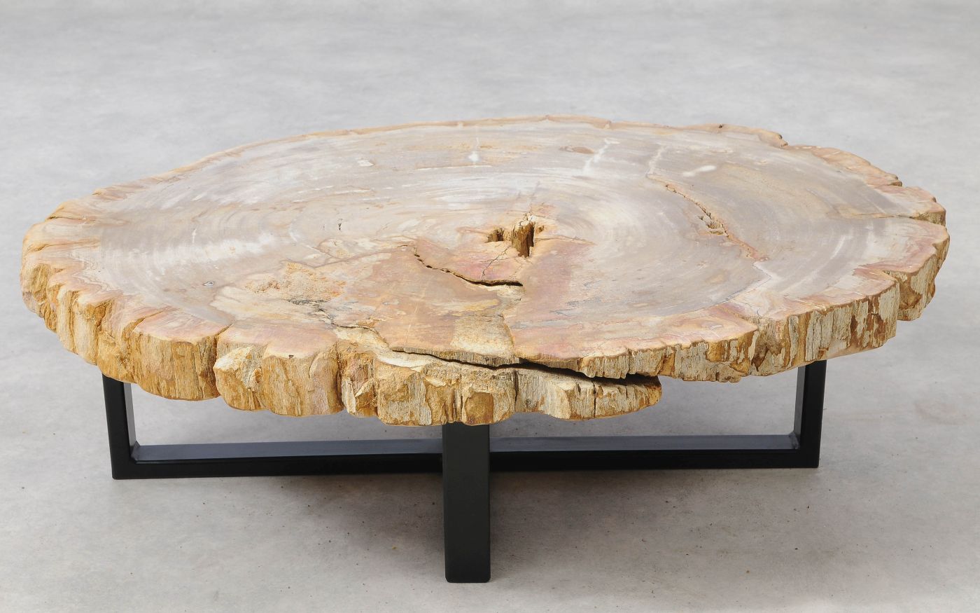 Deze unieke salontafel van versteend hout past in ieder interieur. Het tafelblad is gezaagd uit een grote versteende boom, die ongeveer 20 miljoen jaar geleden geleefd heeft. De kleuren zijn bepaald door de mineralen die het hout van deze boom vervangen hebben.