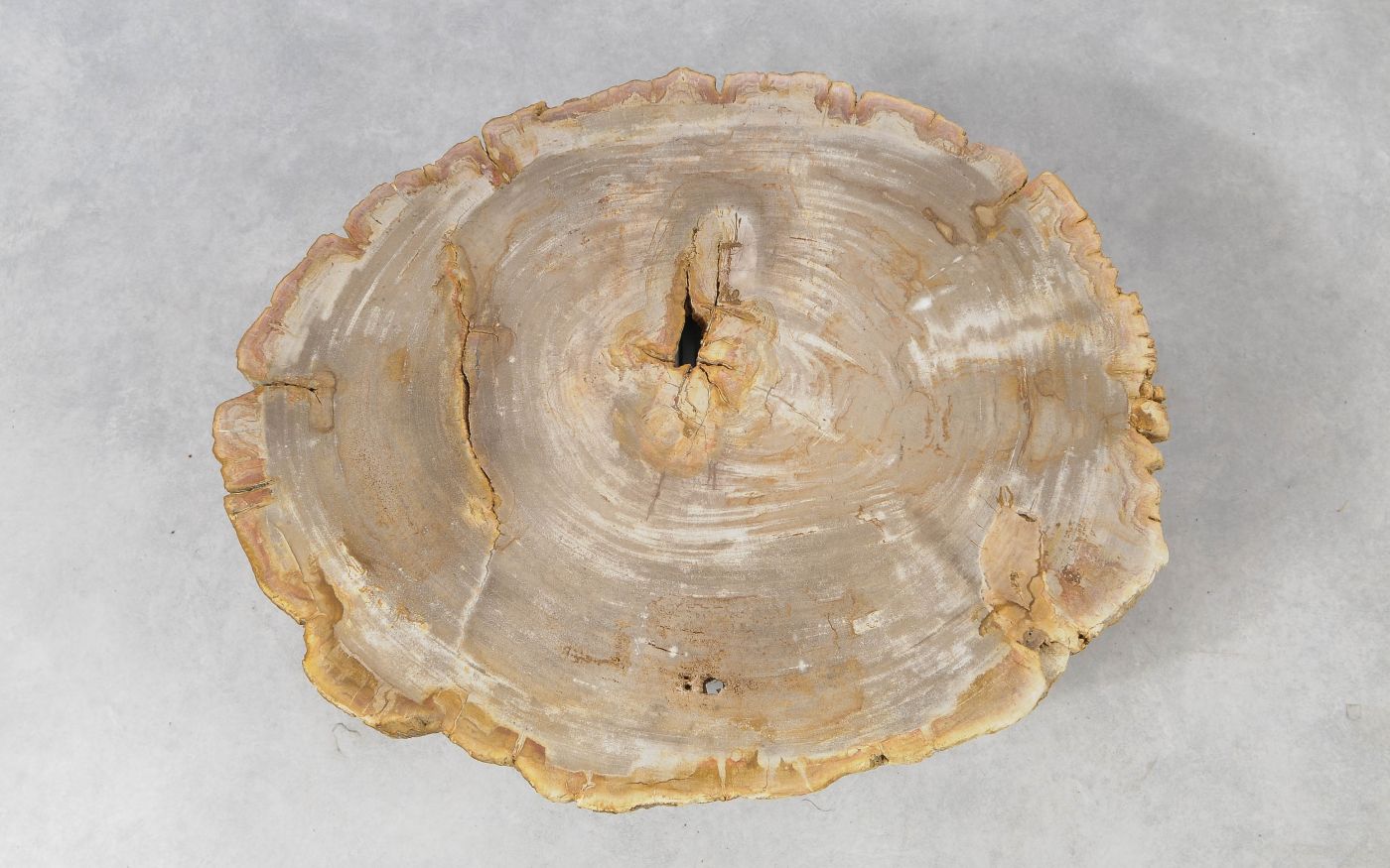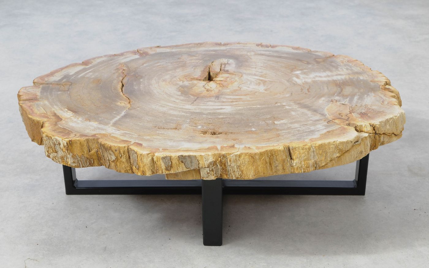 Deze unieke salontafel van versteend hout past in ieder interieur. Het tafelblad is gezaagd uit een grote versteende boom, die ongeveer 20 miljoen jaar geleden geleefd heeft. De kleuren zijn bepaald door de mineralen die het hout van deze boom vervangen hebben.