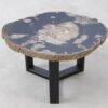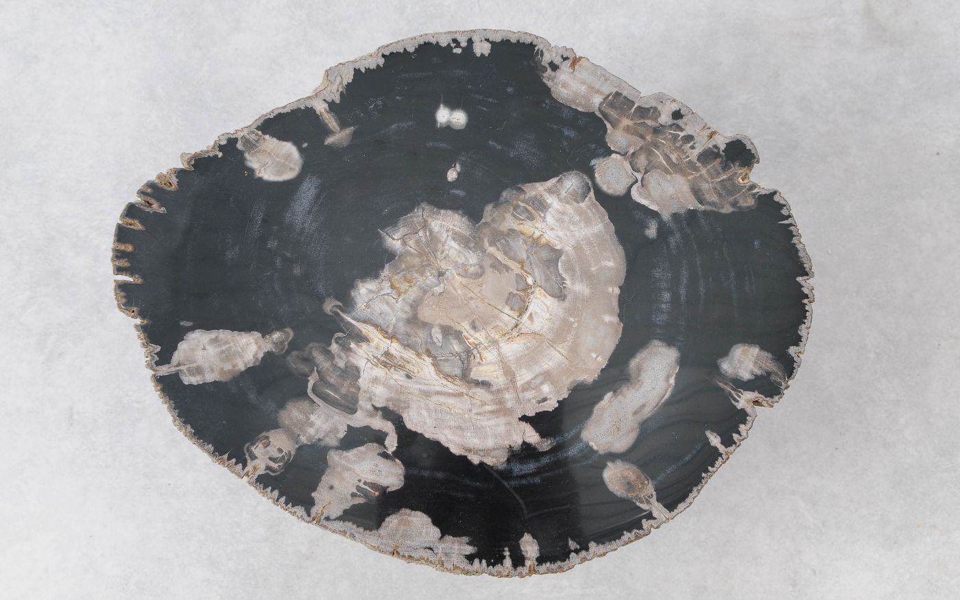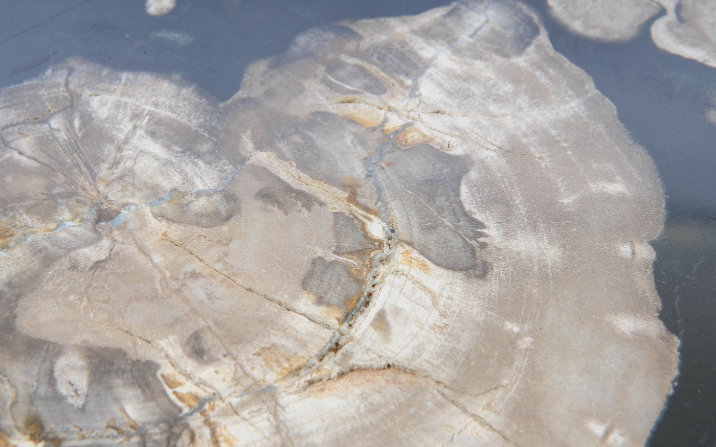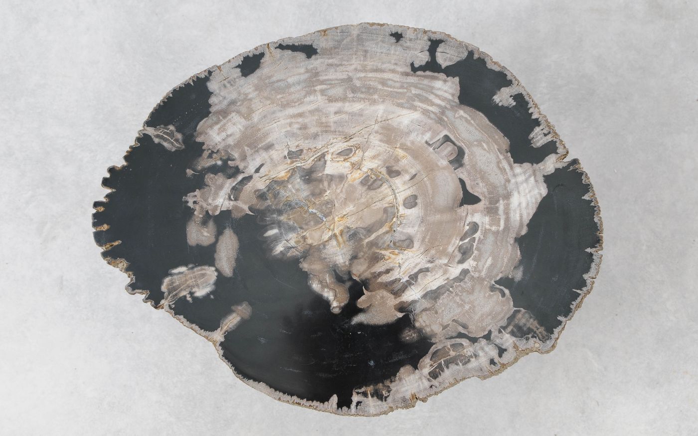 Deze unieke salontafel van versteend hout past in ieder interieur. Het tafelblad is gezaagd uit een grote versteende boom, die ongeveer 20 miljoen jaar geleden geleefd heeft. De kleuren zijn bepaald door de mineralen die het hout van deze boom vervangen hebben.