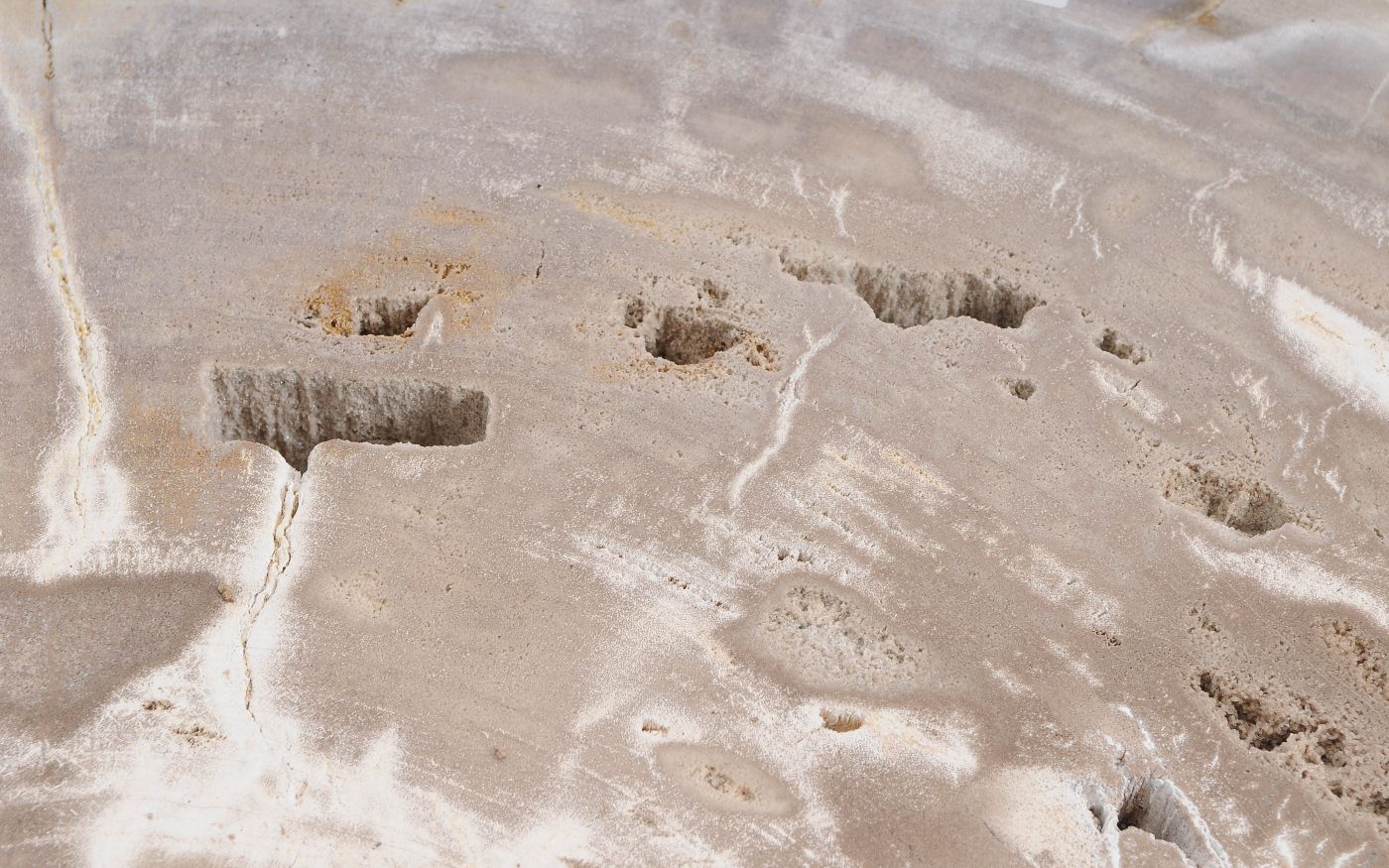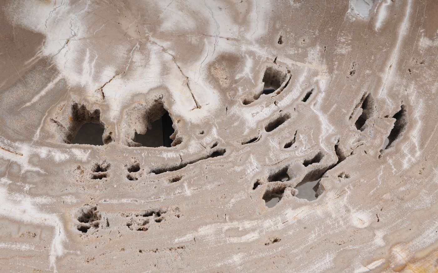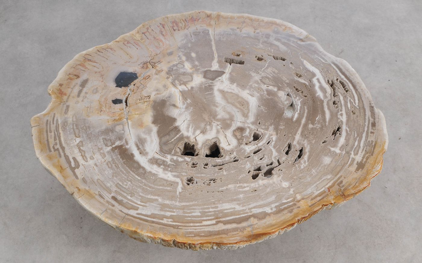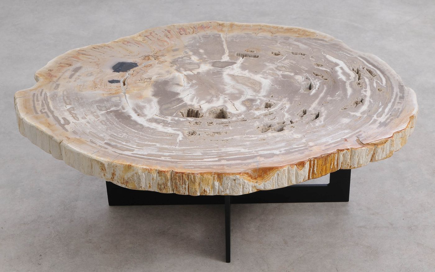 Deze unieke salontafel van versteend hout past in ieder interieur. Het tafelblad is gezaagd uit een grote versteende boom, die ongeveer 20 miljoen jaar geleden geleefd heeft. De kleuren zijn bepaald door de mineralen die het hout van deze boom vervangen hebben.