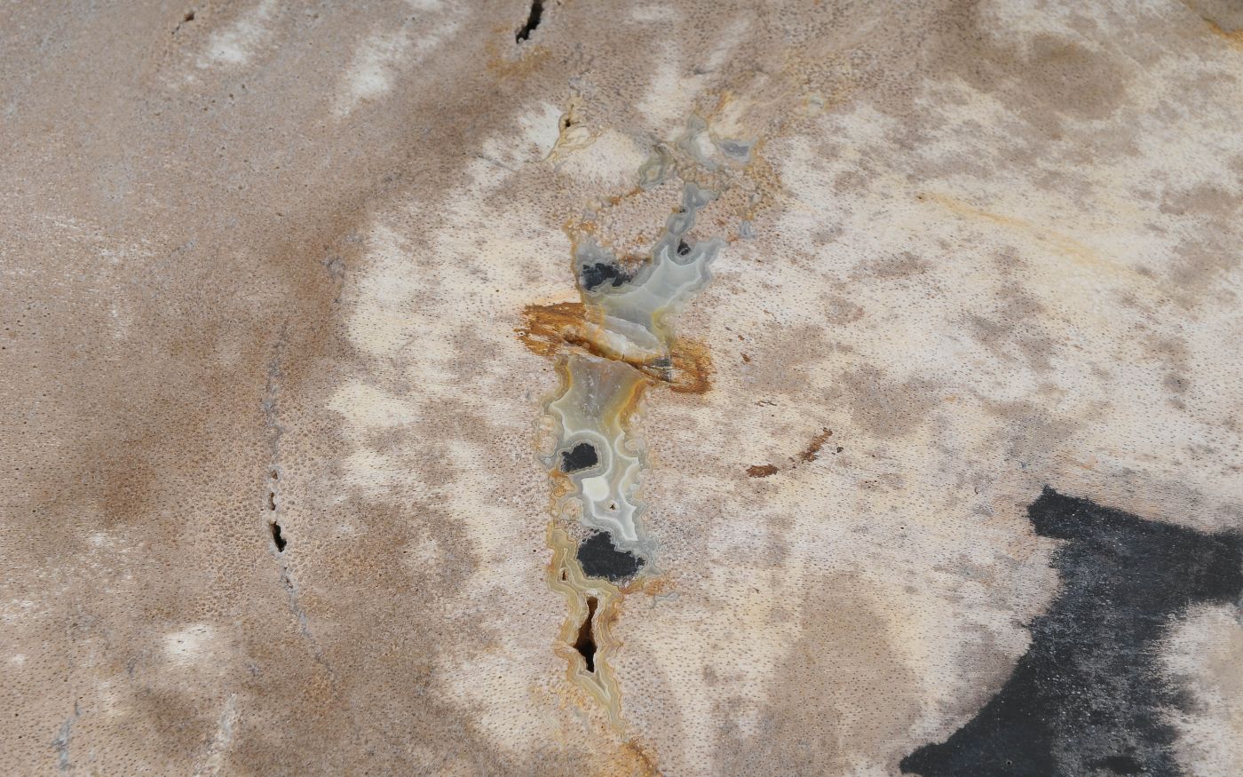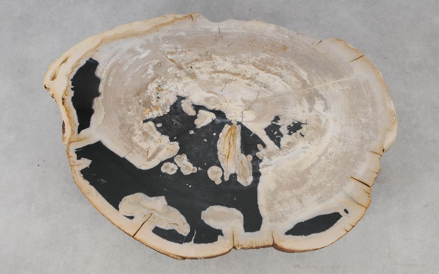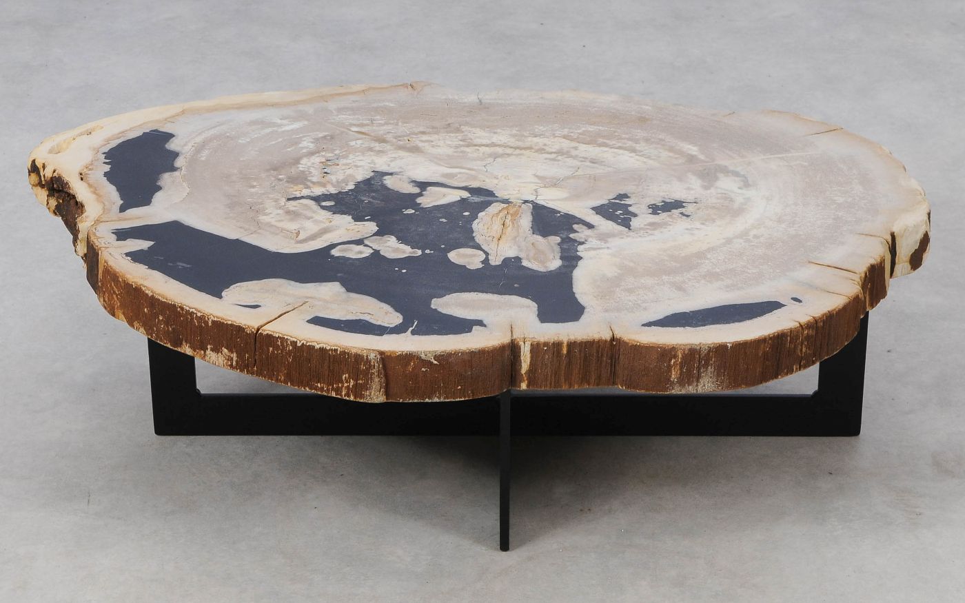 Deze unieke salontafel van versteend hout past in ieder interieur. Het tafelblad is gezaagd uit een grote versteende boom, die ongeveer 20 miljoen jaar geleden geleefd heeft. De kleuren zijn bepaald door de mineralen die het hout van deze boom vervangen hebben.