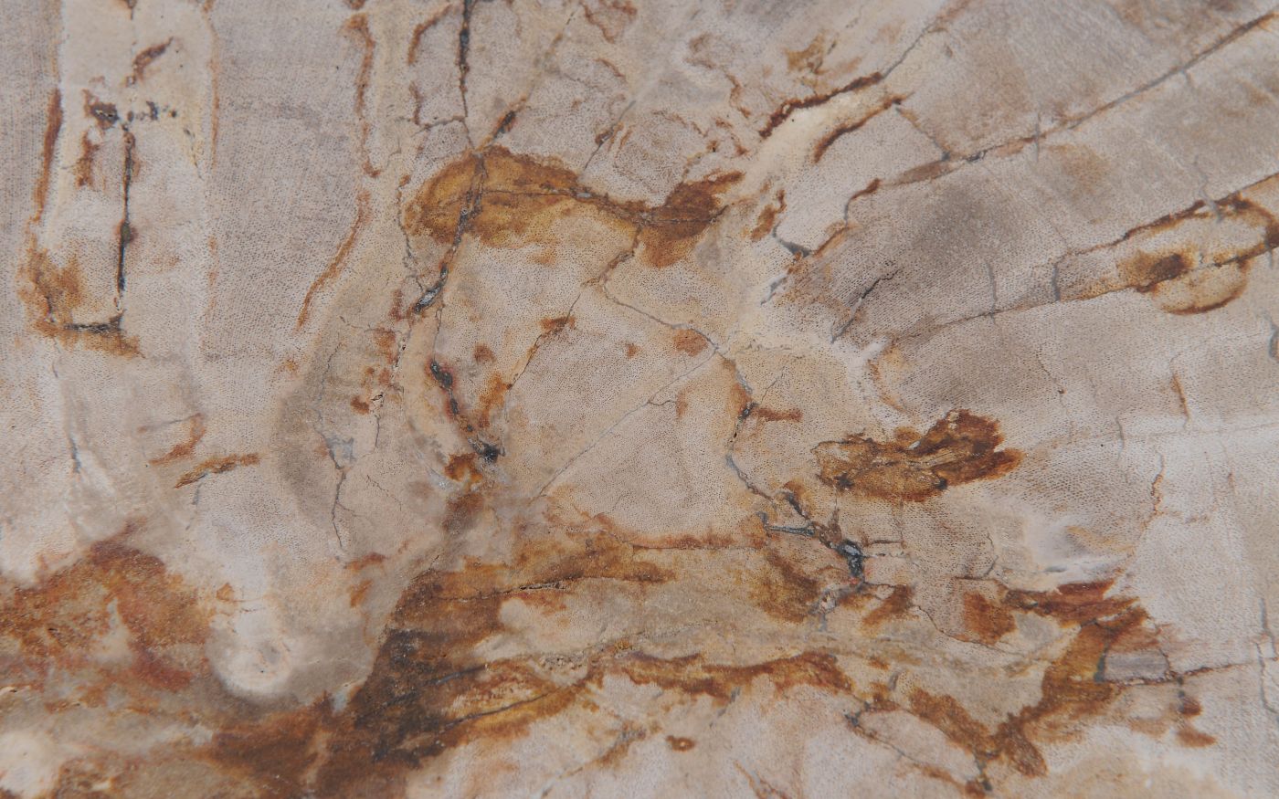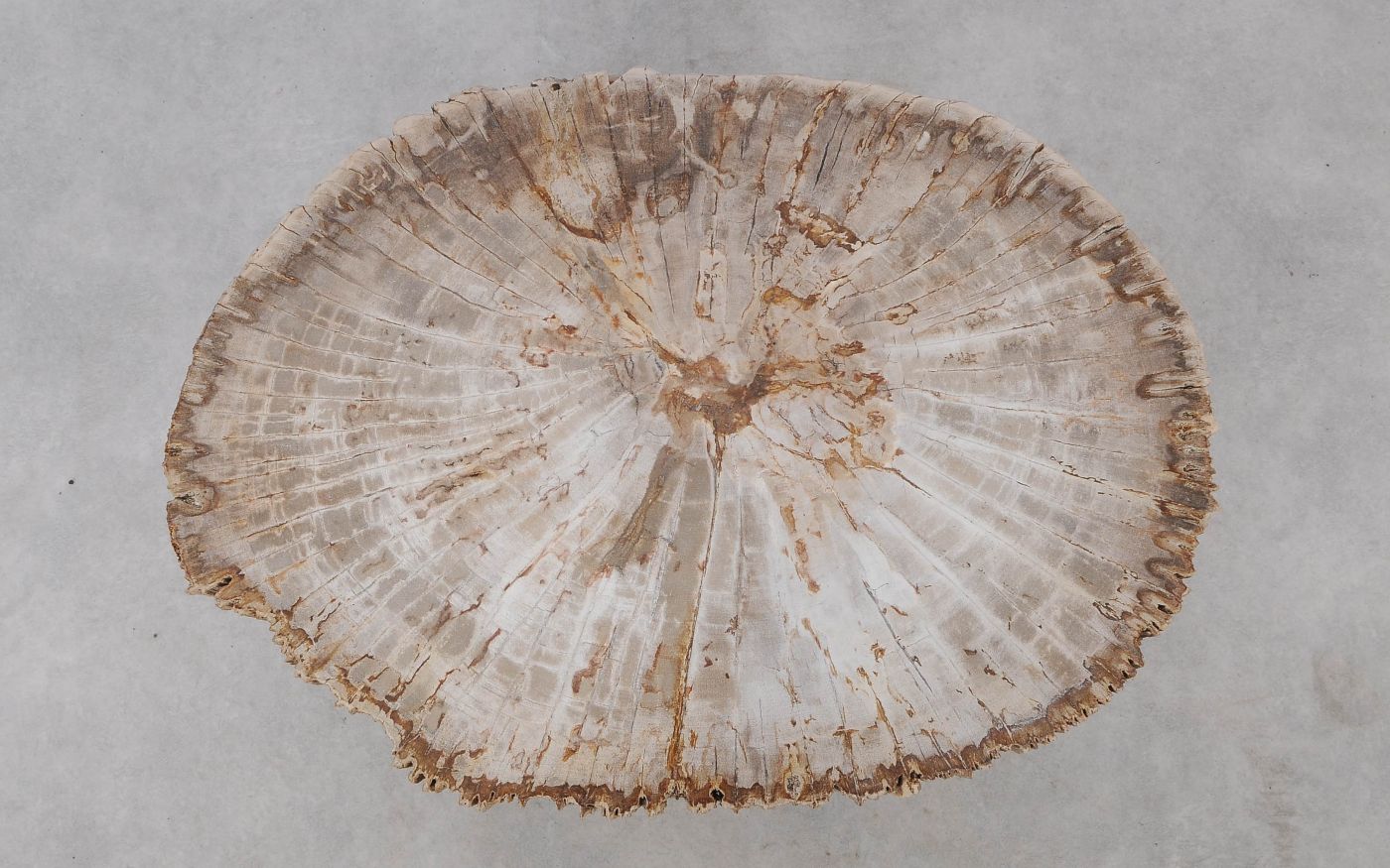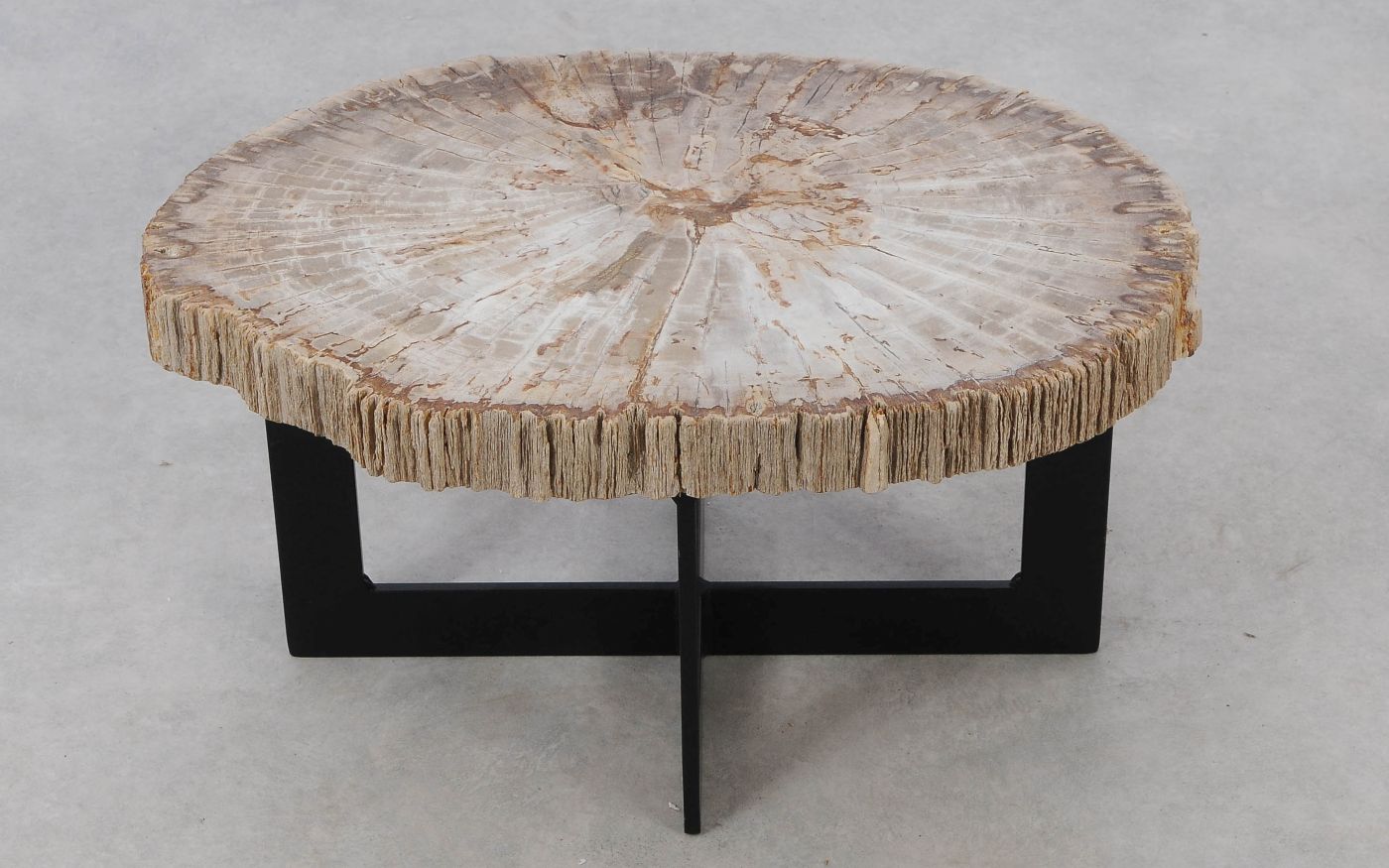 Deze unieke salontafel van versteend hout past in ieder interieur. Het tafelblad is gezaagd uit een grote versteende boom, die ongeveer 20 miljoen jaar geleden geleefd heeft. De kleuren zijn bepaald door de mineralen die het hout van deze boom vervangen hebben.