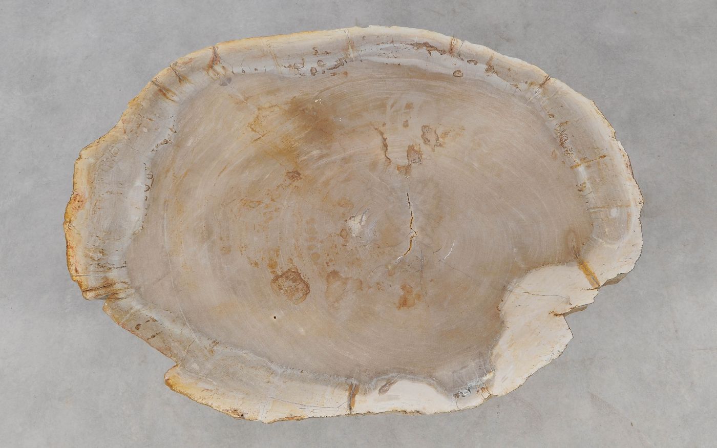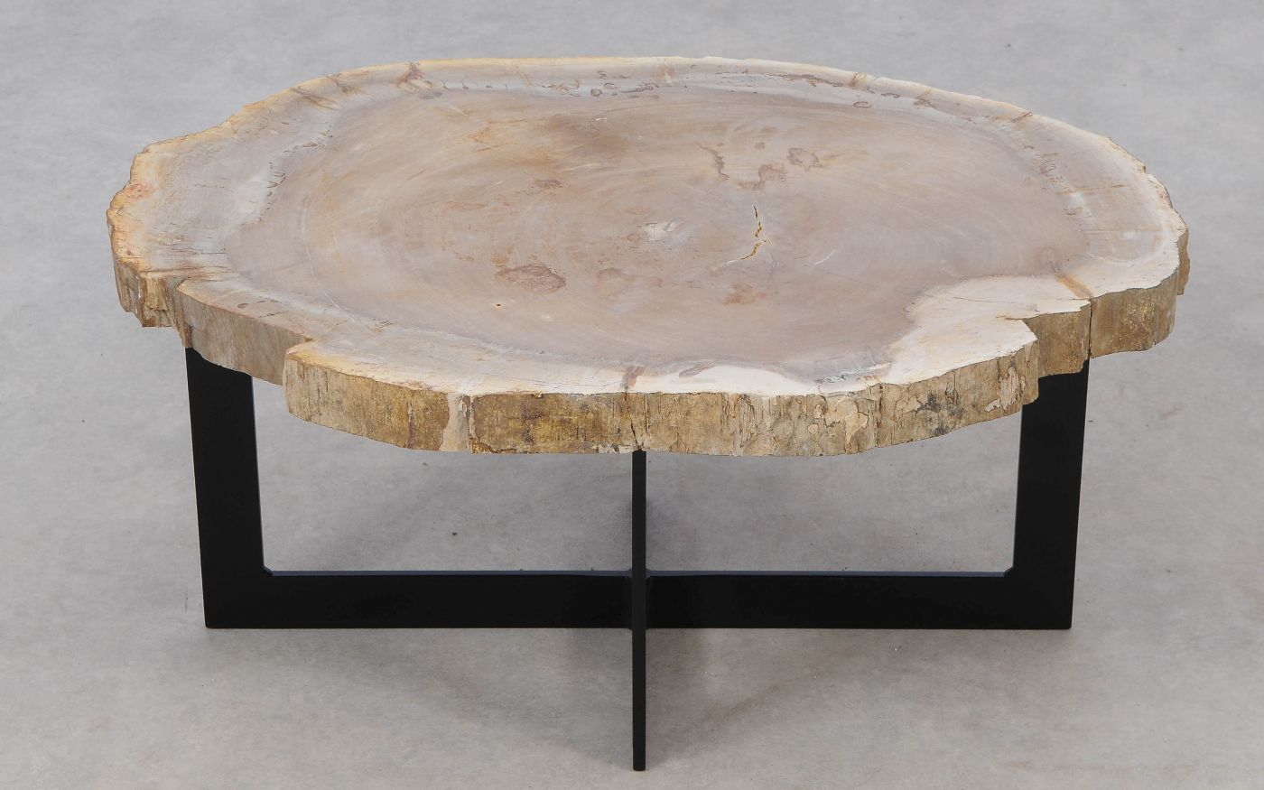 Deze unieke salontafel van versteend hout past in ieder interieur. Het tafelblad is gezaagd uit een grote versteende boom, die ongeveer 20 miljoen jaar geleden geleefd heeft. De kleuren zijn bepaald door de mineralen die het hout van deze boom vervangen hebben.